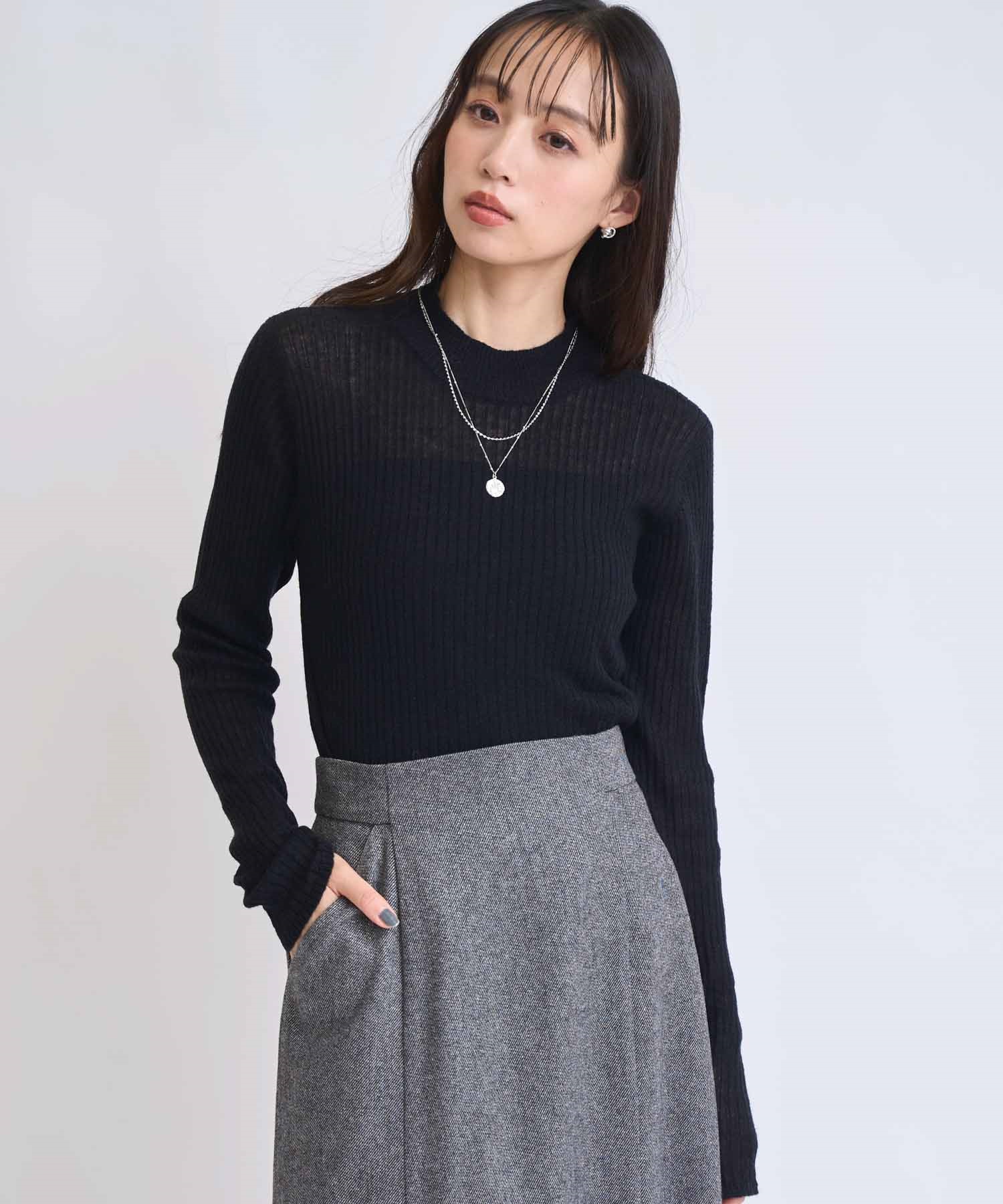 • モヘア混シアーリブニット(00ブラック-フリー)