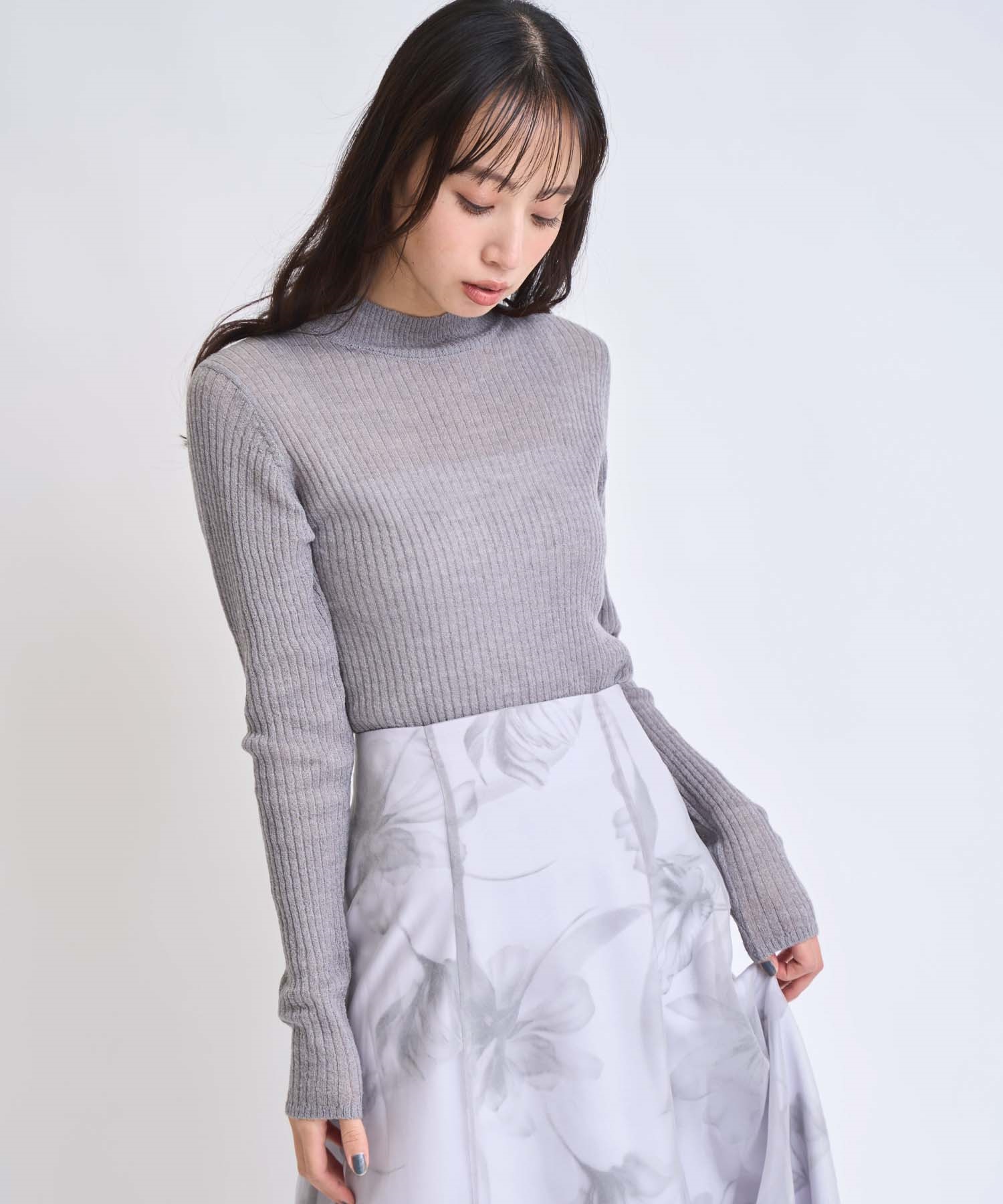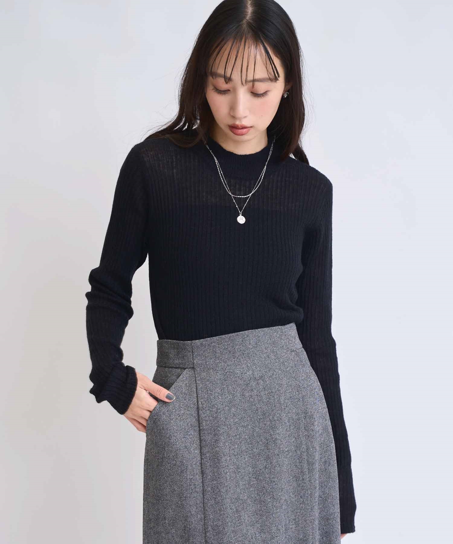 モヘア混シアーリブニット