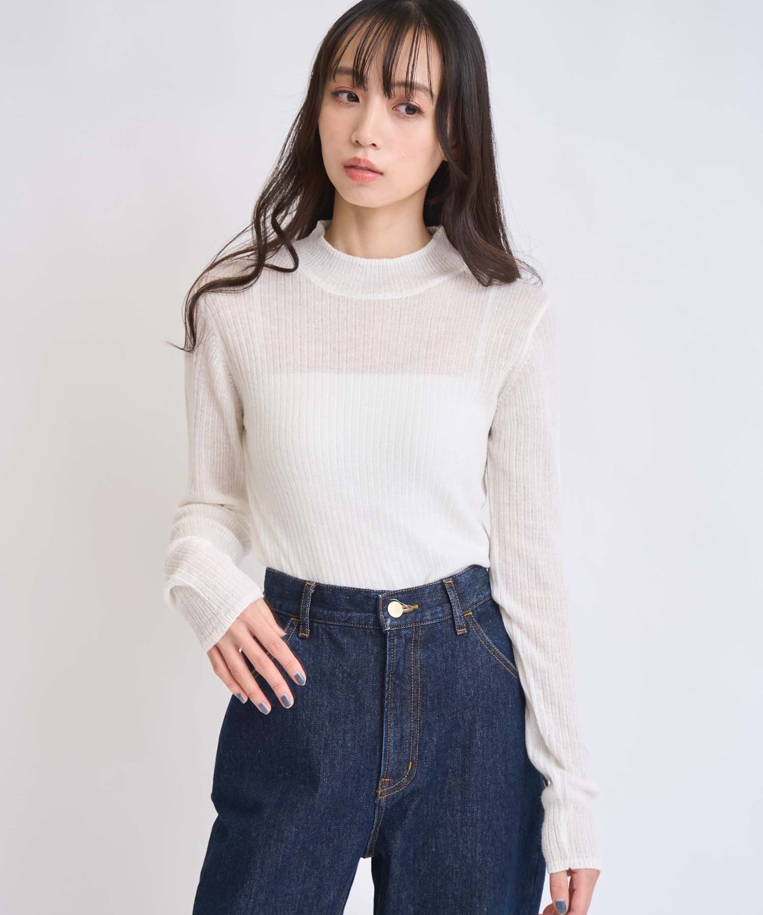 • モヘア混シアーリブニット(01オフホワイト-フリー)
