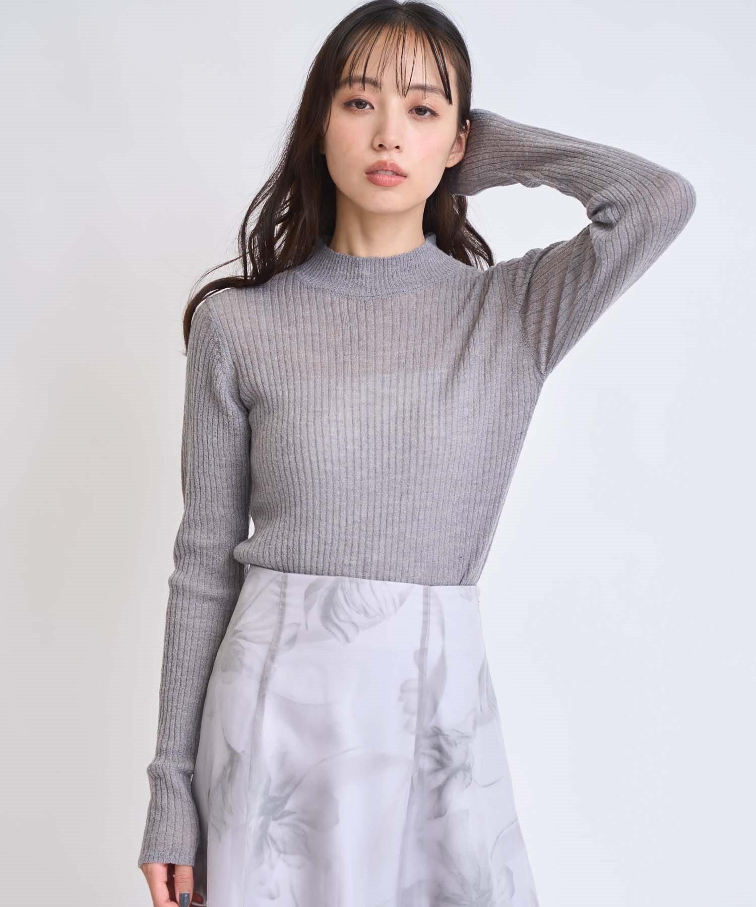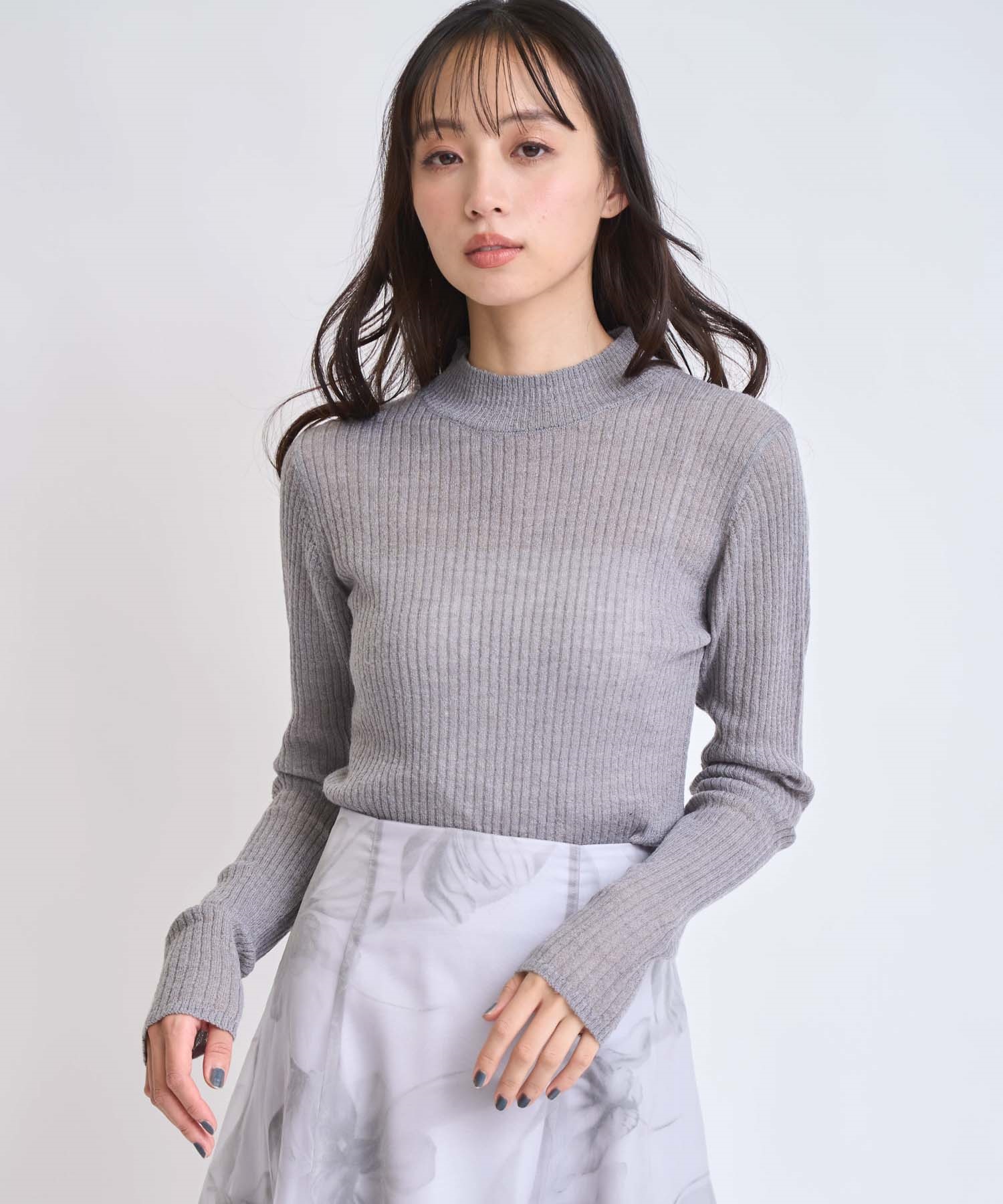 • モヘア混シアーリブニット(11グレー-フリー)