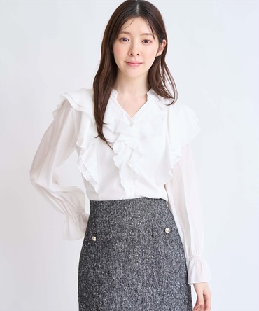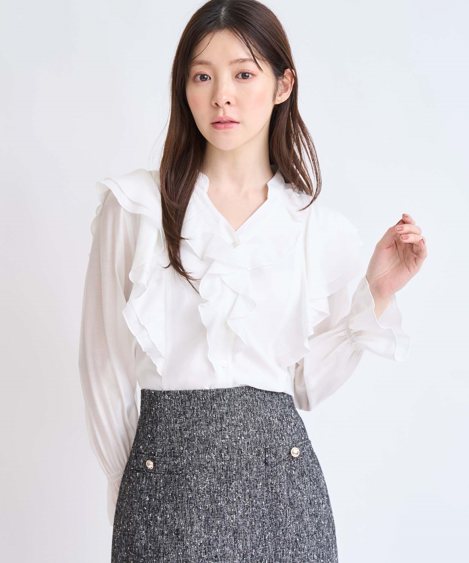 • フリルスキッパーブラウス(01オフホワイト-フリー)