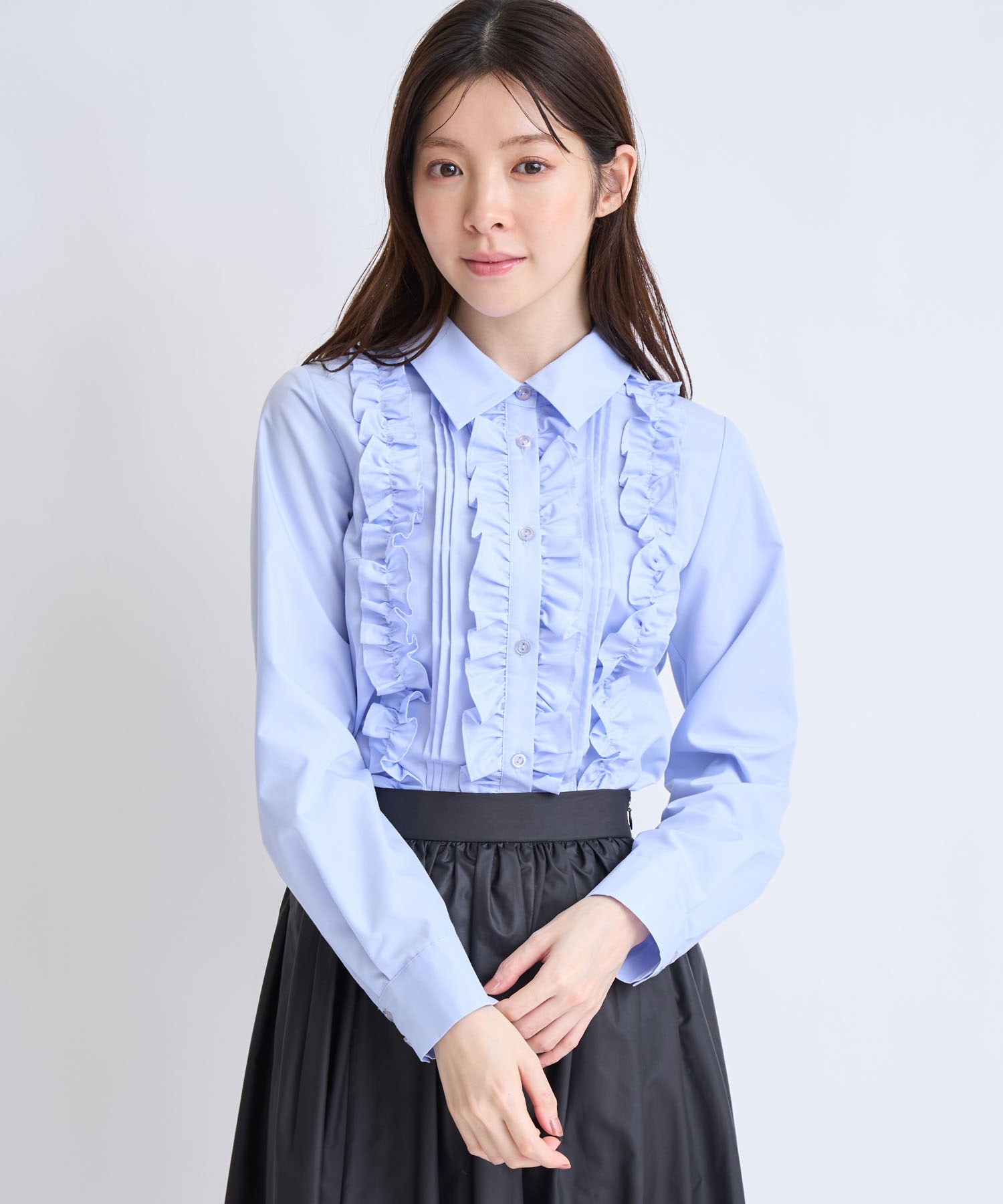 • バーチカルフリルブラウス(71ブルー-フリー)