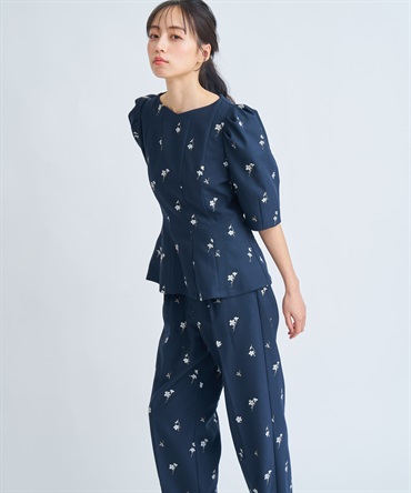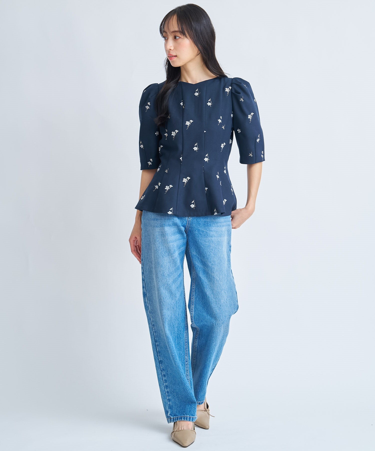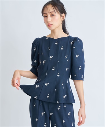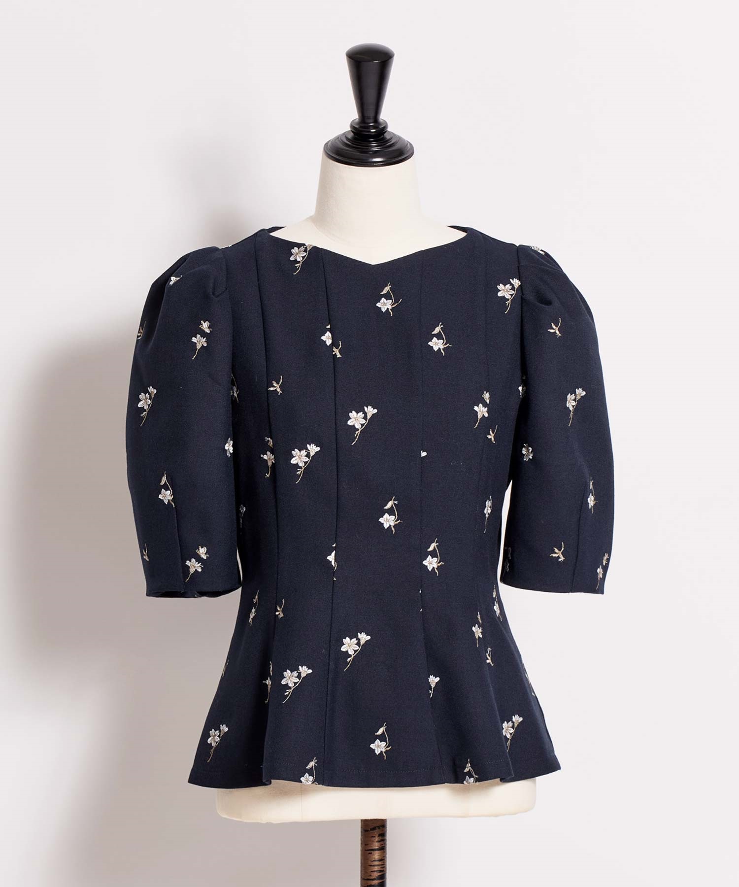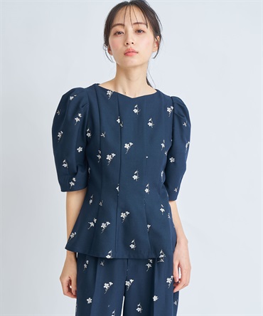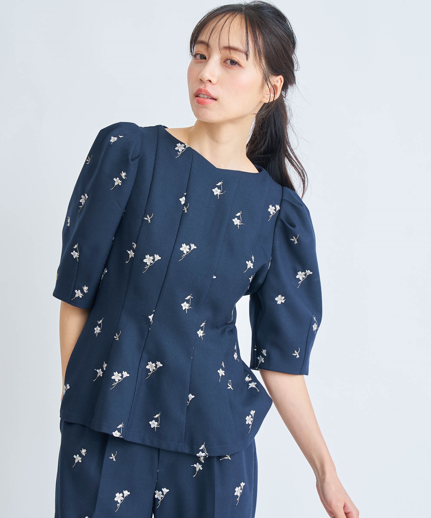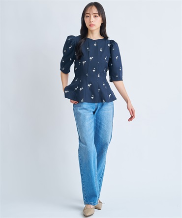 • 【Premium】フラワー刺繍ブラウス(70ネイビー-フリー)