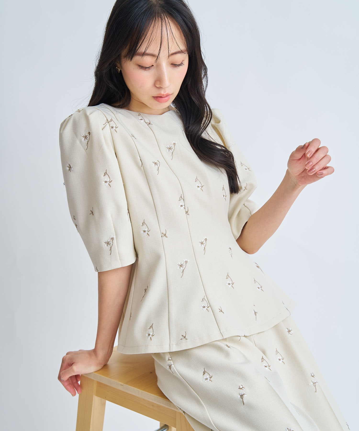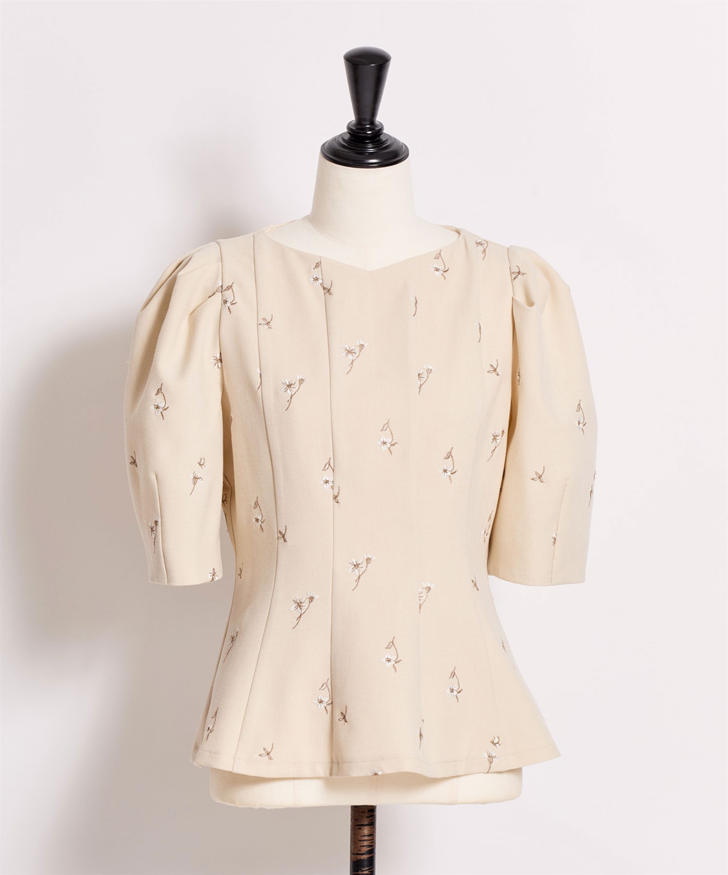 • 【Premium】フラワー刺繍ブラウス(82ベージュ-フリー)