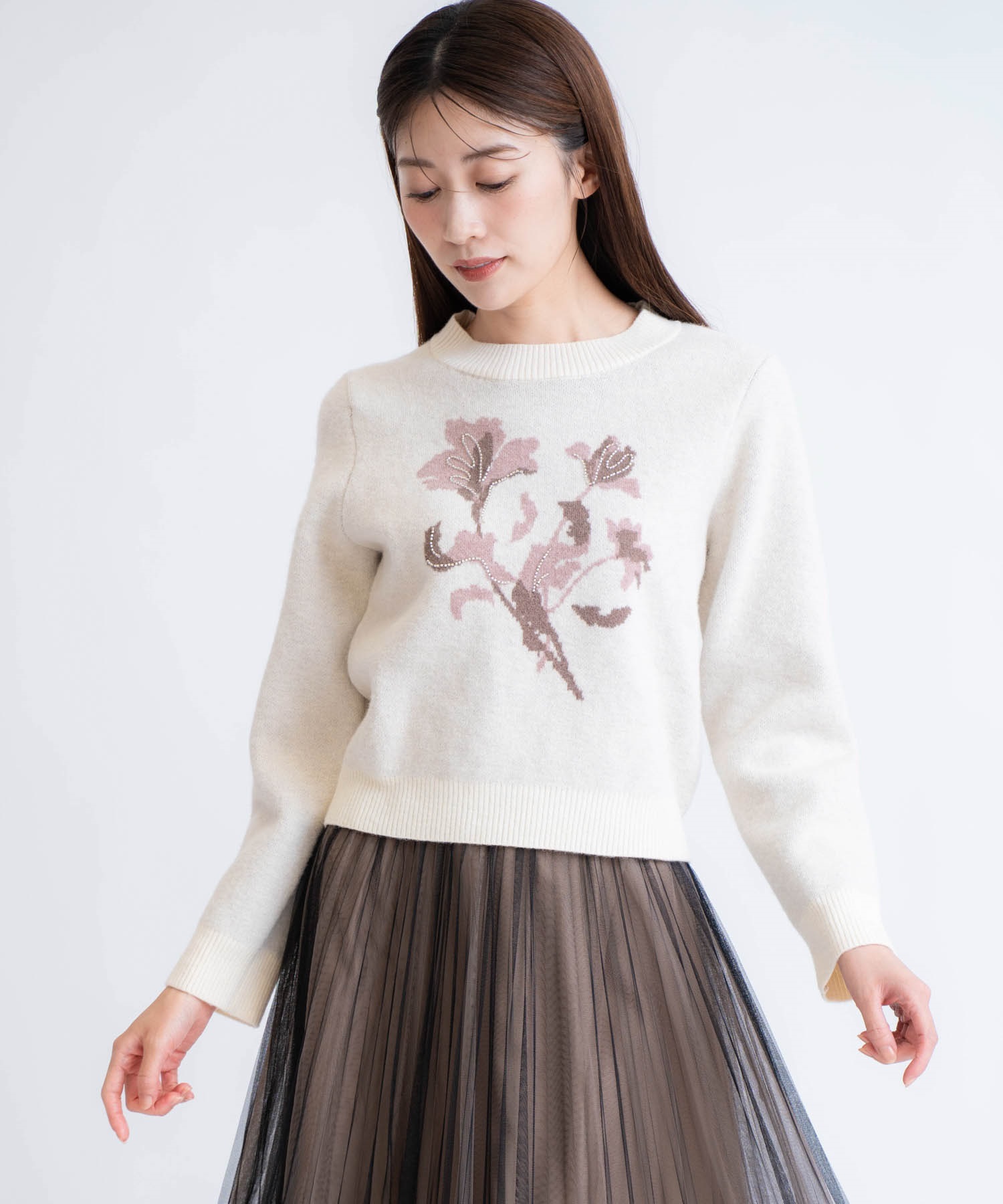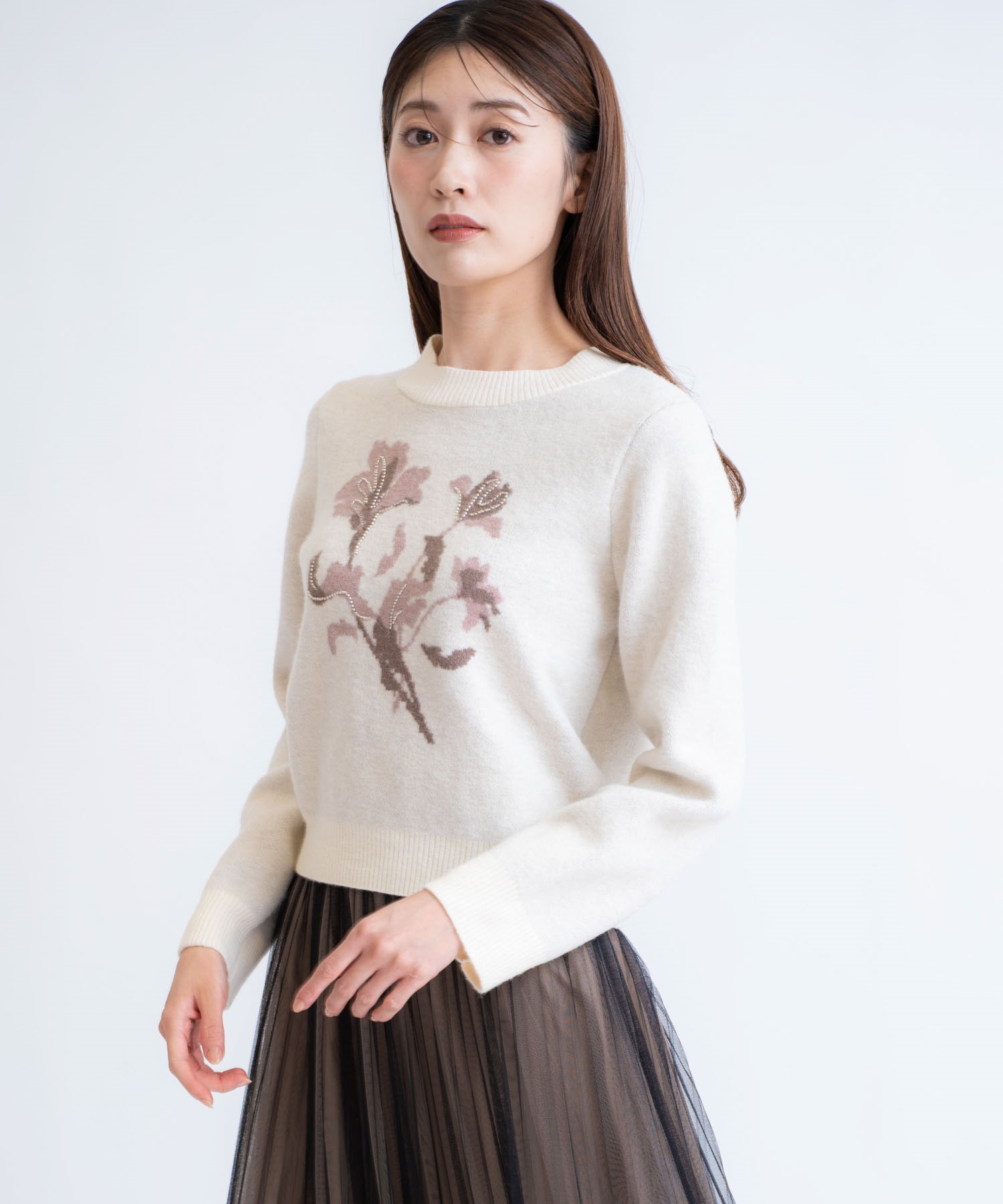 • ビーズジャガードニット(01オフホワイト-フリー)