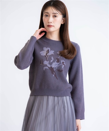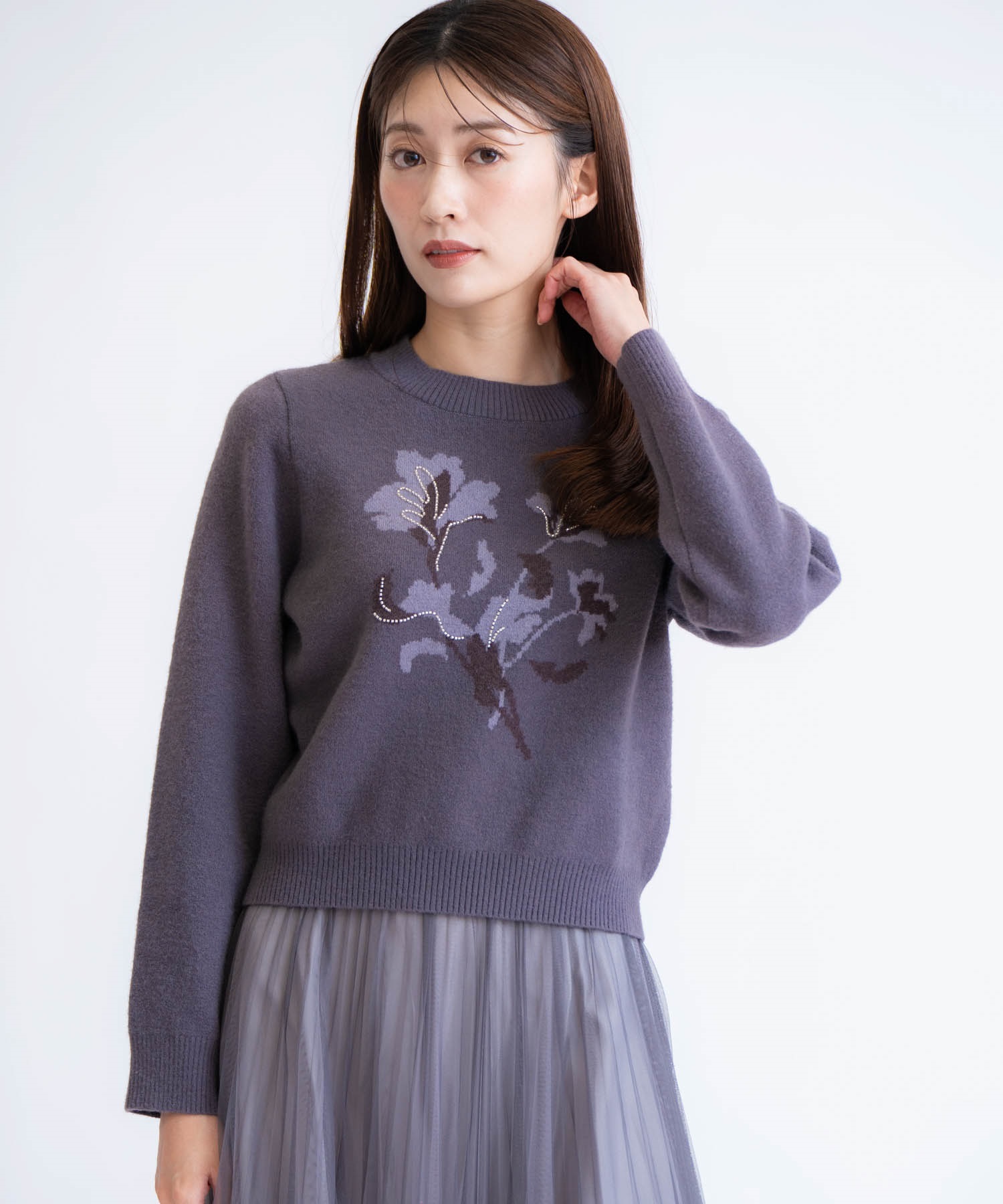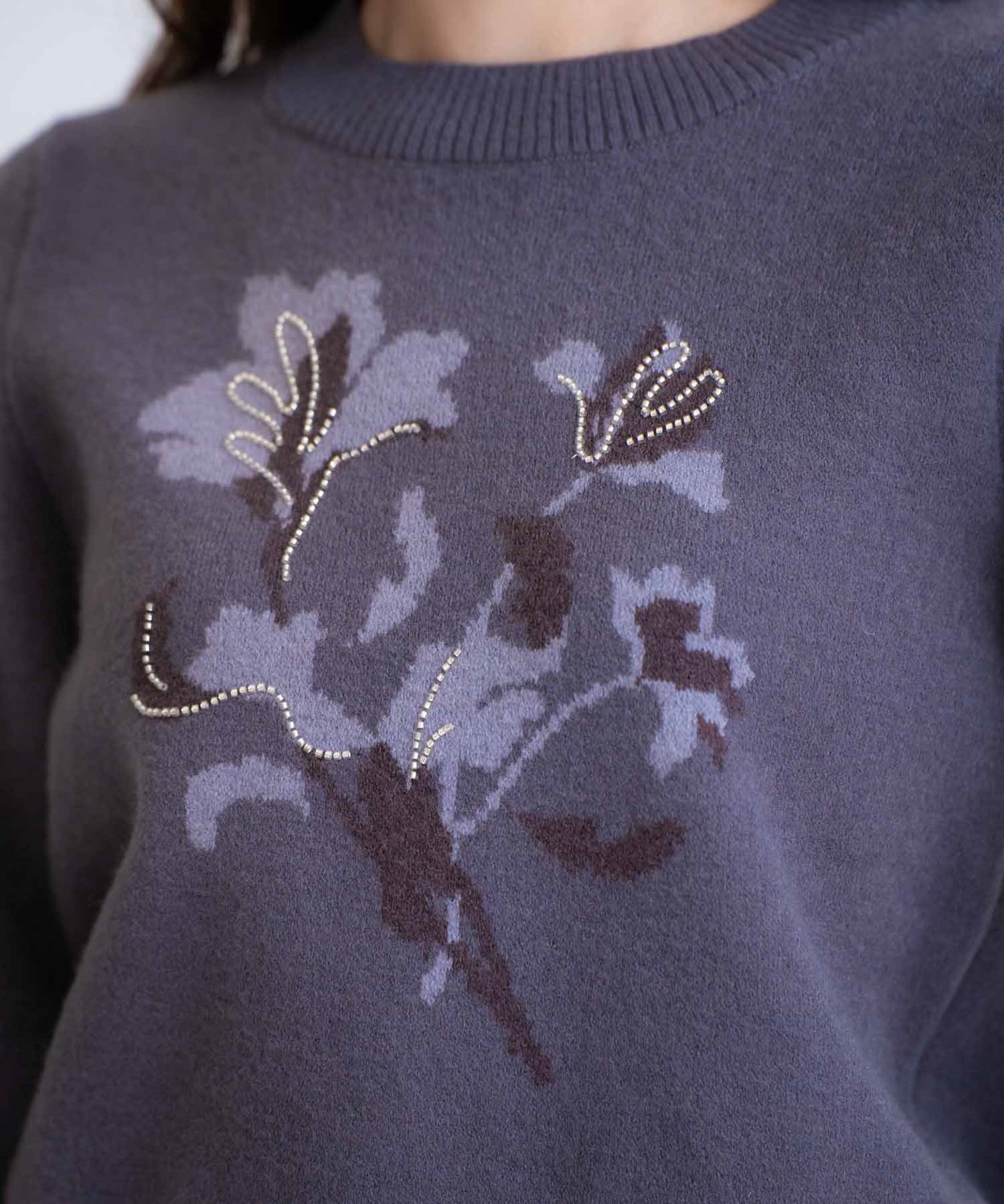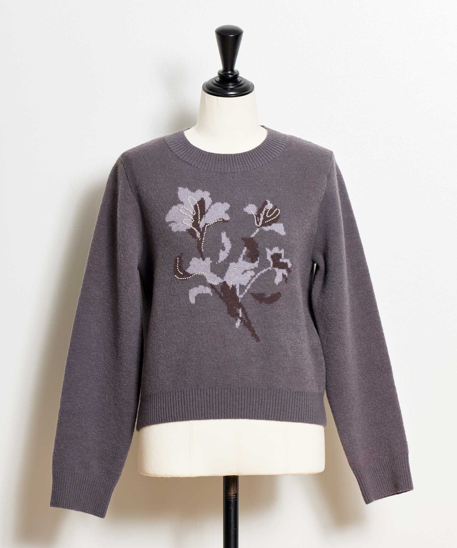 • ビーズジャガードニット(10チャコールグレー-フリー)