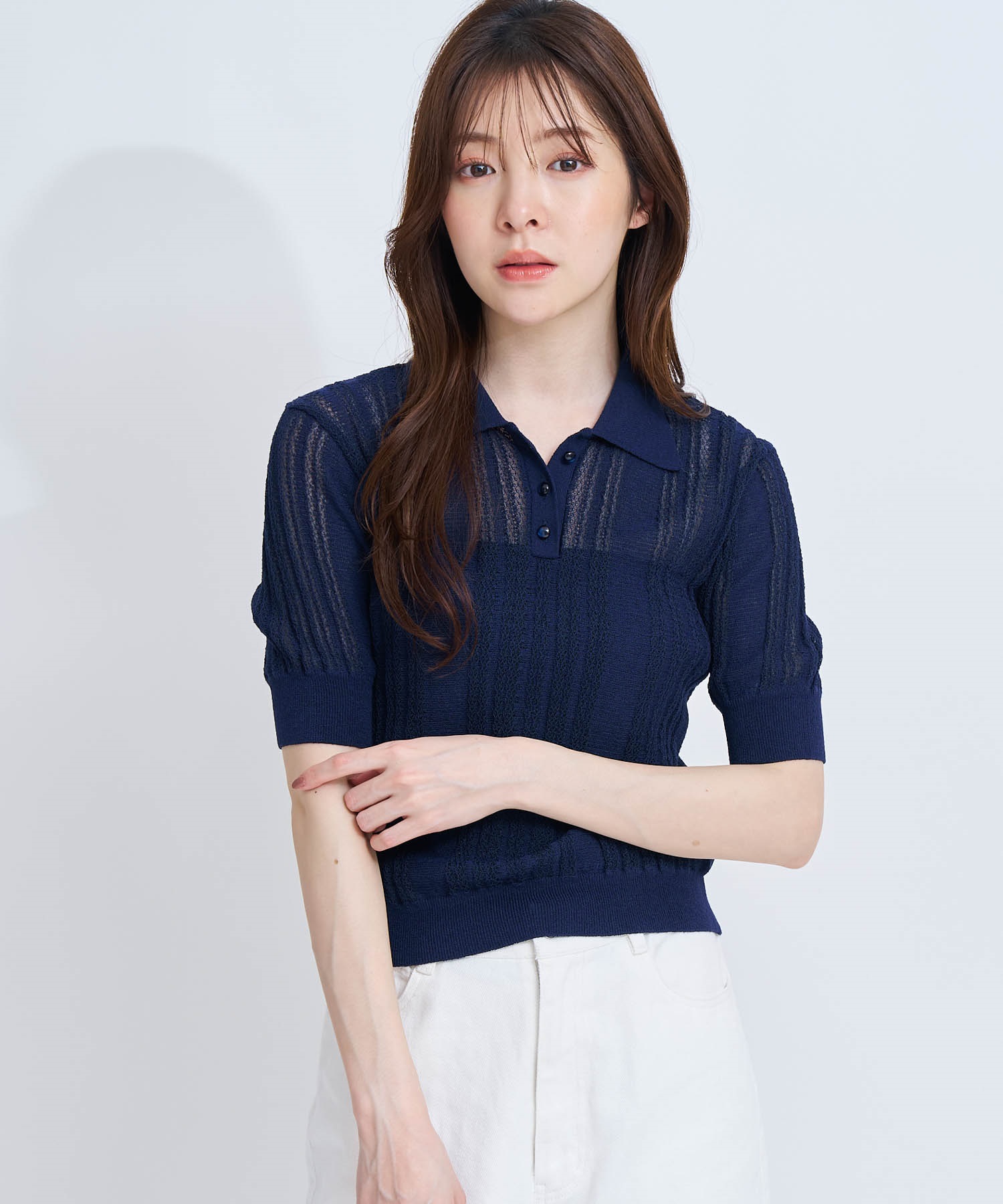 • 【予約】シアーリブポロニット(70ネイビー-フリー-4月下旬ごろのお届け)