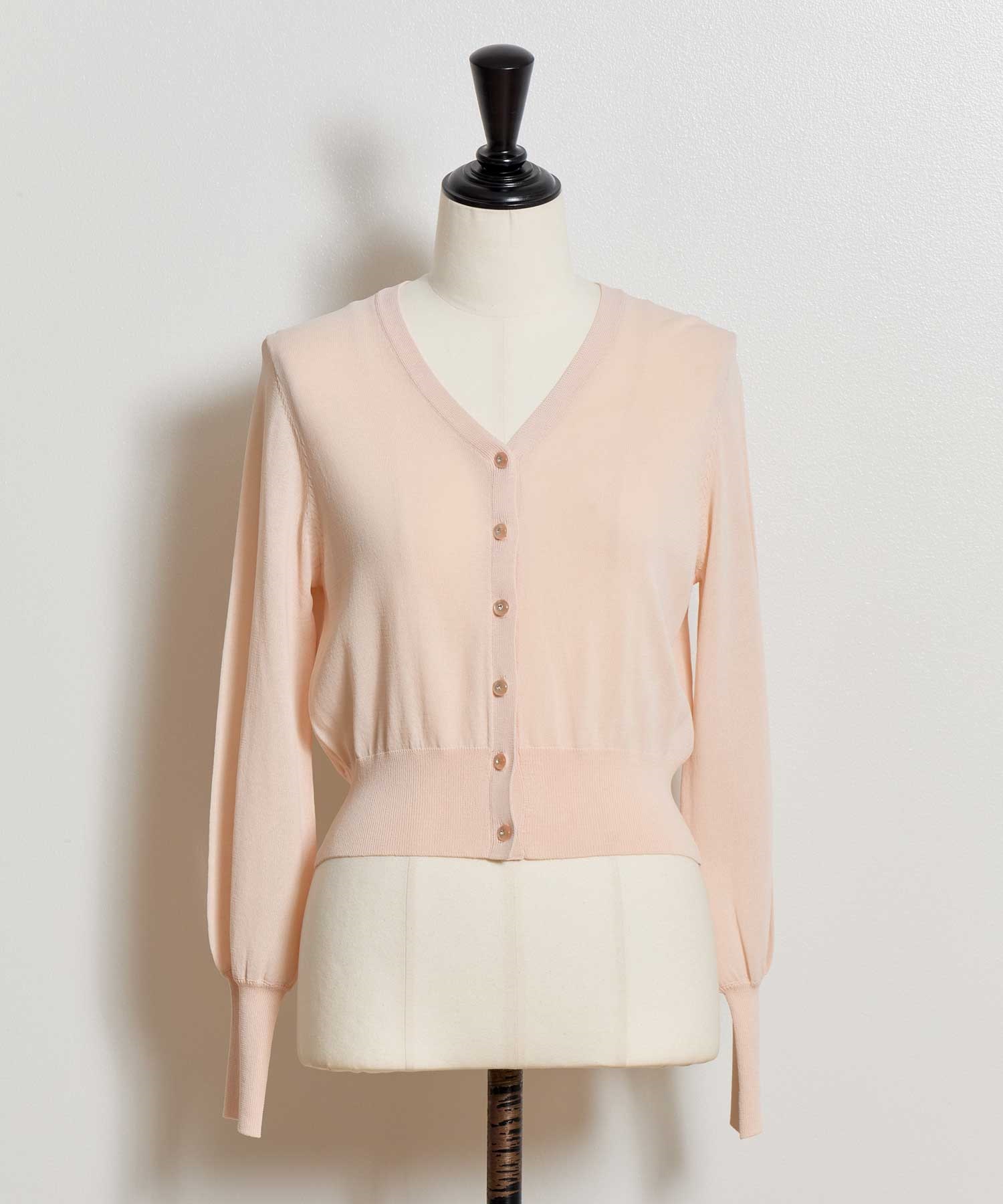 ワンピースに合わせやすいよう、コンパクトなシルエットに仕上げたベーシックカーディガン。