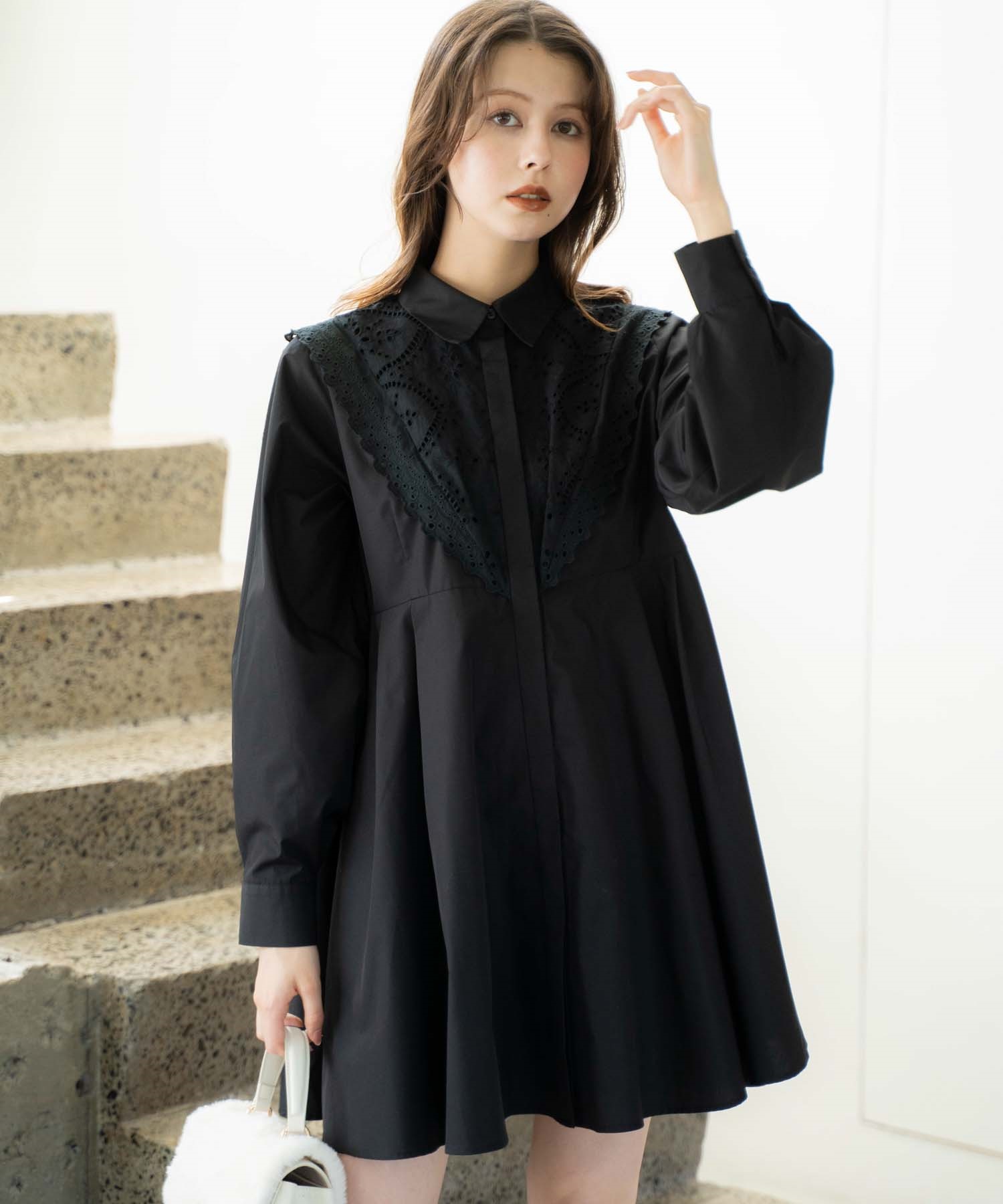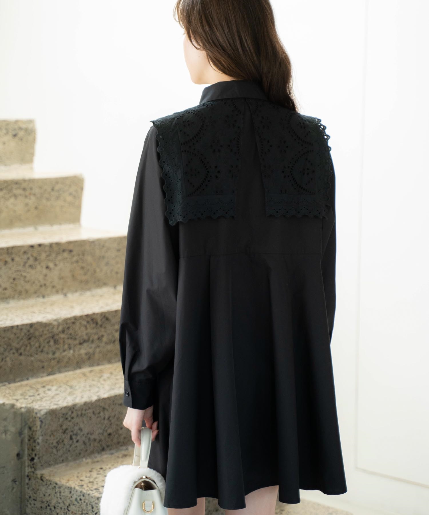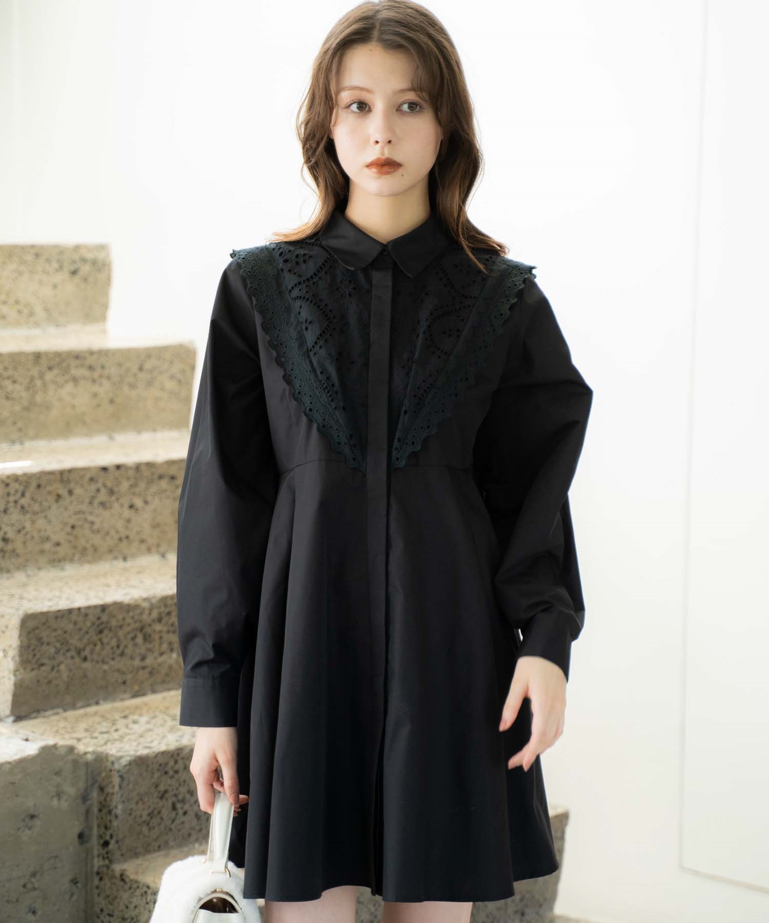 • エンブロイダリーミニシャツワンピース(00ブラック-フリー)