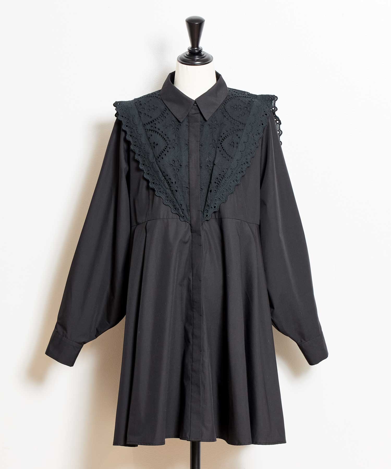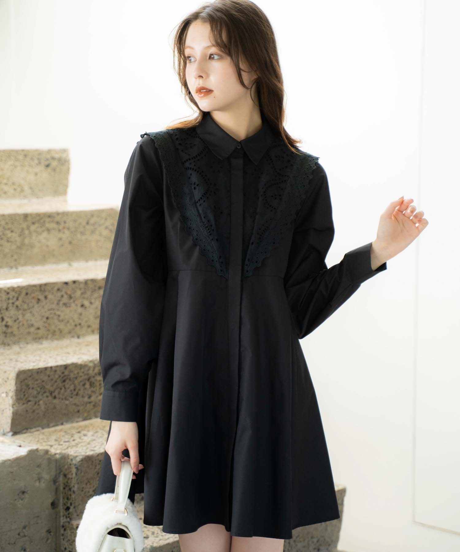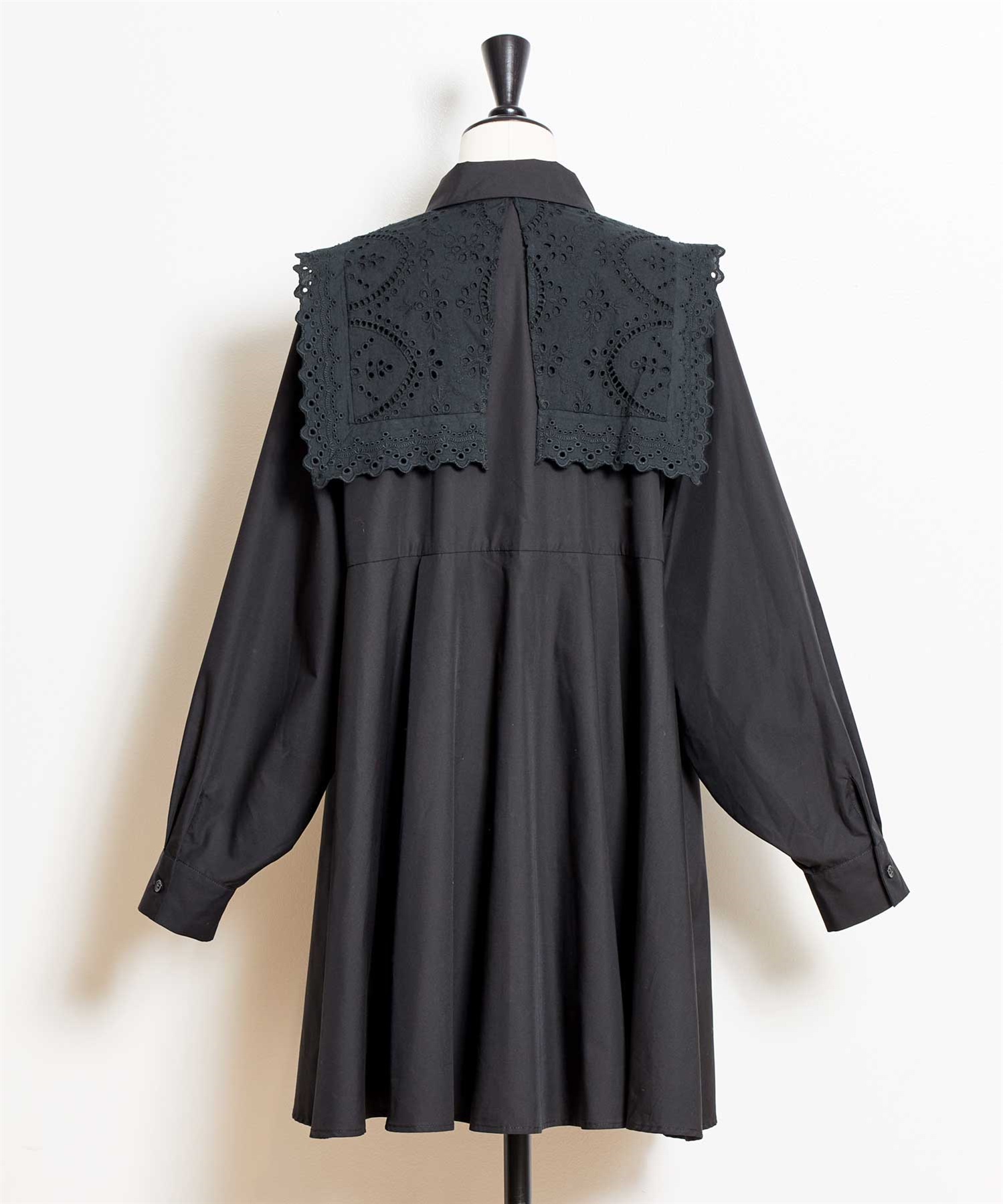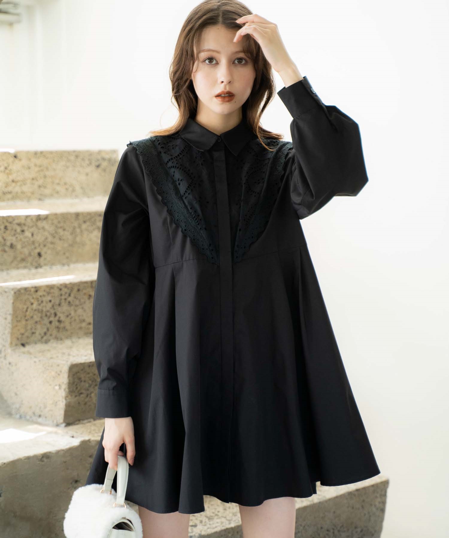 • エンブロイダリーミニシャツワンピース(00ブラック-フリー)