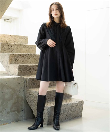 【おすすめポイント】:コットンレースのセーラーカラーが目を惹くデザインポイント!少し短め丈なので、ロングブーツと合わせれば甘さを抑えて大人っぽく着こなせそう。1枚でコーデの主役になる可愛さです。