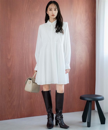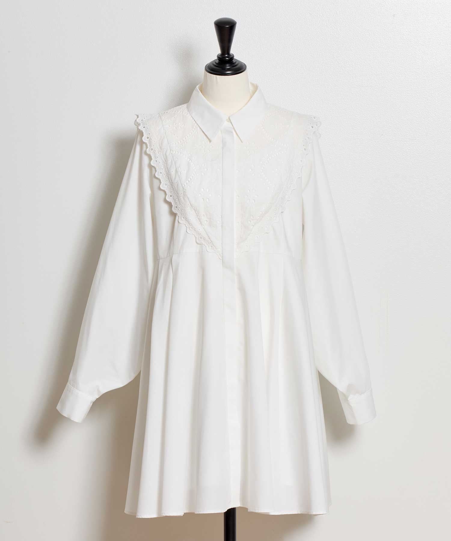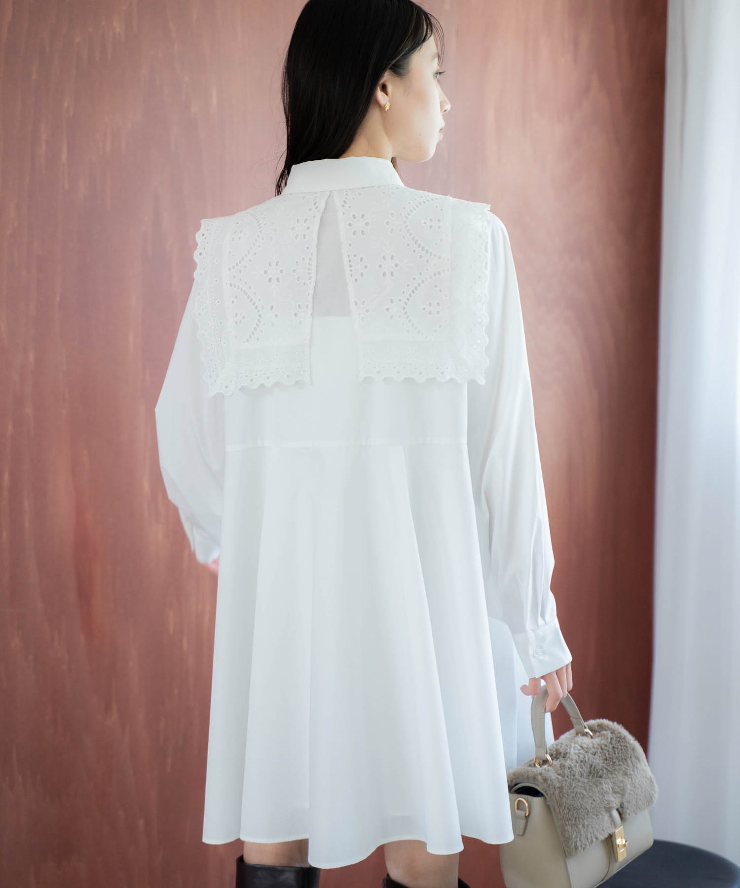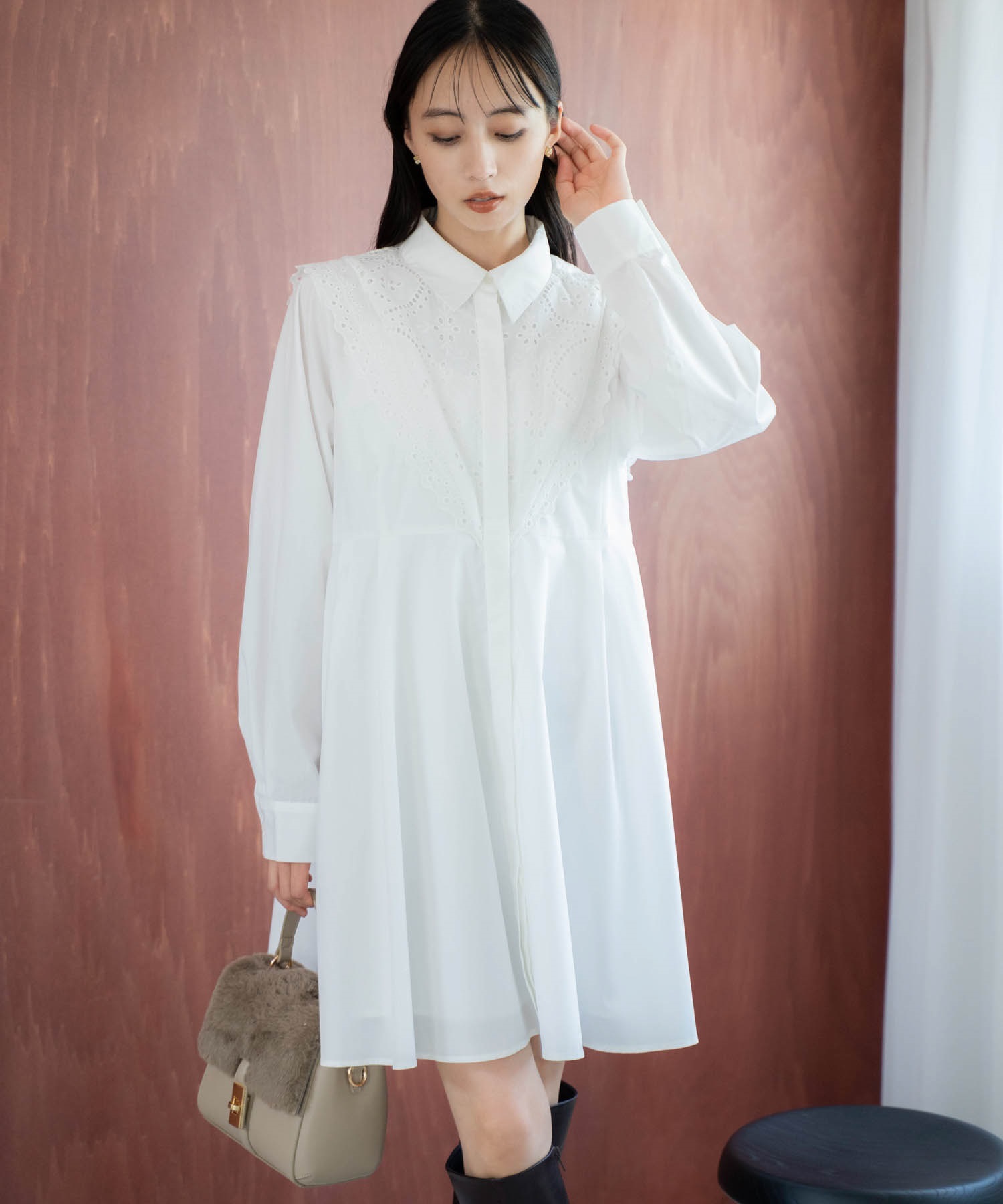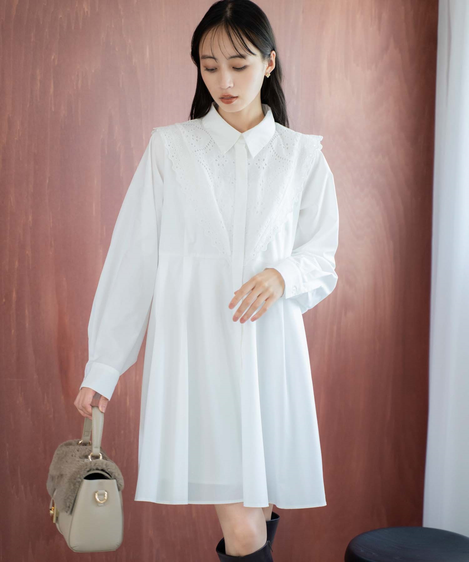 • エンブロイダリーミニシャツワンピース(01オフホワイト-フリー)
