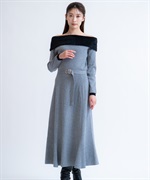 • フェザートリム配色ドッキングワンピース(11グレー-フリー)
