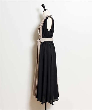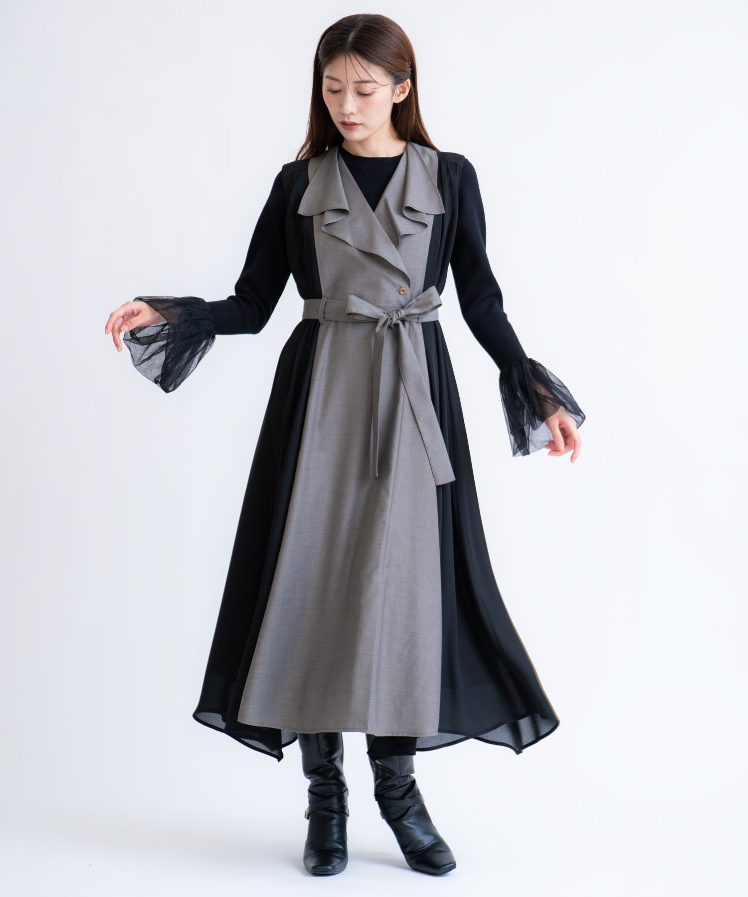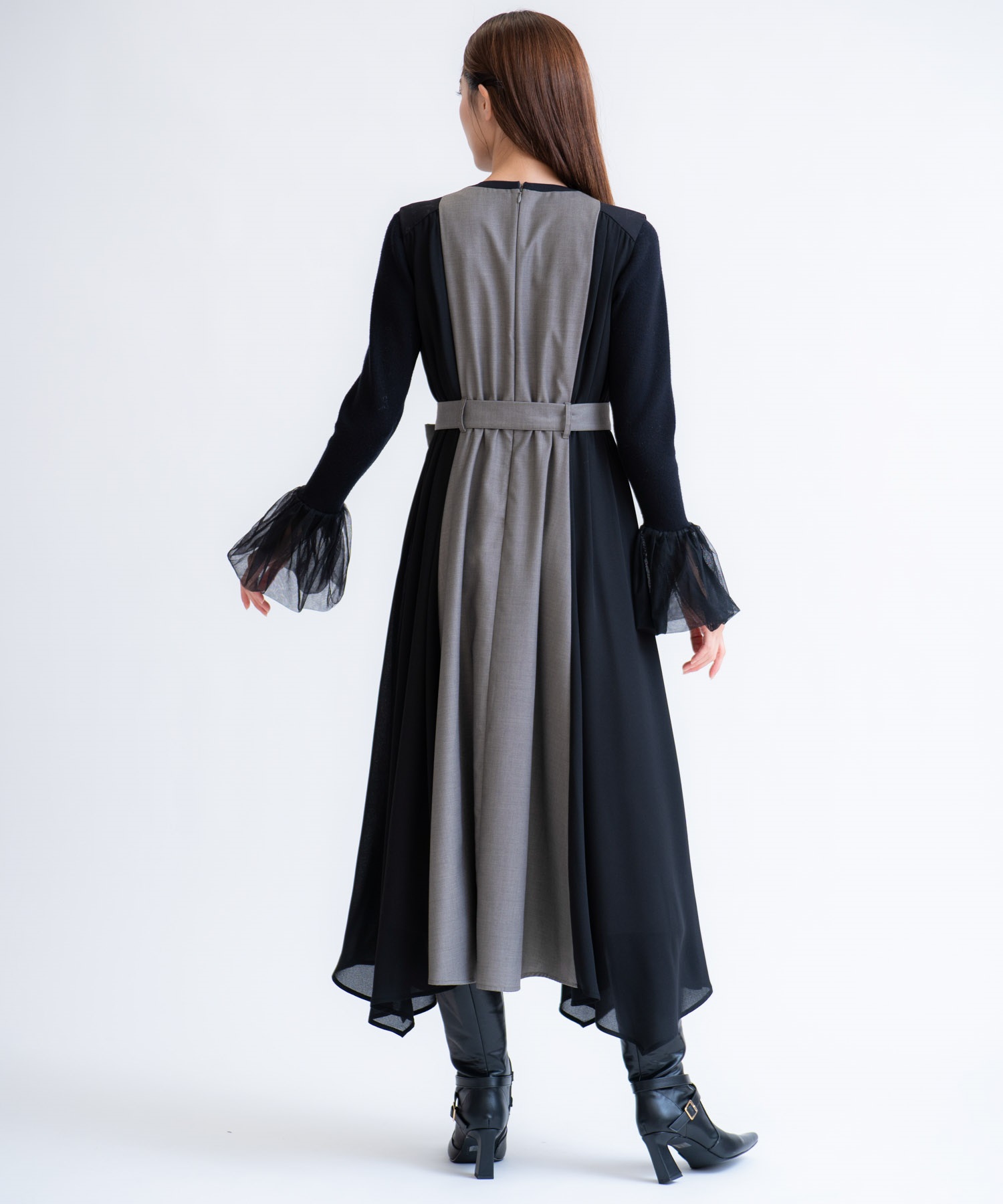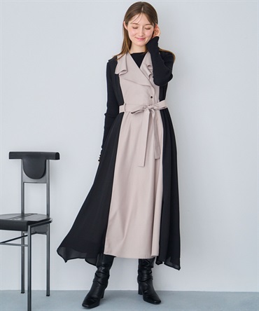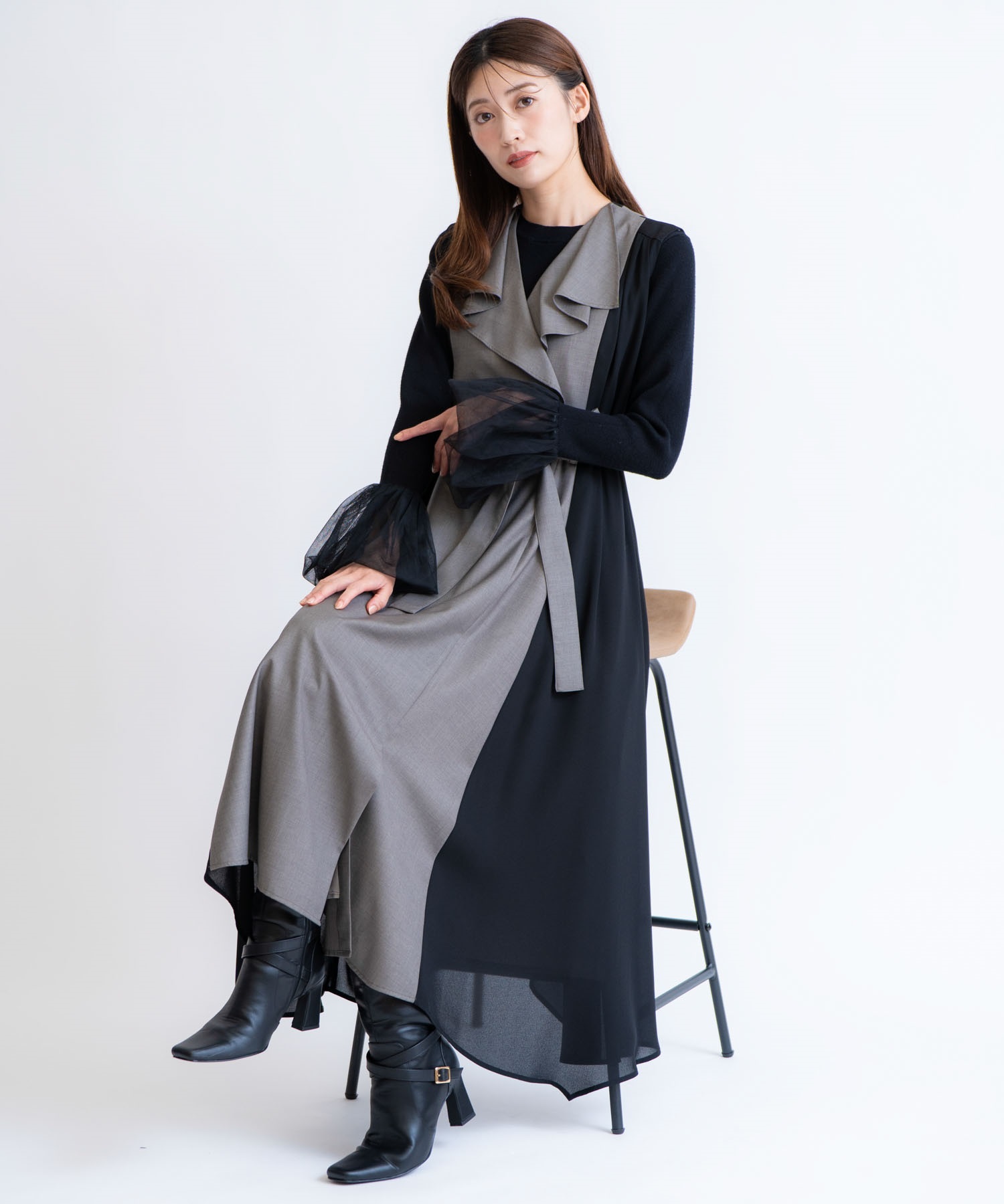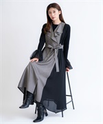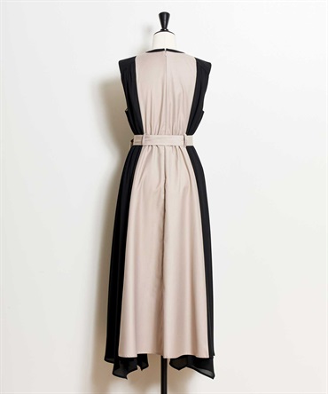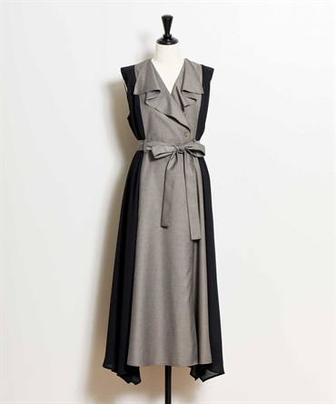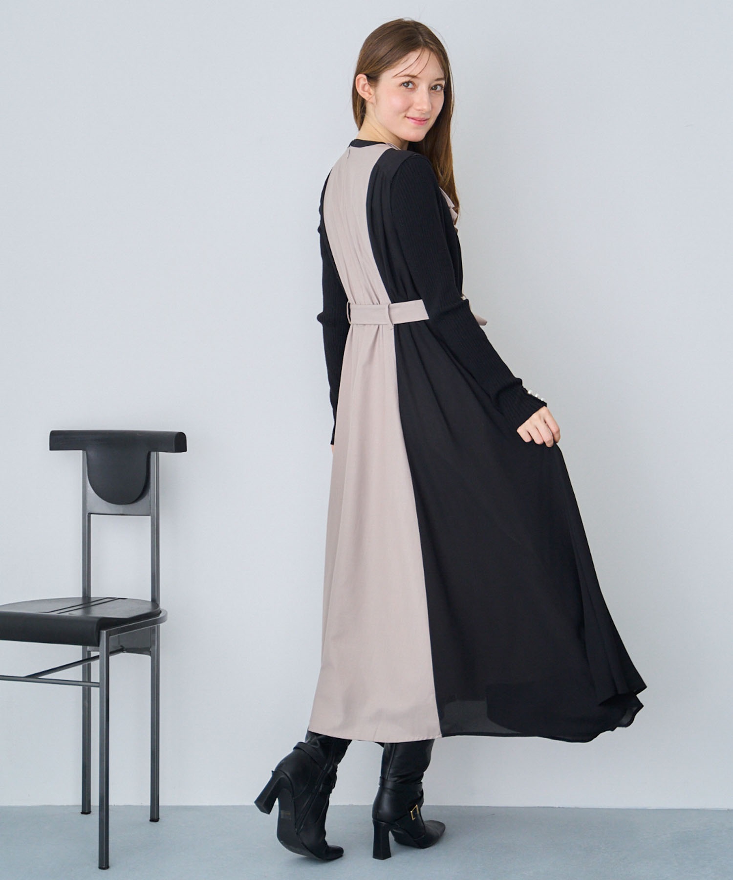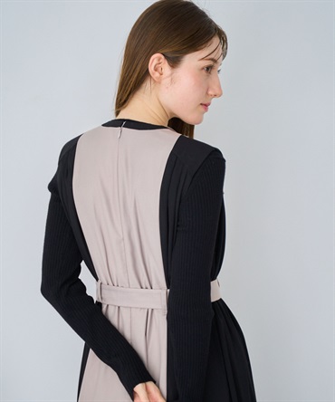 異素材の組み合わせが目を引く、スタイルアップ効果のあるジャンパースカート。
