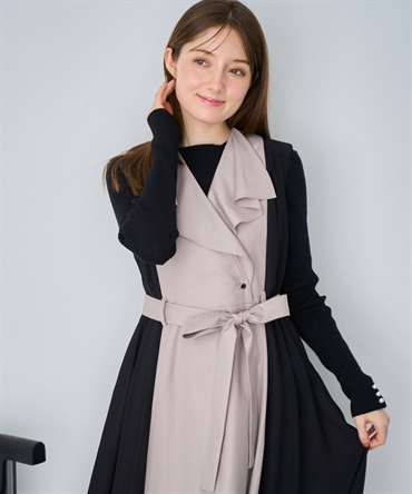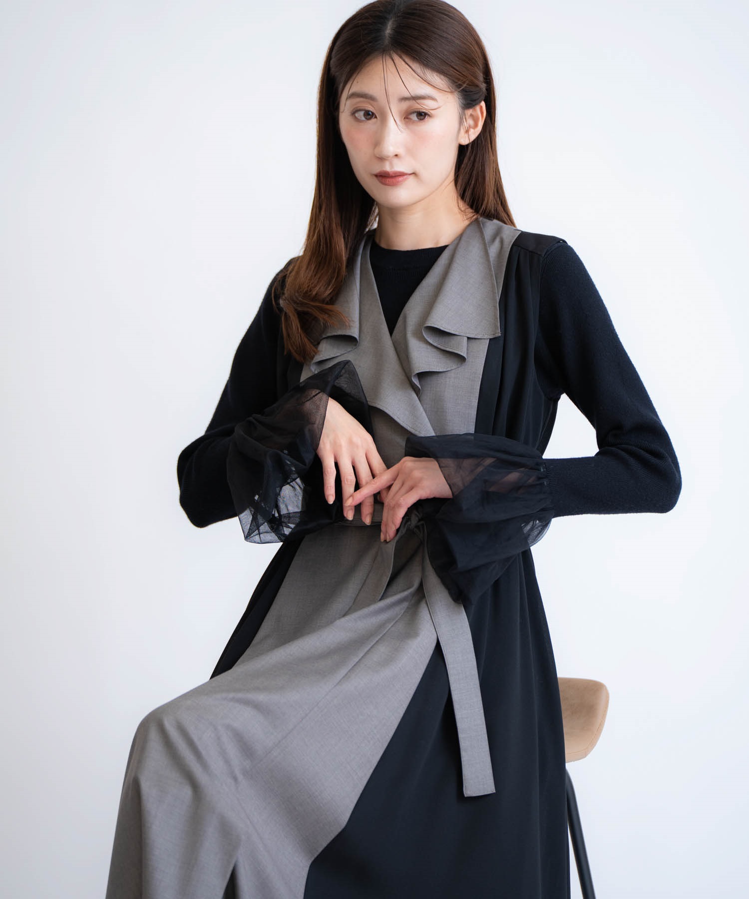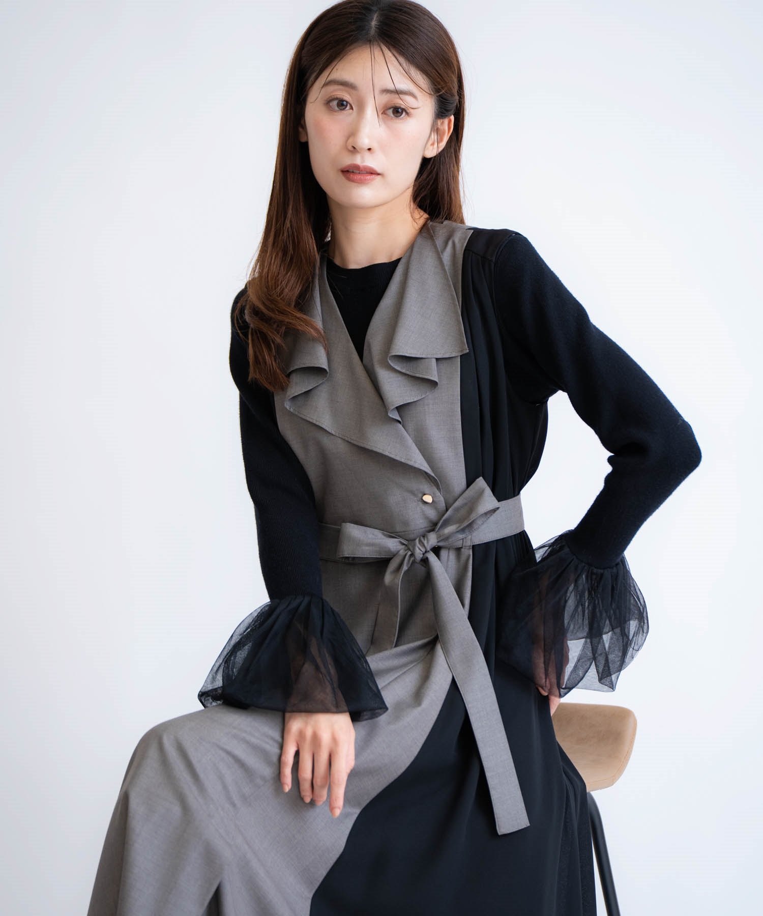 胸元のフリルデザインが華やかさを添え、フェミニンな印象に仕上げました。