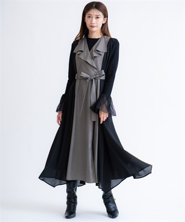 • シフォン切り替えジャンスカ(82ベージュ-S)