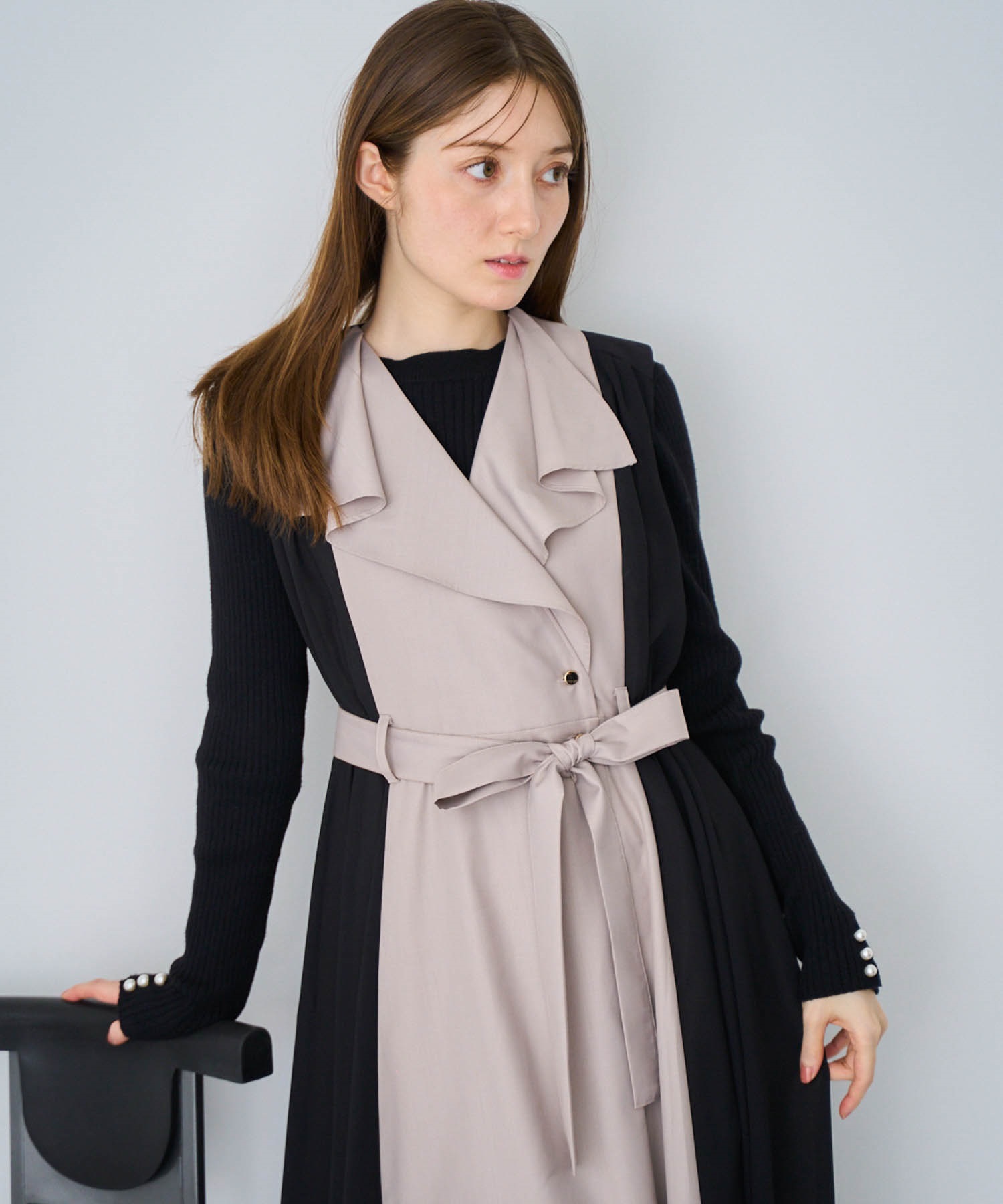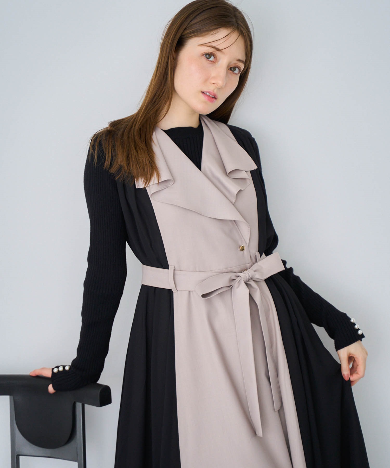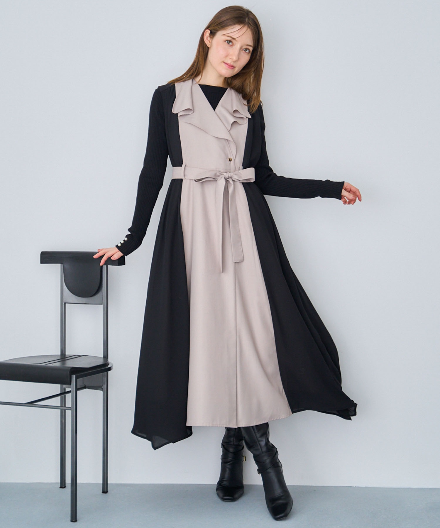 同素材のベルト付きで、ウエストマークもきれいに決まります。