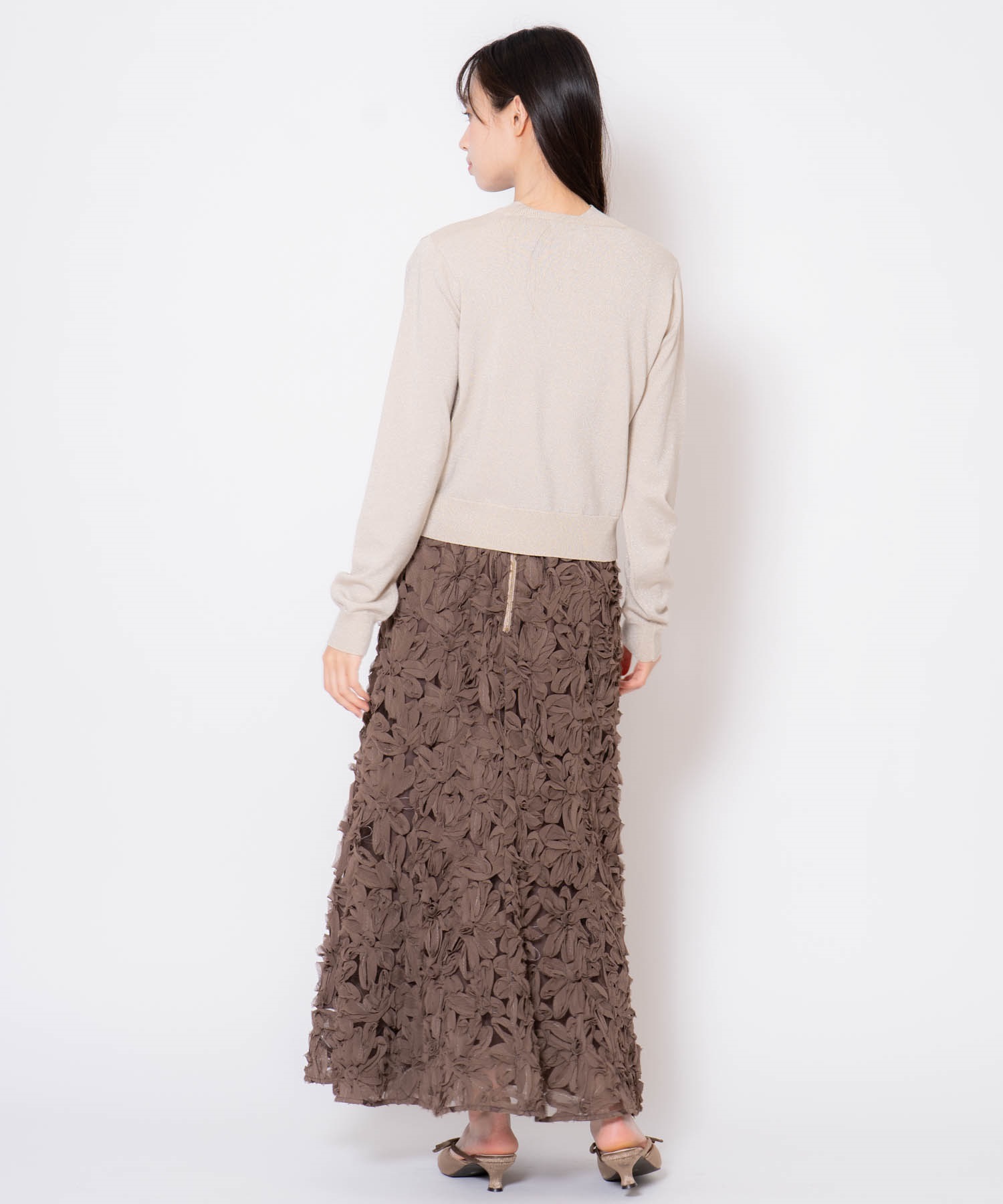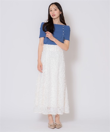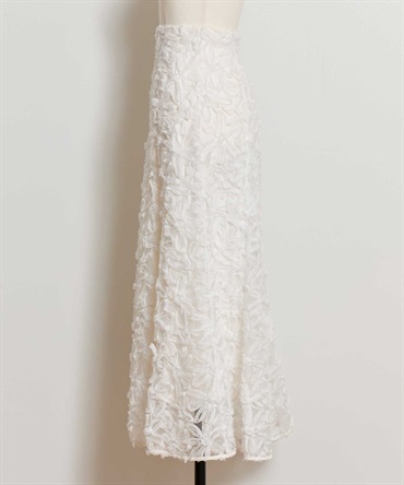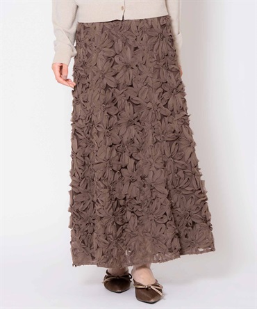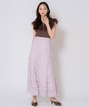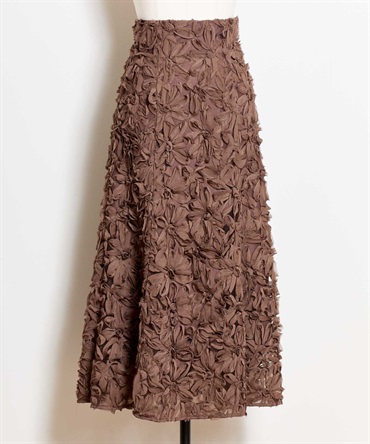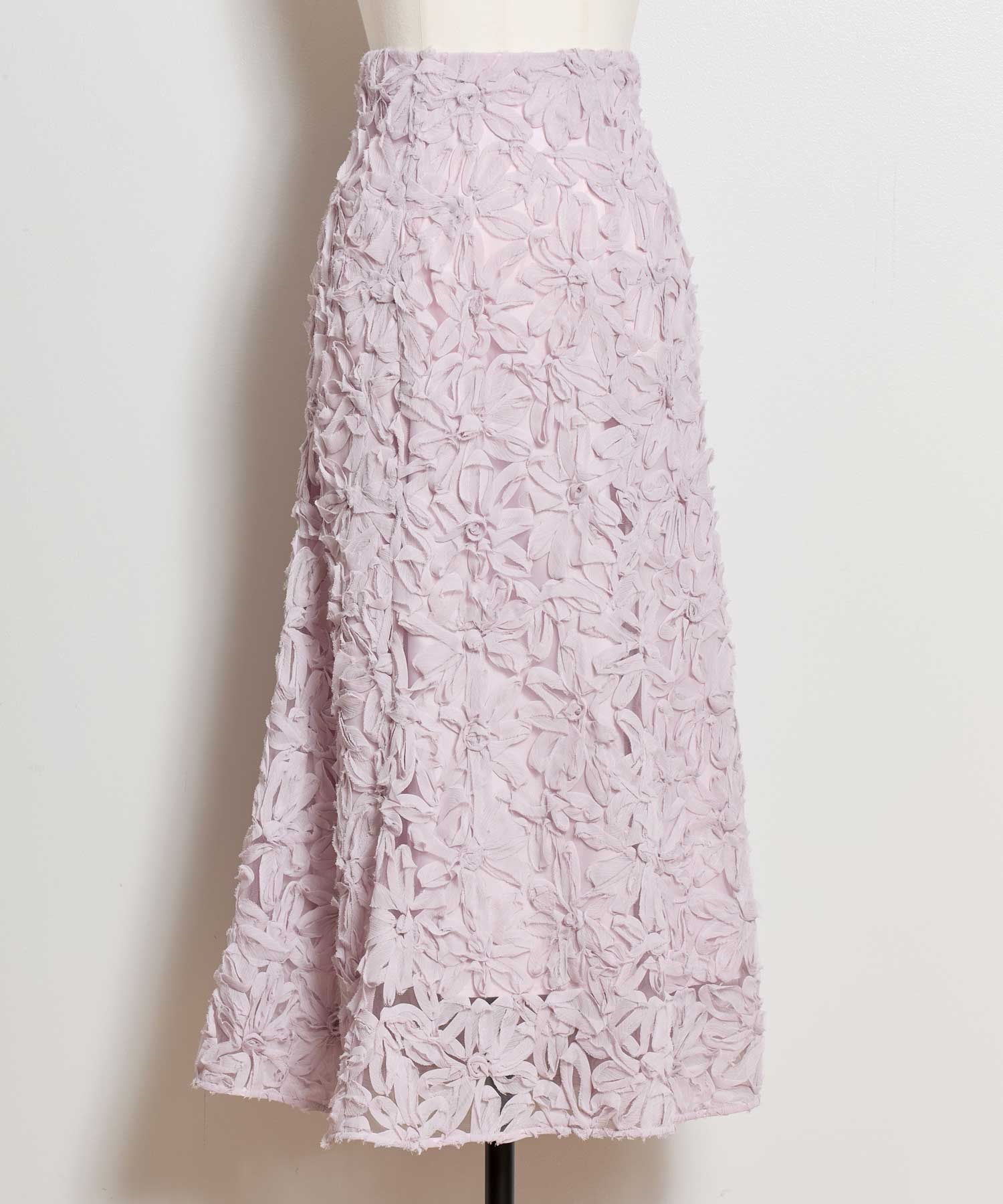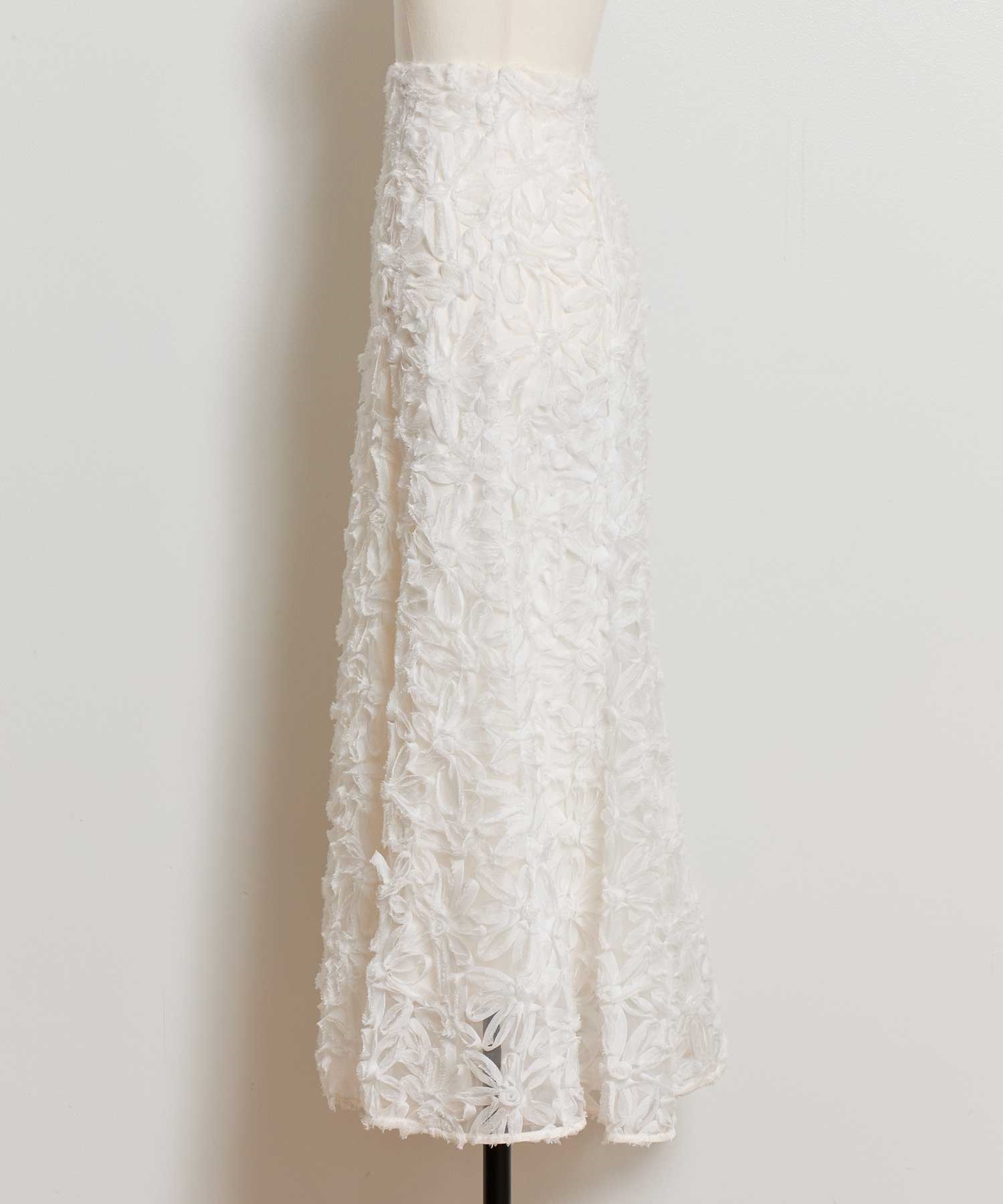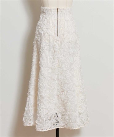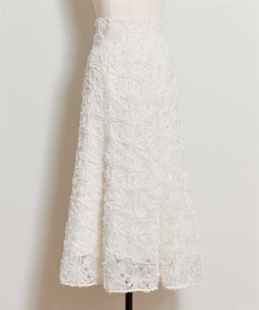 立体的なフラワーモチーフが印象的な、繊細で華やかなシアージャガードスカート。