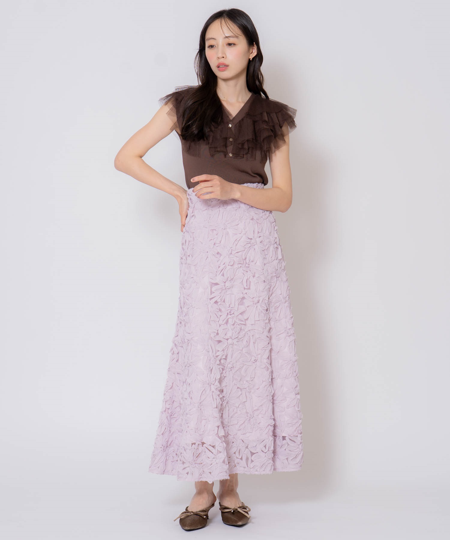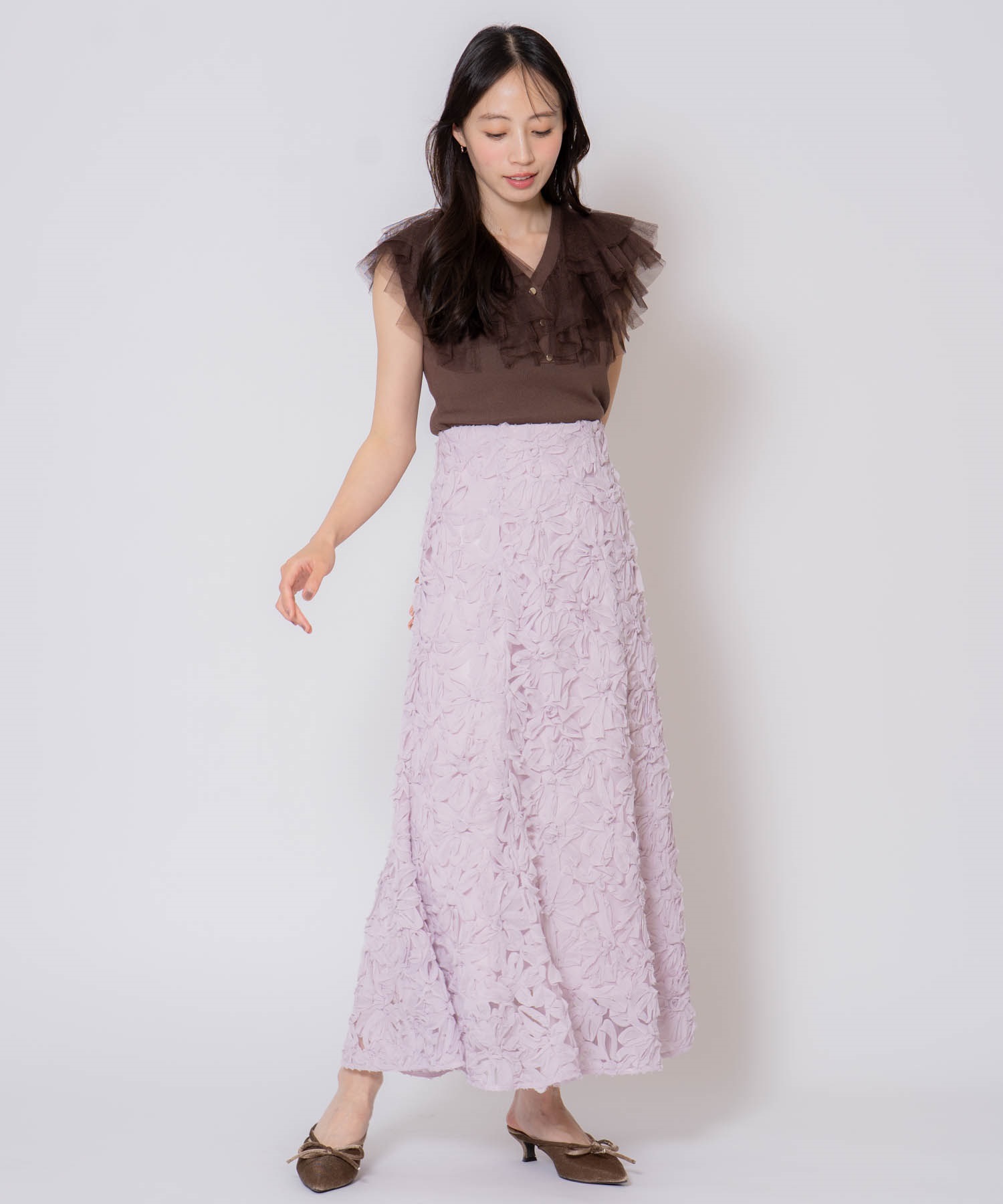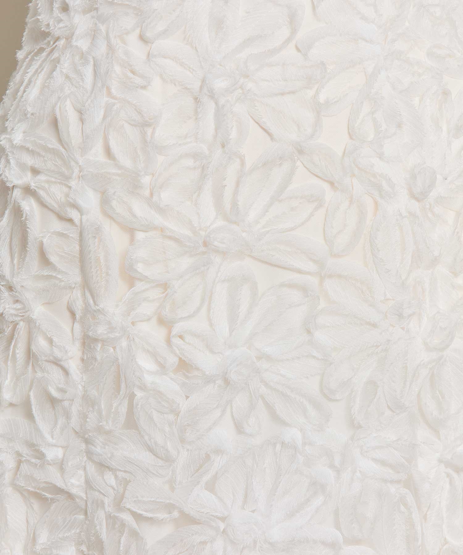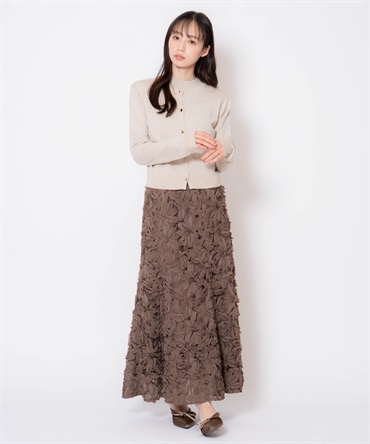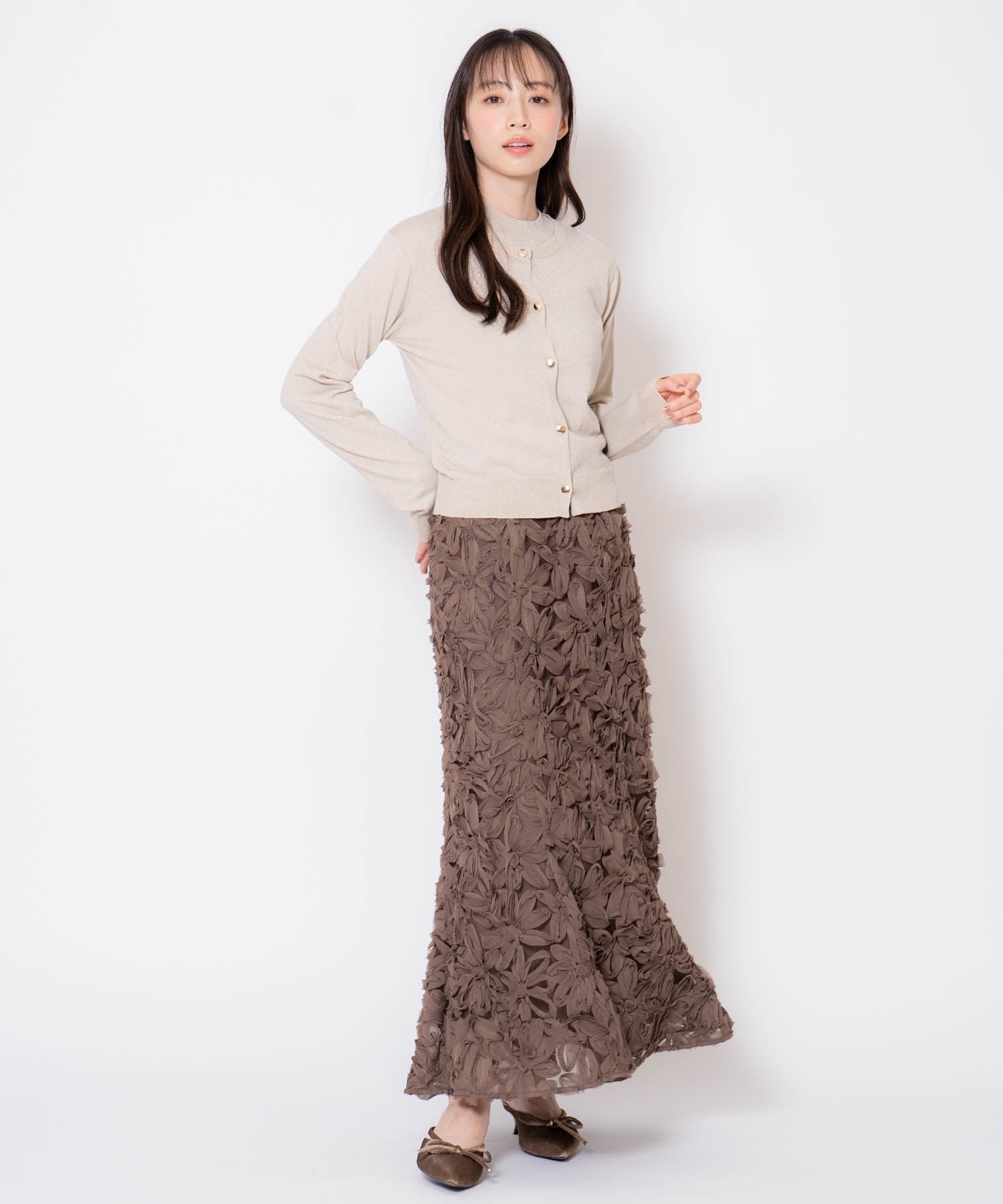 立体的なフラワーモチーフが印象的な、繊細で華やかなシアージャガードスカート。