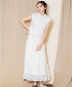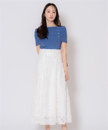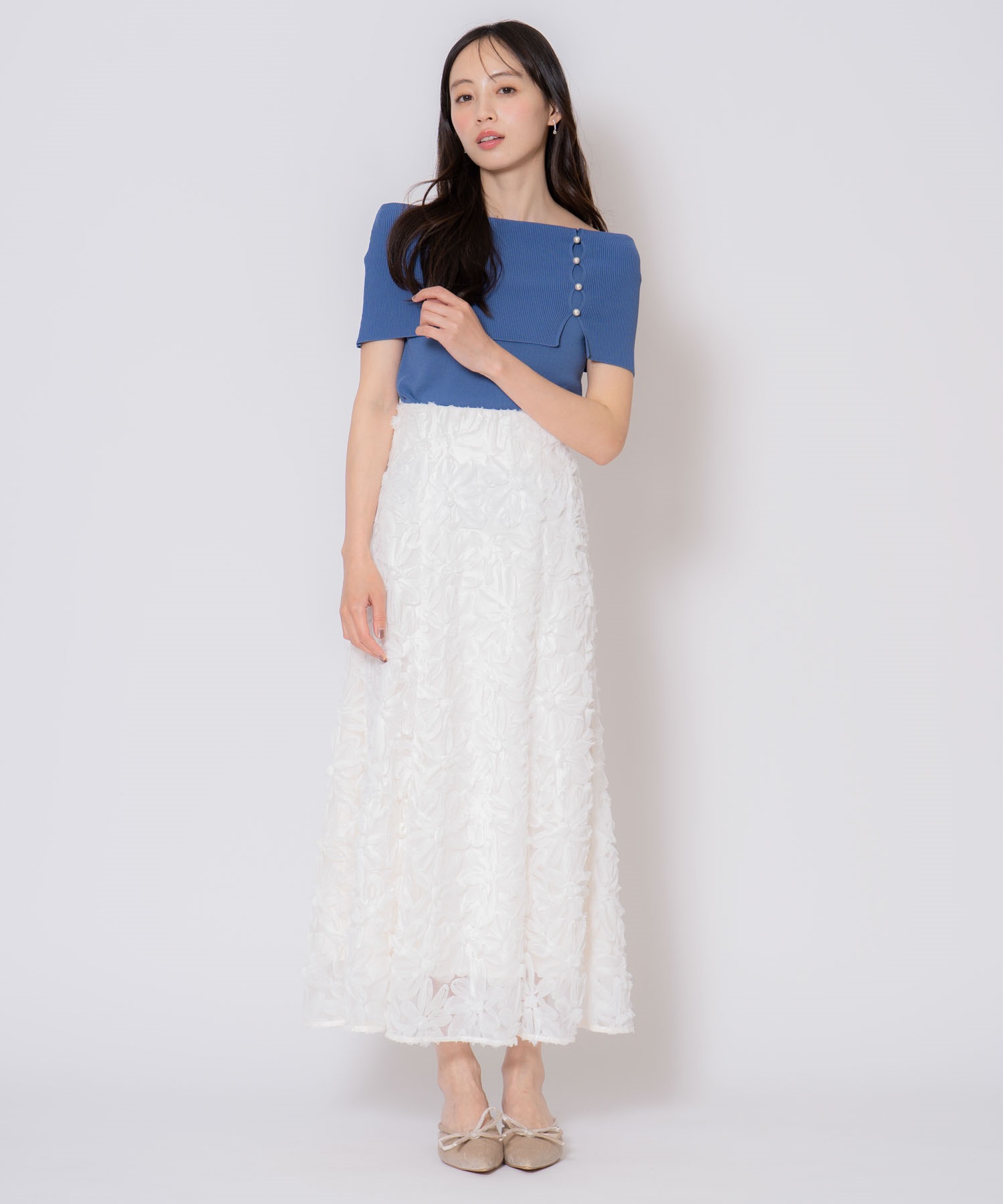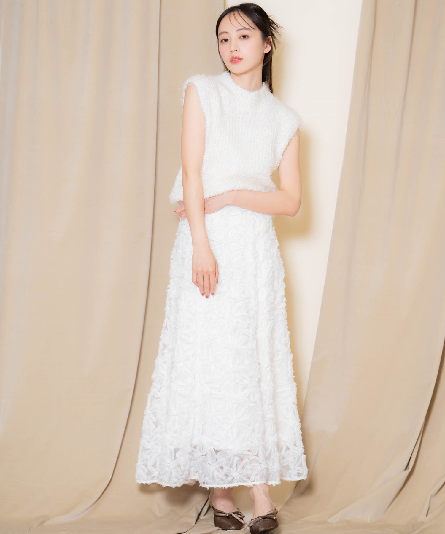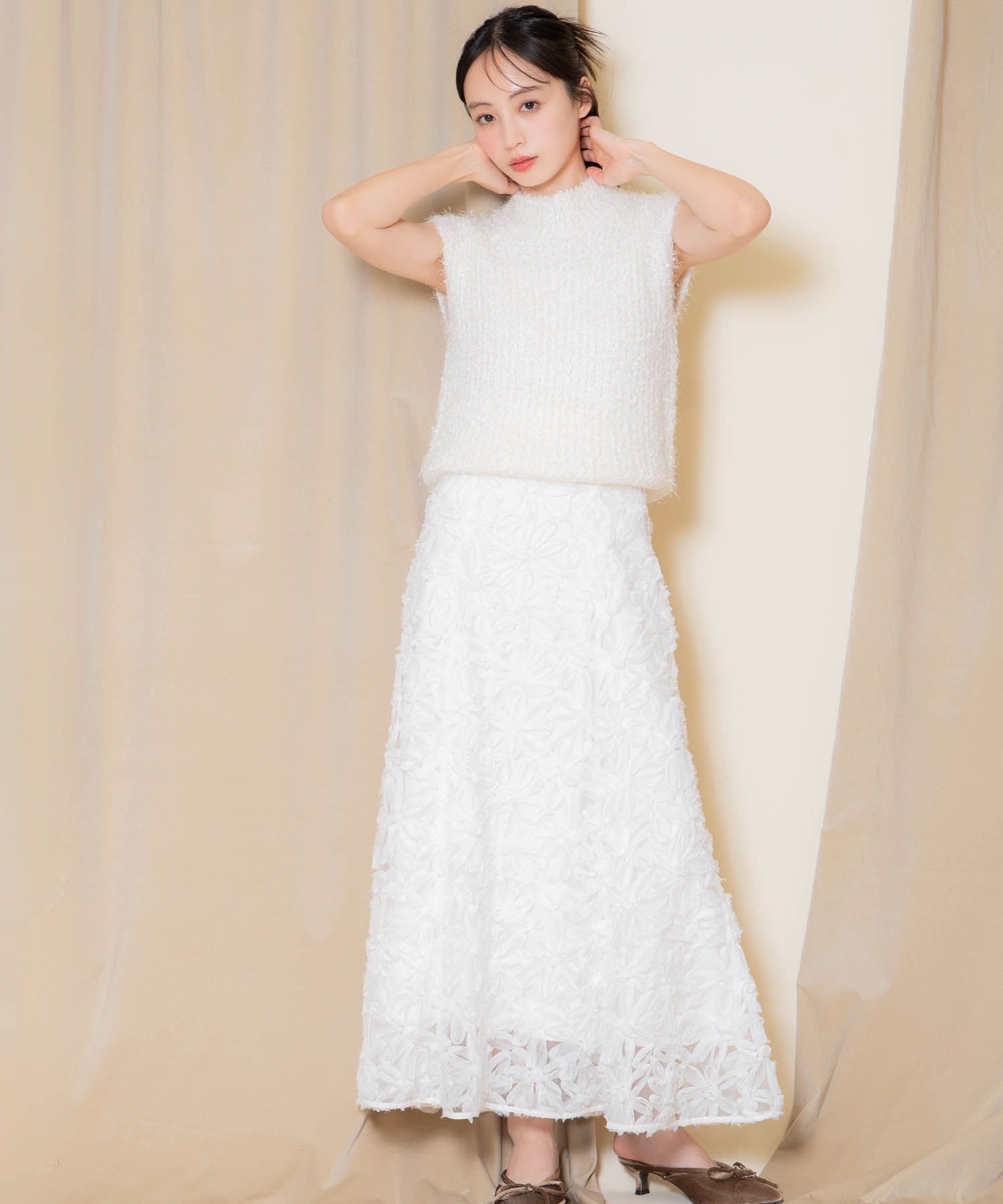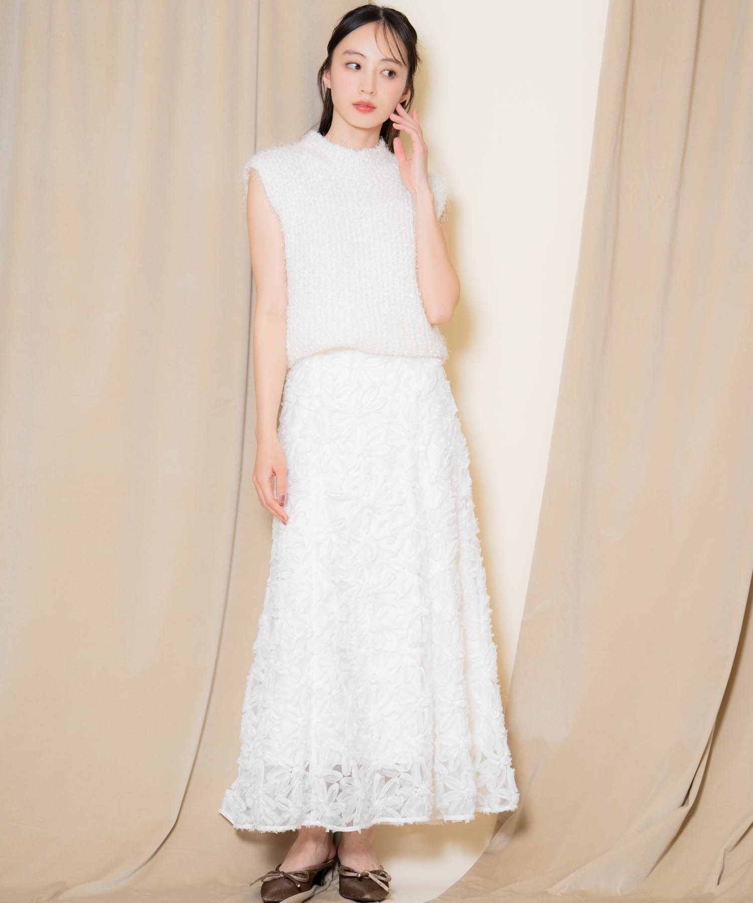 立体的なフラワーモチーフが印象的な、繊細で華やかなシアージャガードスカート。