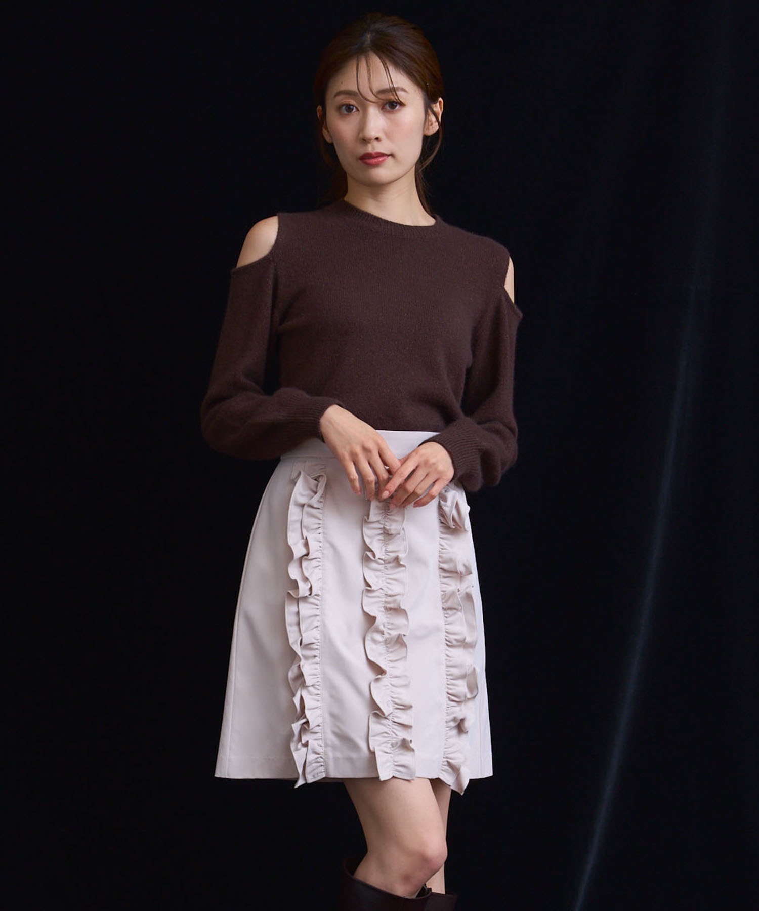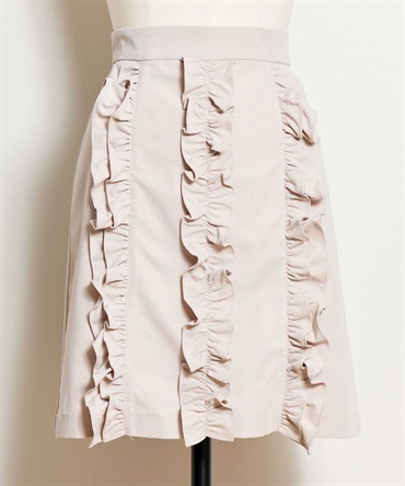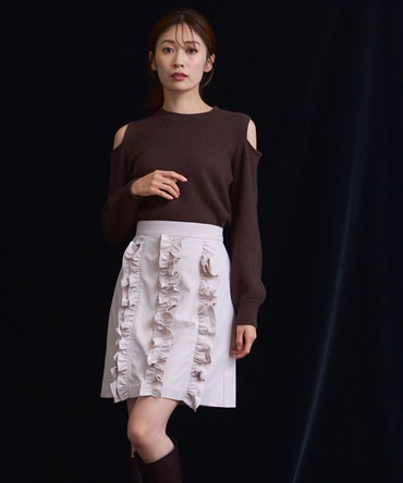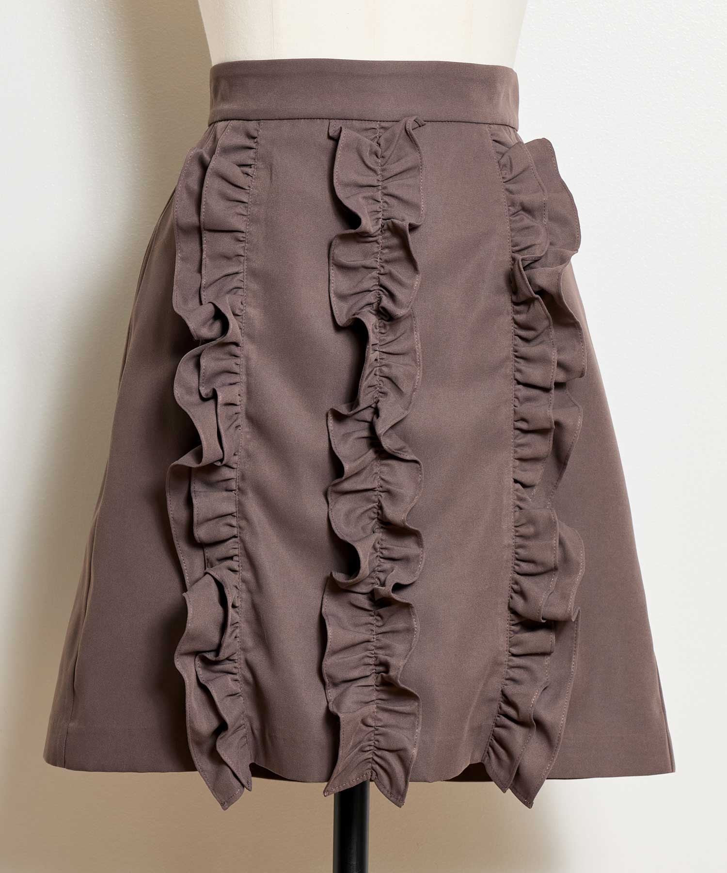 ギャザーフリルを贅沢にあしらった、存在感のあるミニスカート。