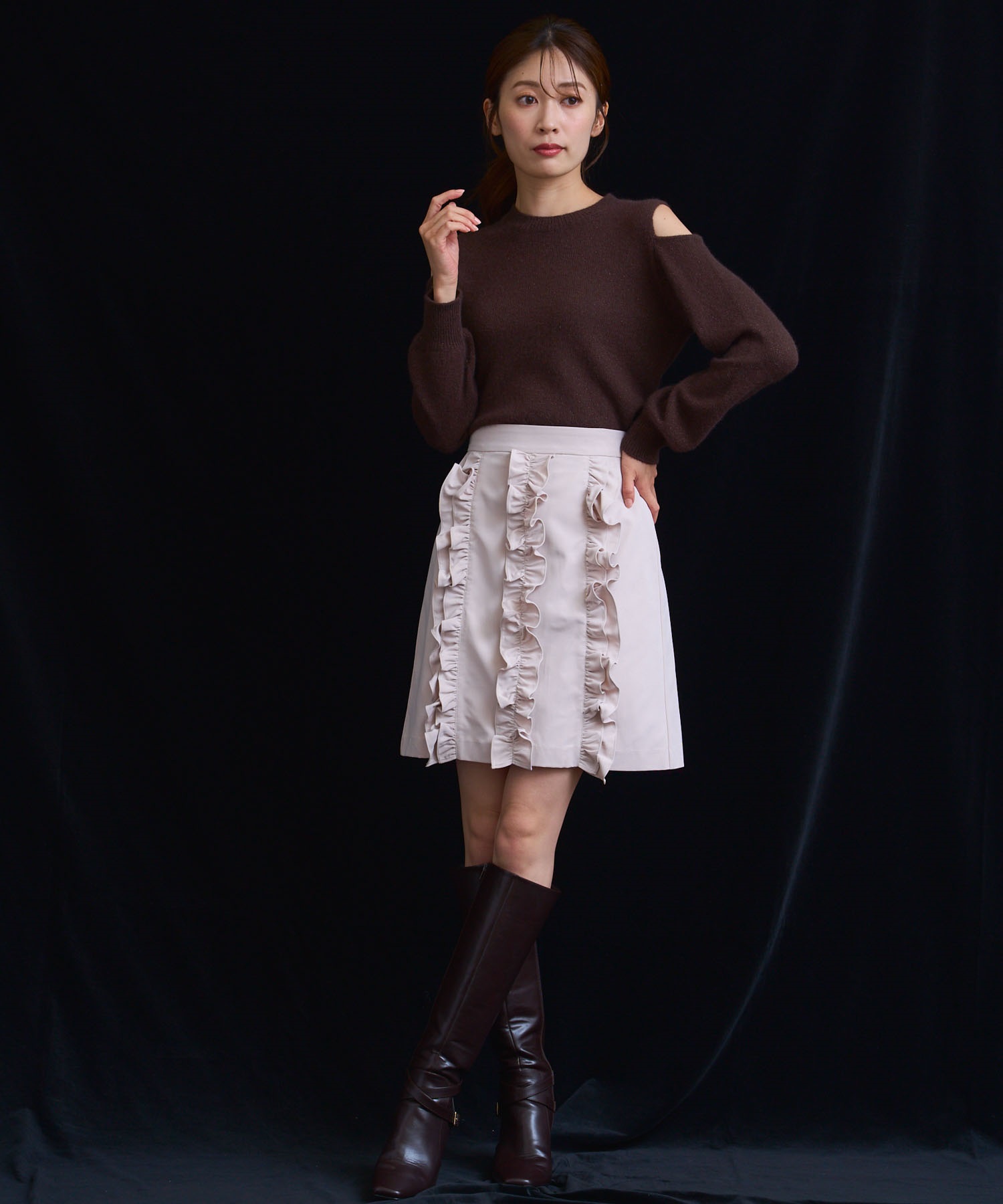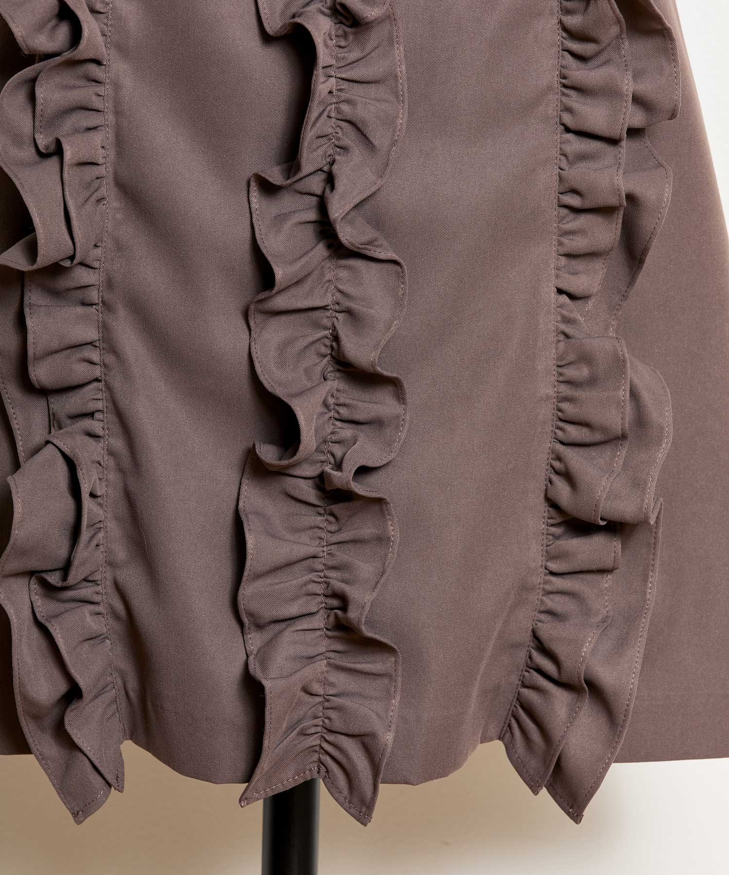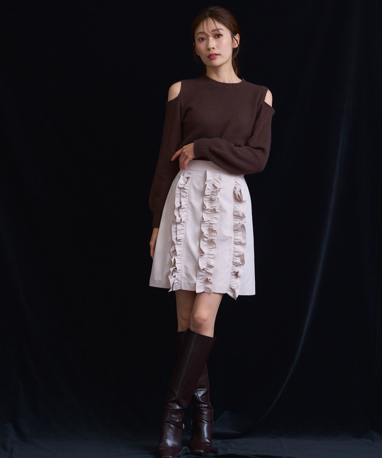 ギャザーフリルを贅沢にあしらった、存在感のあるミニスカート。