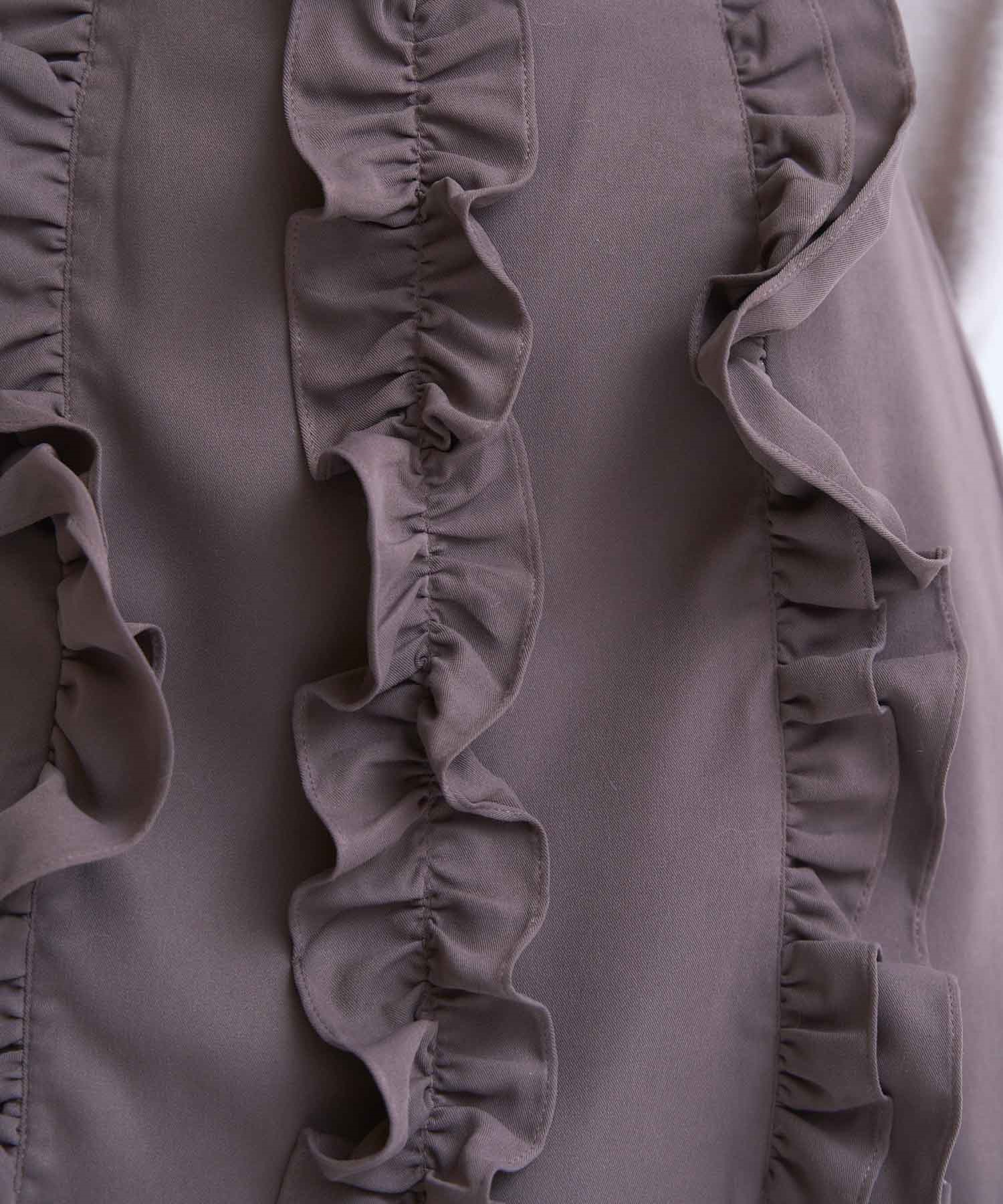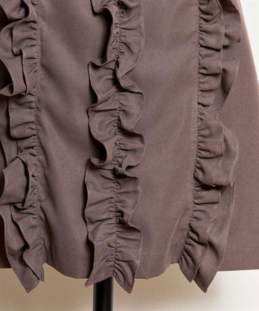 ふんわりとしたフリルの動きが女性らしさを引き立て、華やかな印象を演出します。