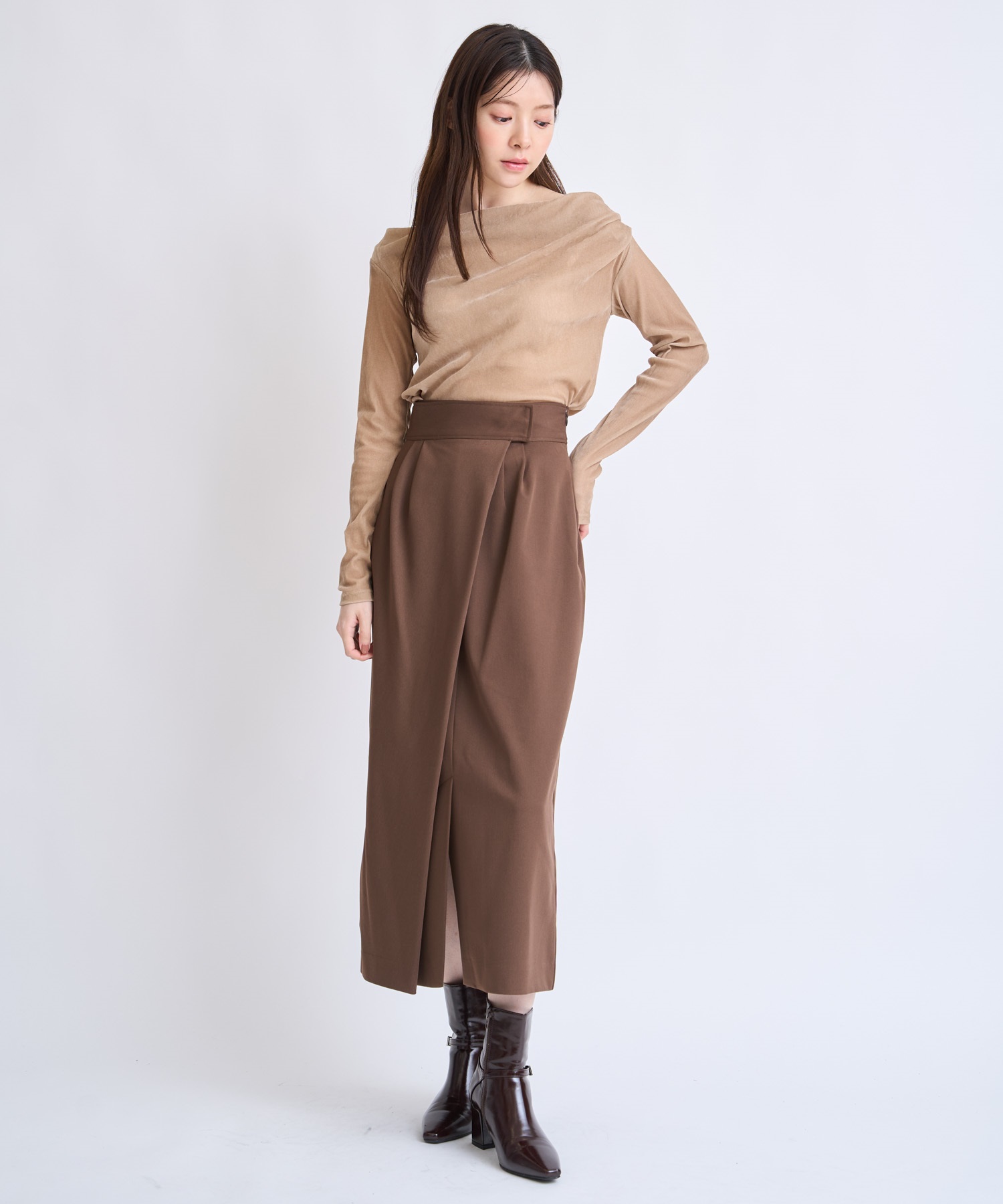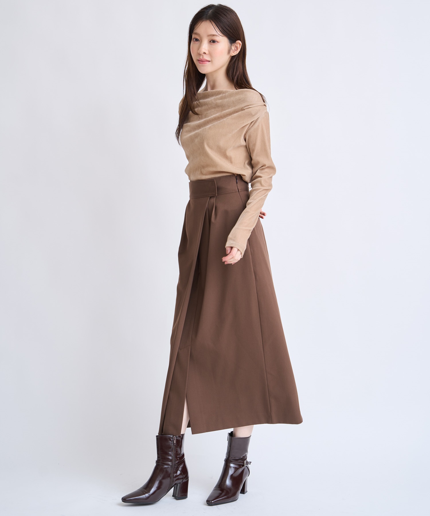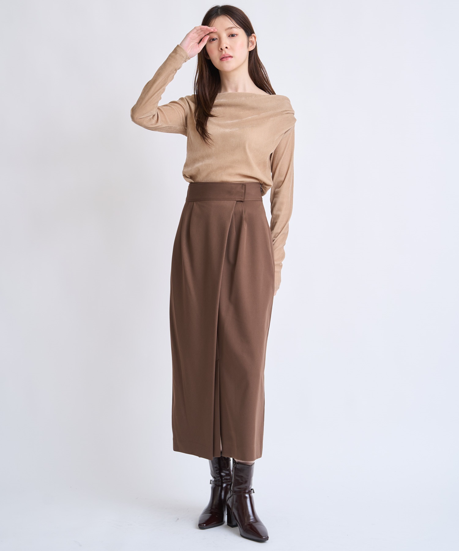 ウエストのさりげない切り替えでスタイルアップが叶い、トップスを選ばない着回し力も抜群。