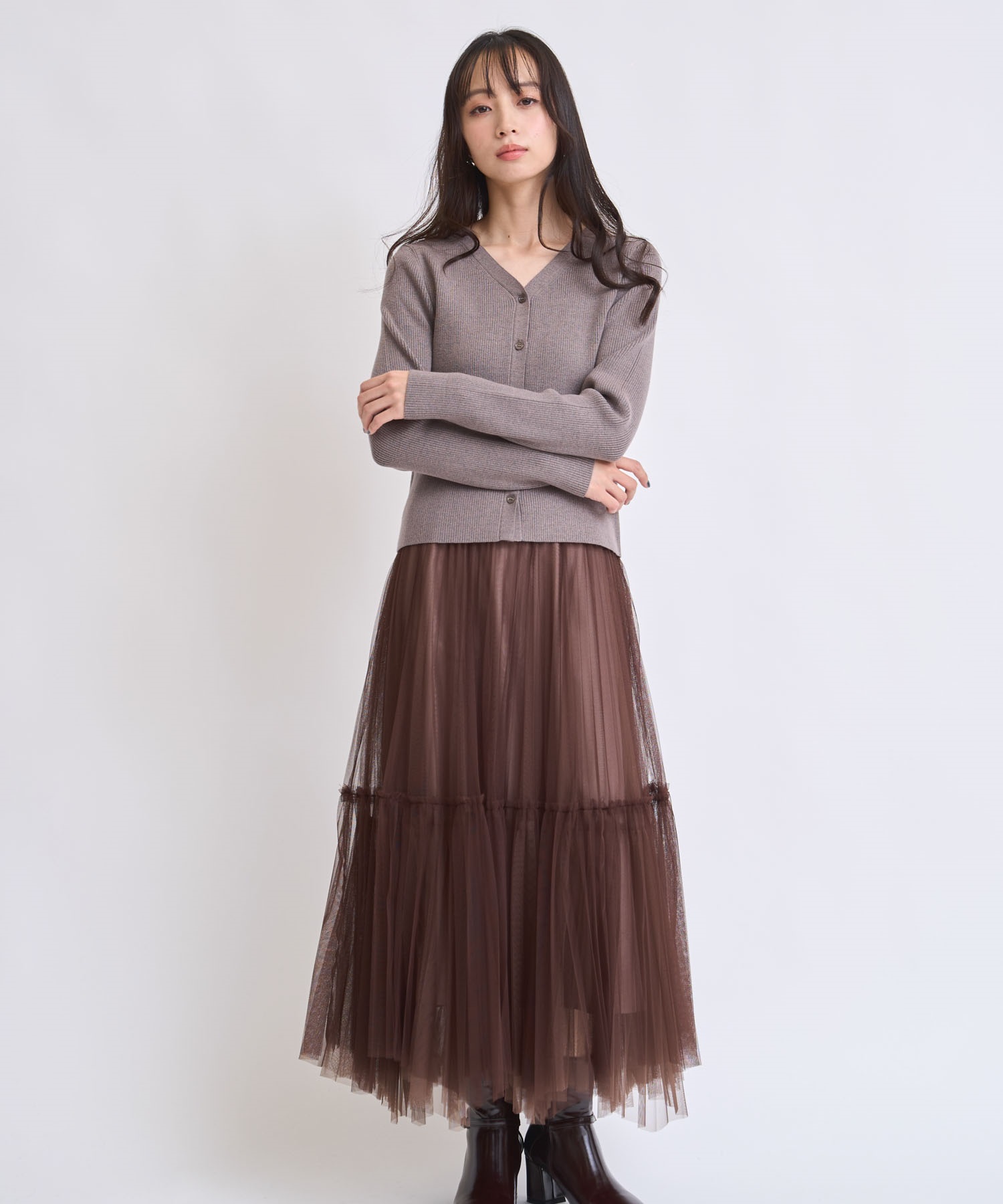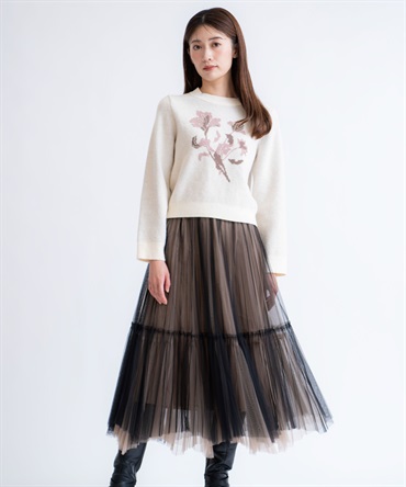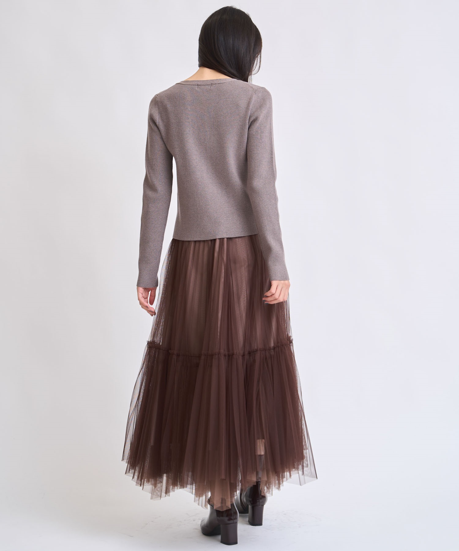 カラーの異なるチュールを2枚重ねた、軽やかなイレヘムデザインのスカート。