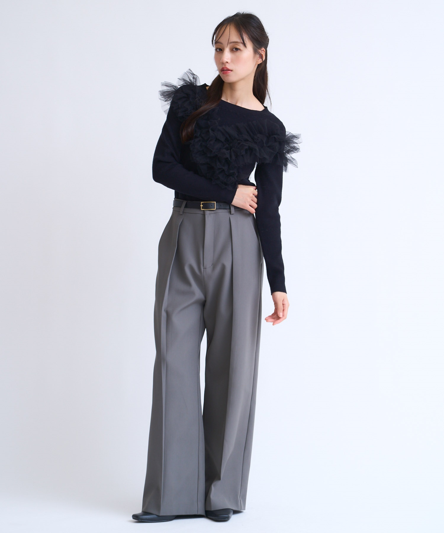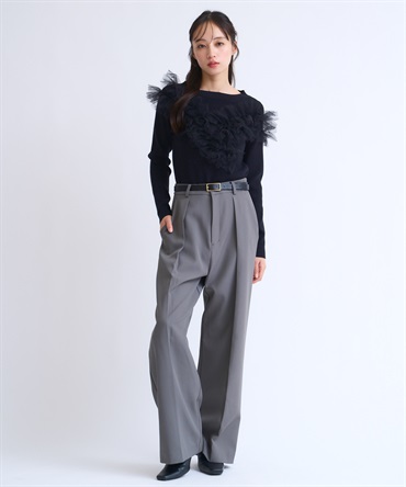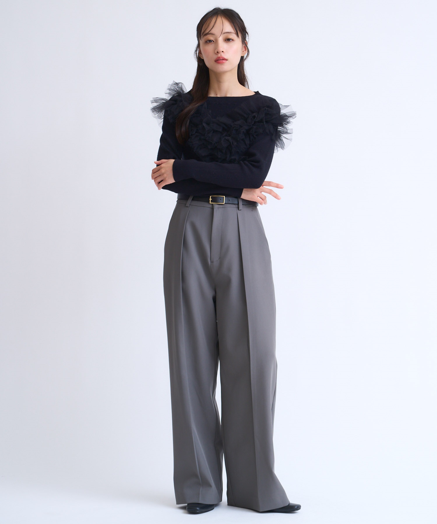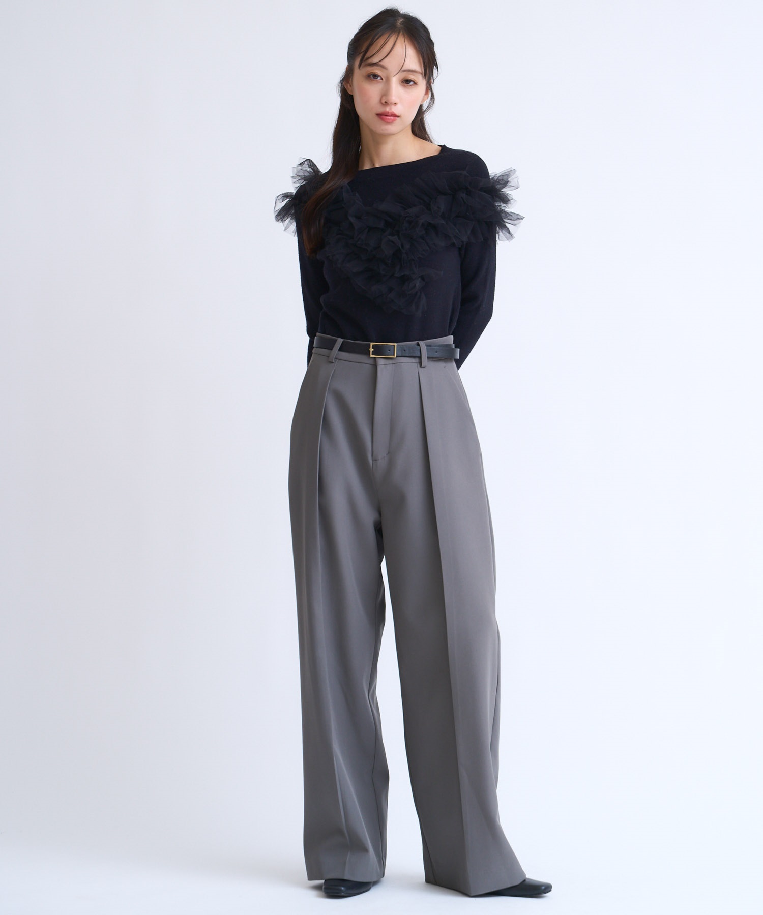 • デザインベルト付きストレートパンツ(10チャコールグレー-S)
