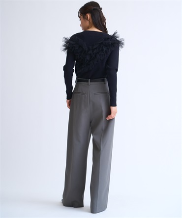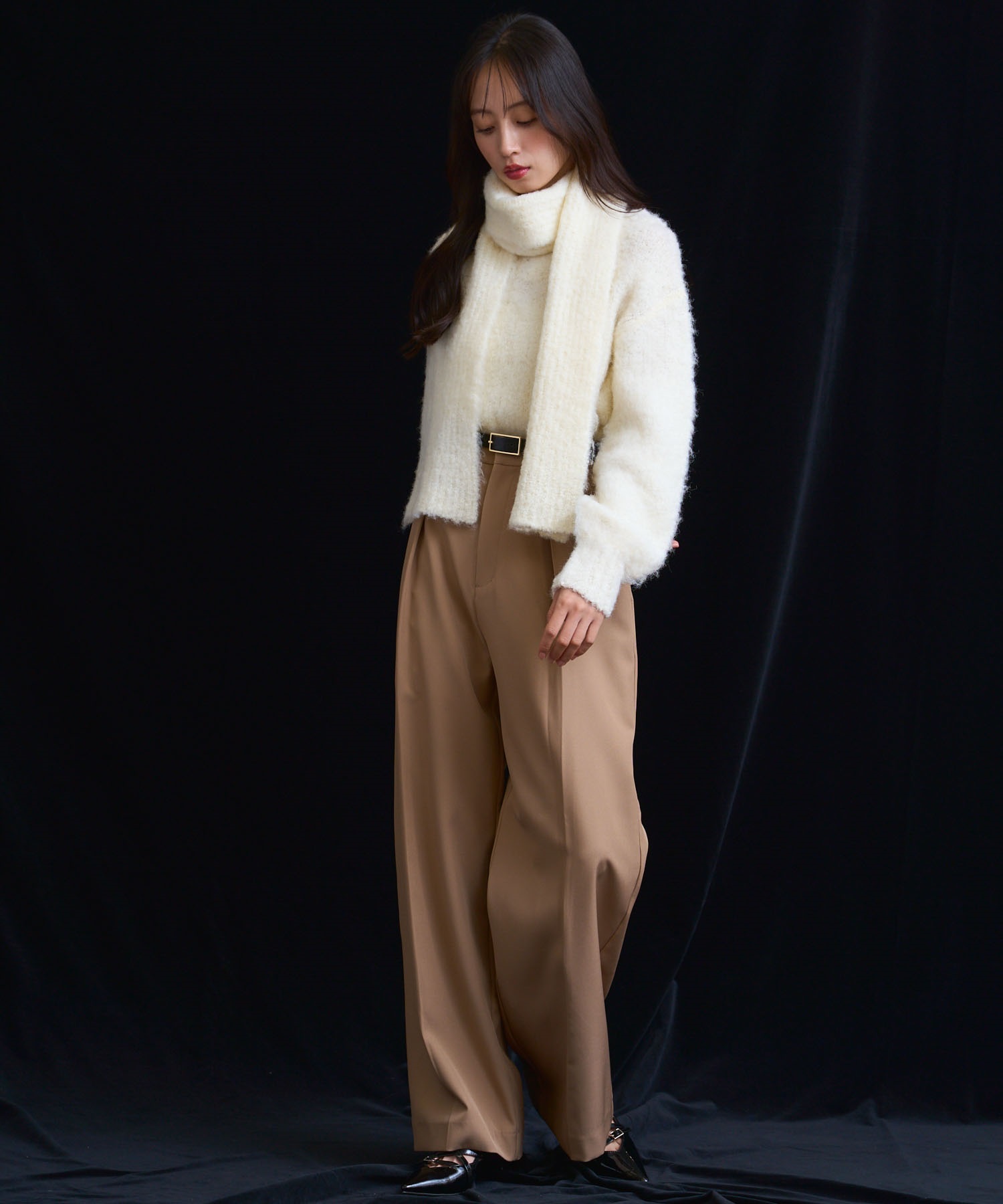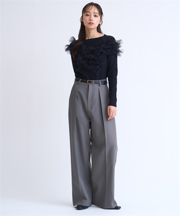 配色の合皮ベルトがアクセントのストレートパンツ。