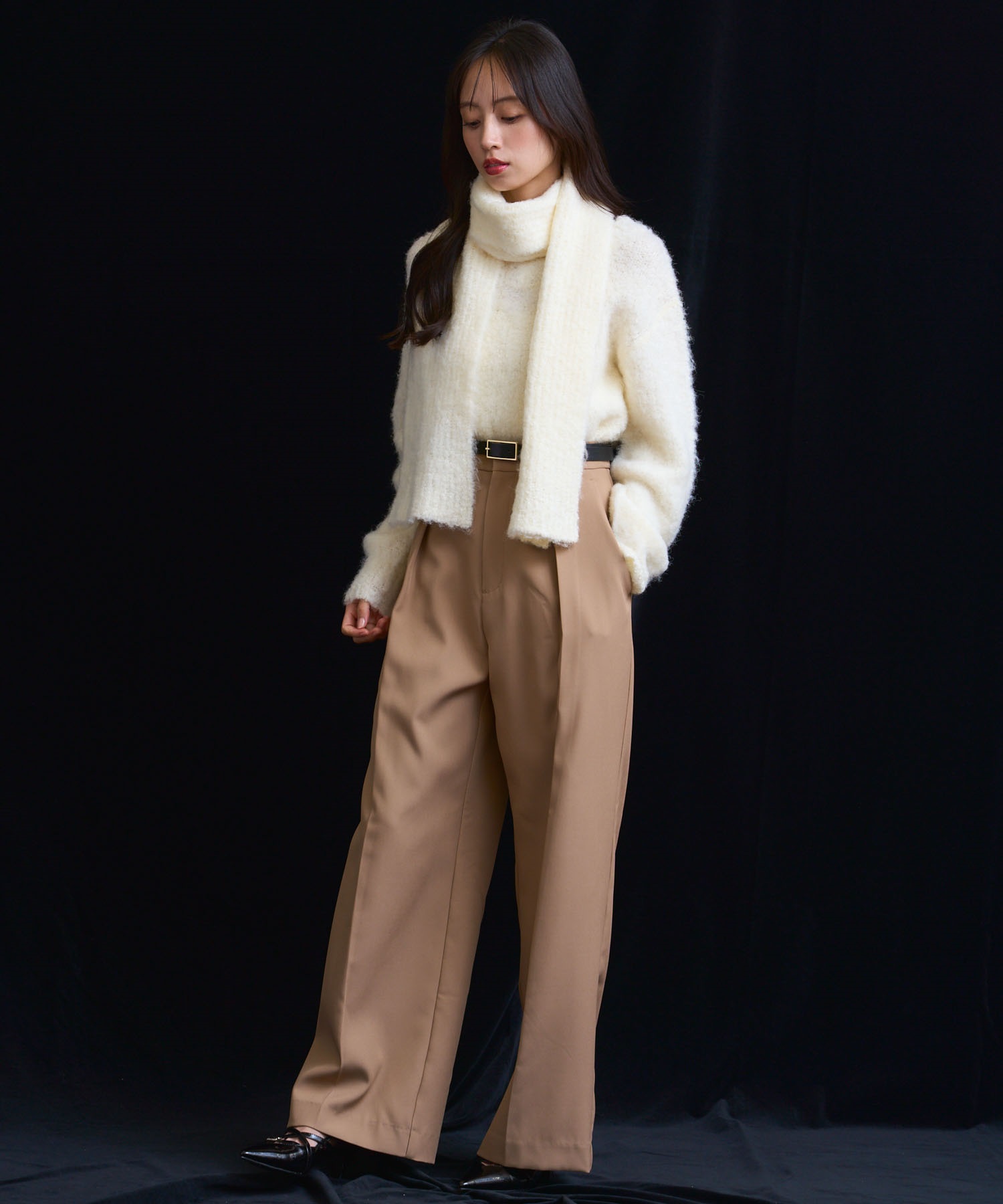 • デザインベルト付きストレートパンツ(82ベージュ-S)