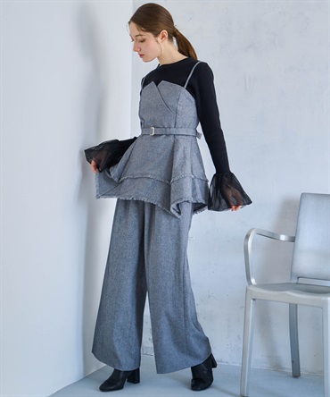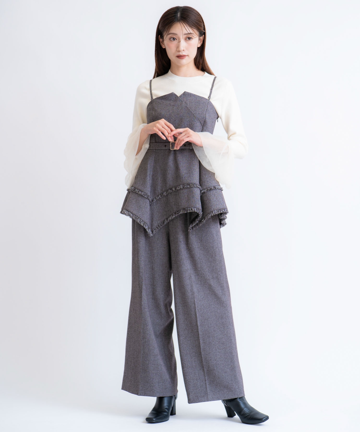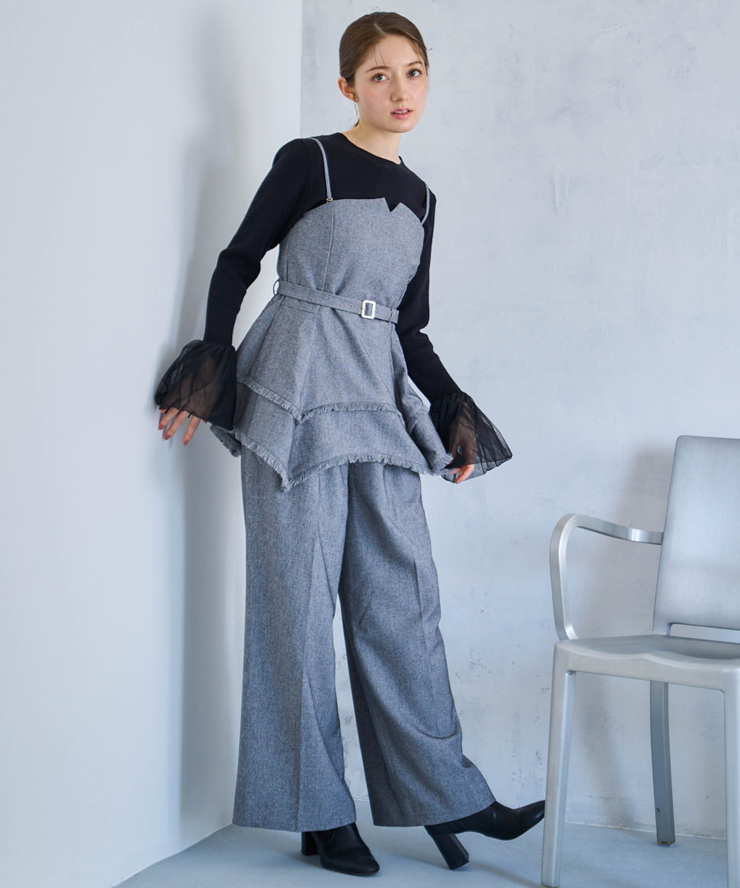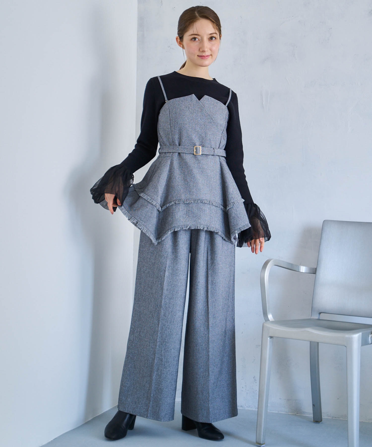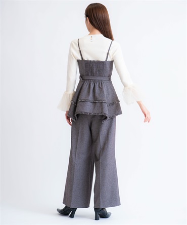 共地のツイードビスチェ(品番:5561111)と合わせてセットアップ風にも着ることができます。