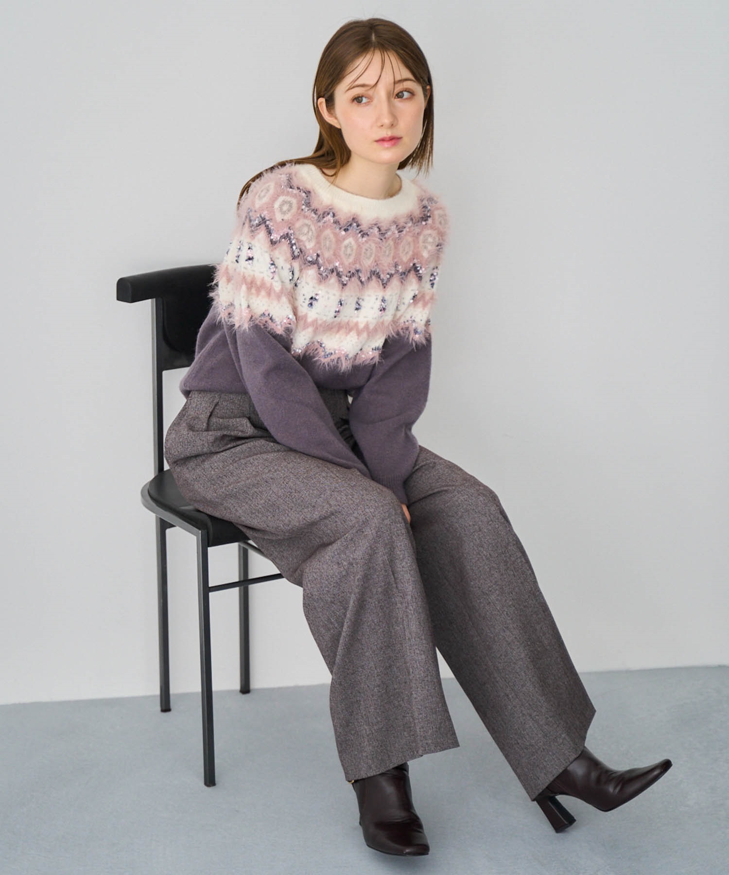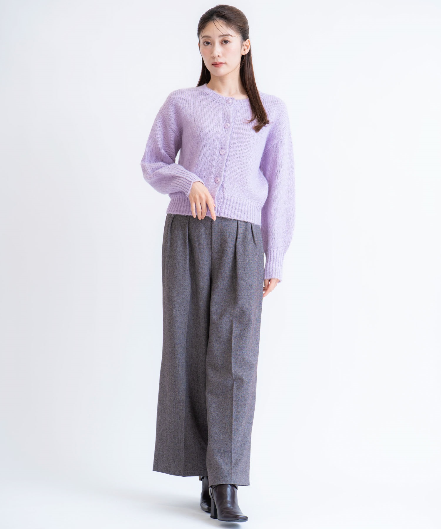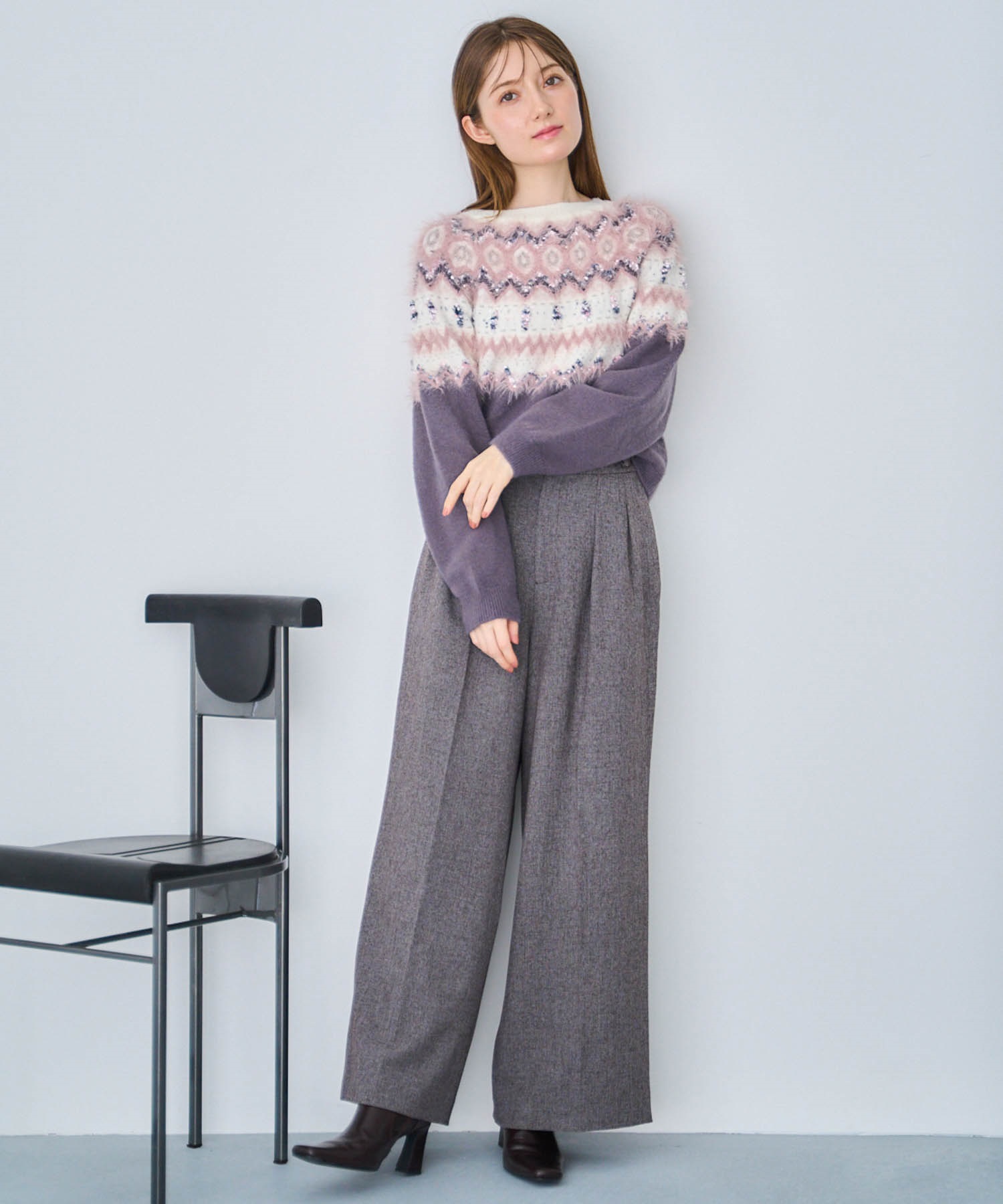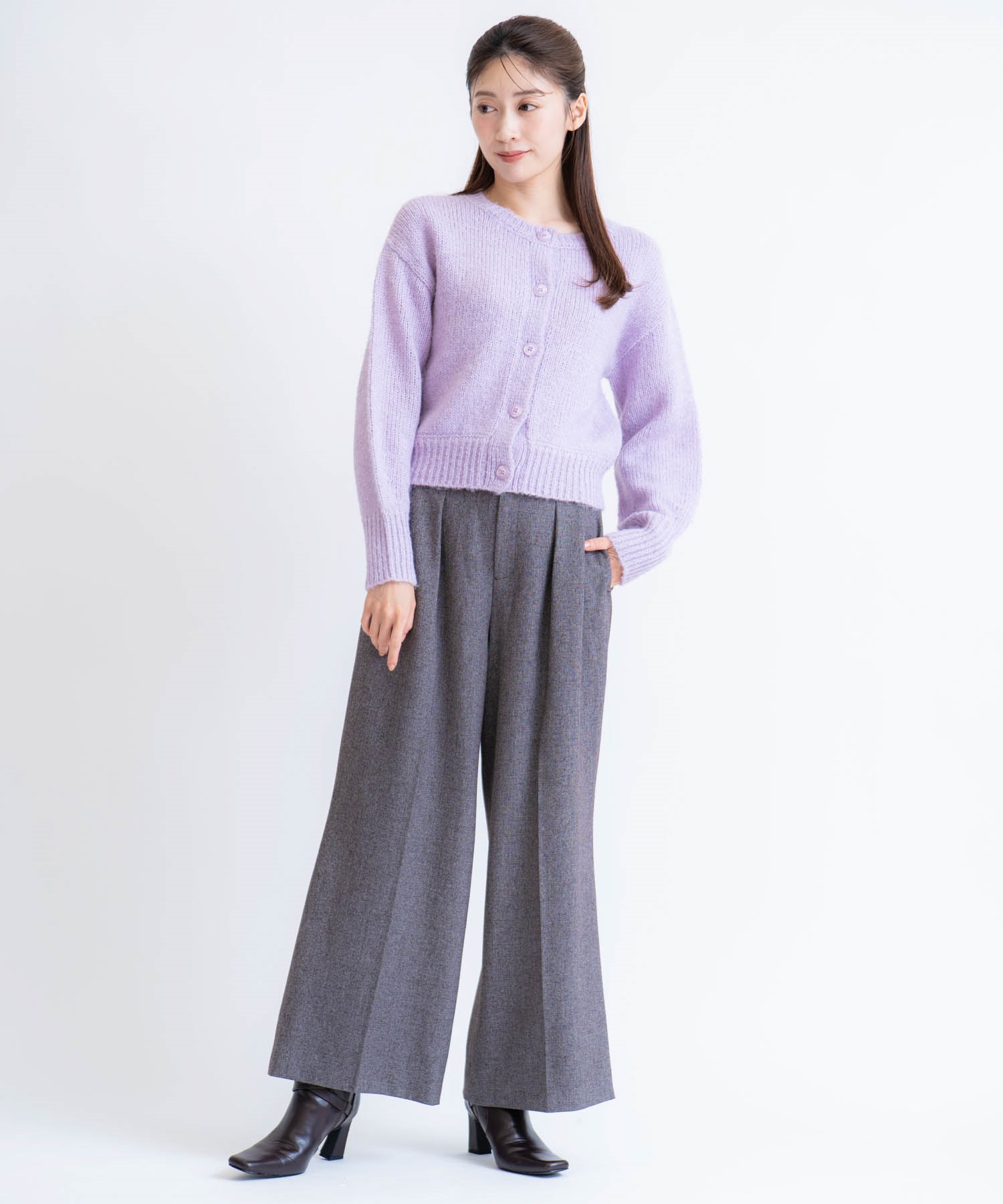 上品なツイード素材を使用した、2タック入りのワイドパンツ。