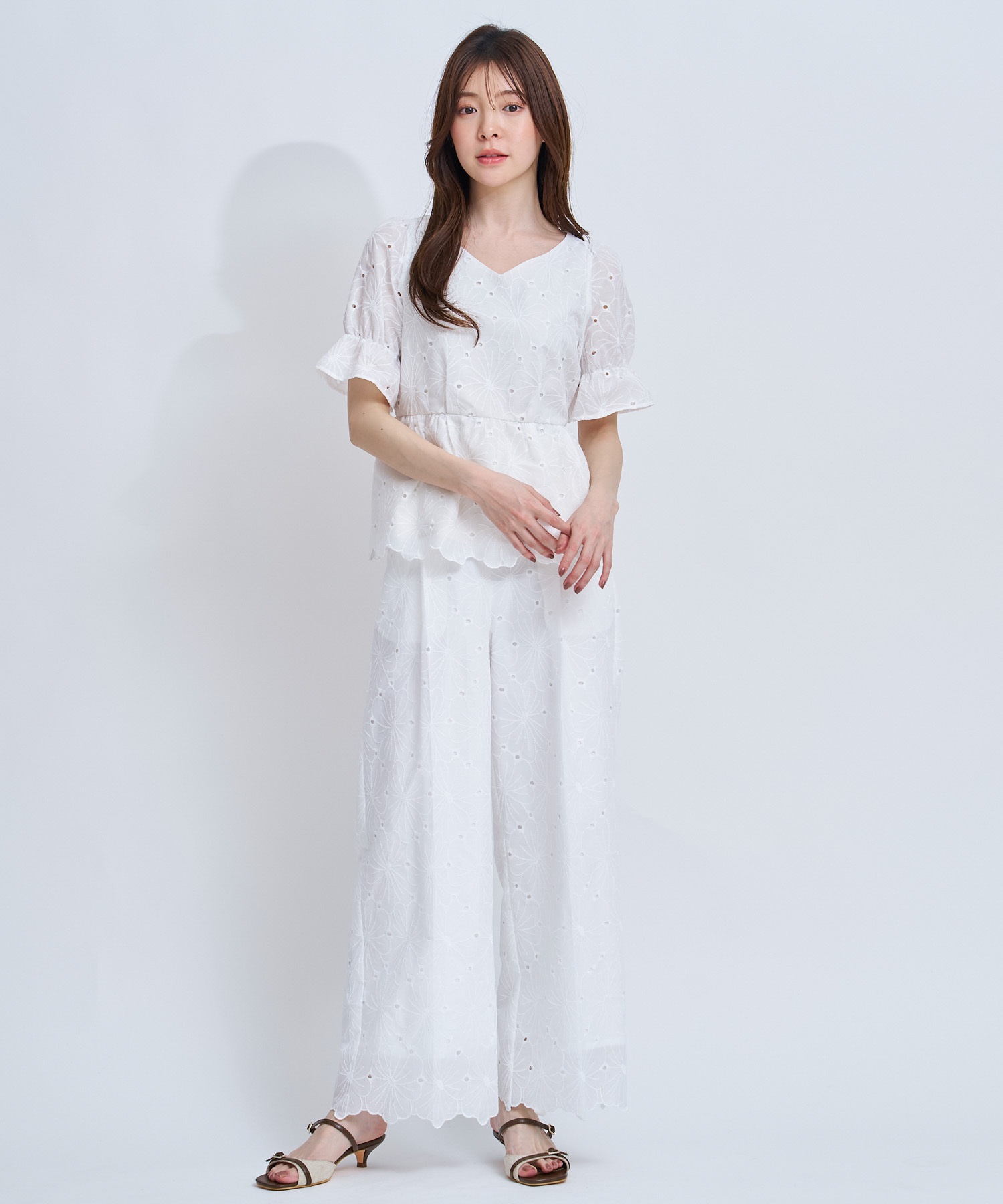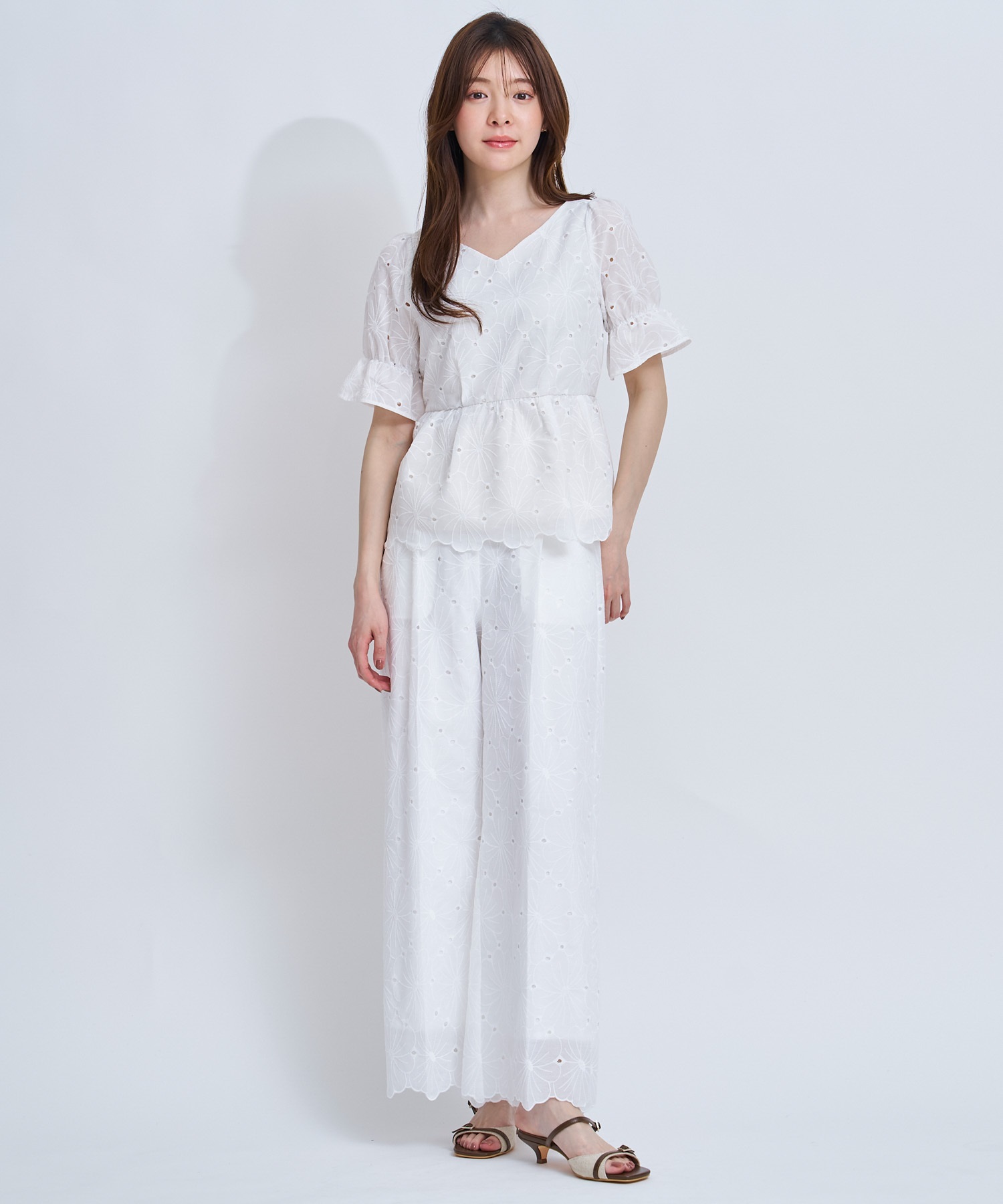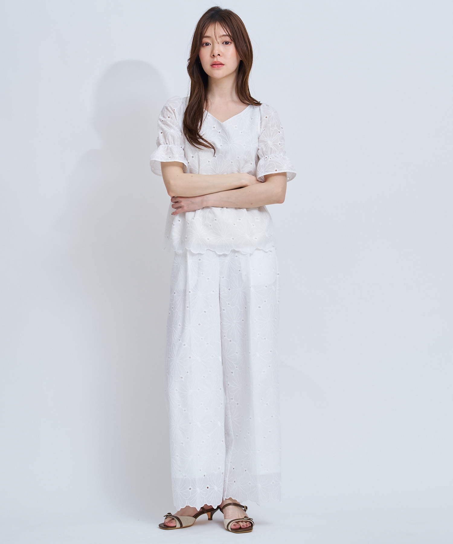 • 【予約】フラワー刺繍パンツ(01オフホワイト-S-4月下旬ごろのお届け)