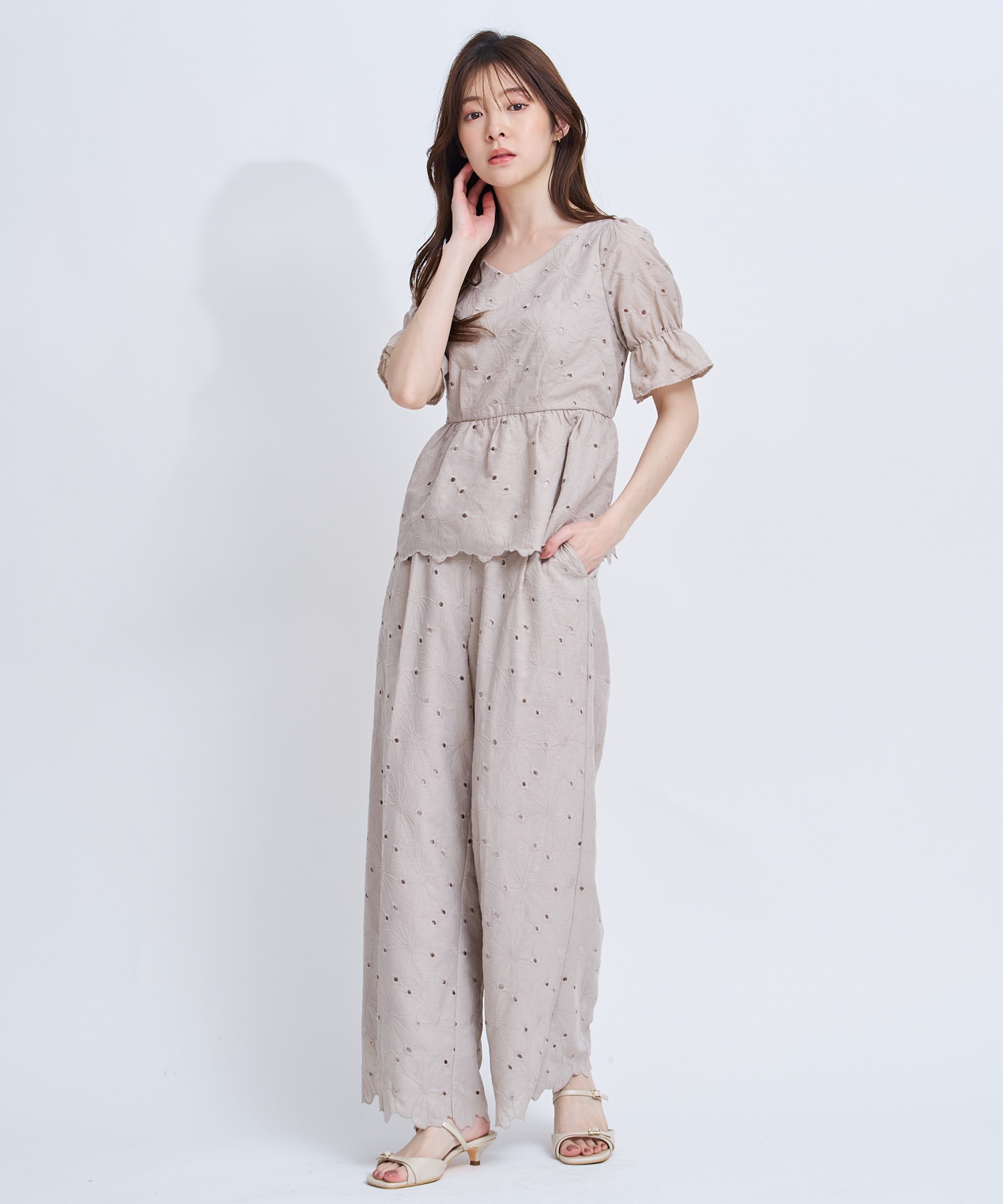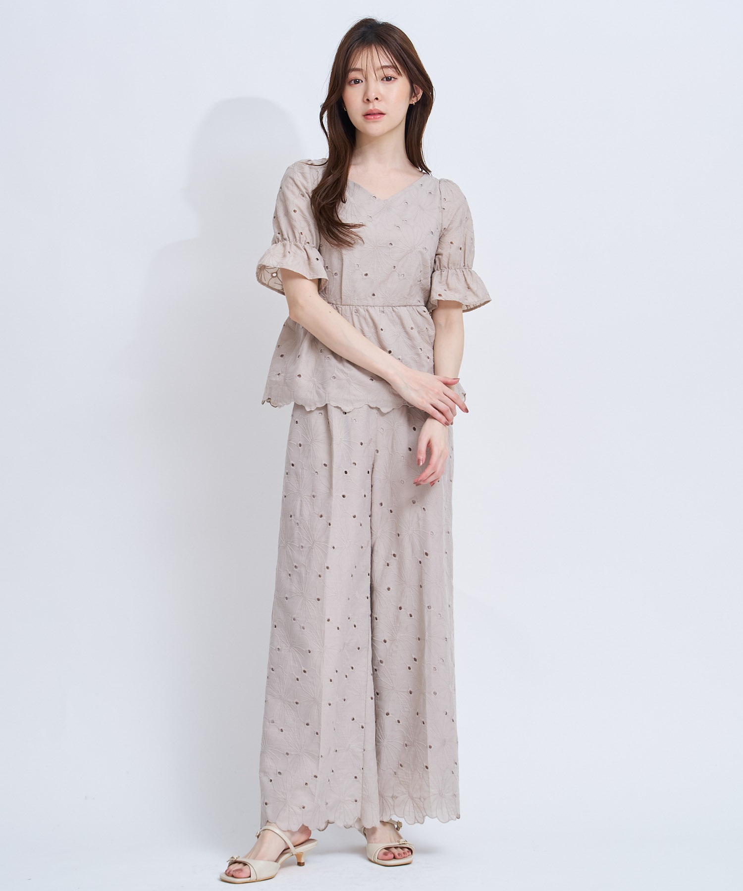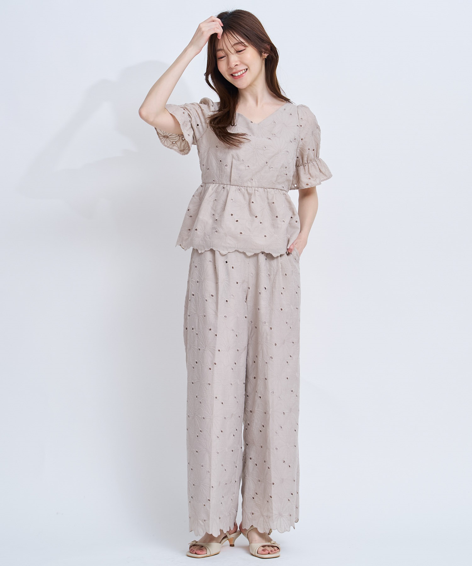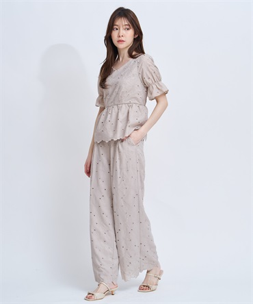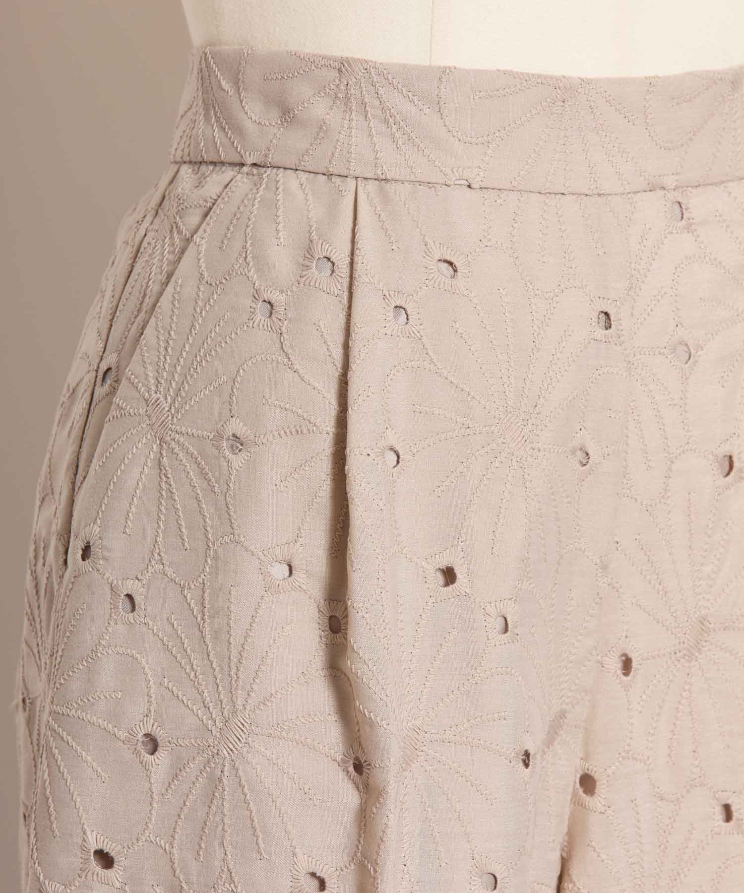 • 【予約】フラワー刺繍パンツ(82ベージュ-S-4月下旬ごろのお届け)
