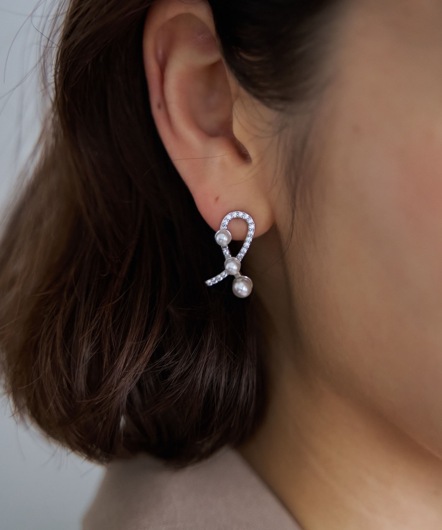 • ツイストデザインパールピアス(13シルバー-フリー)