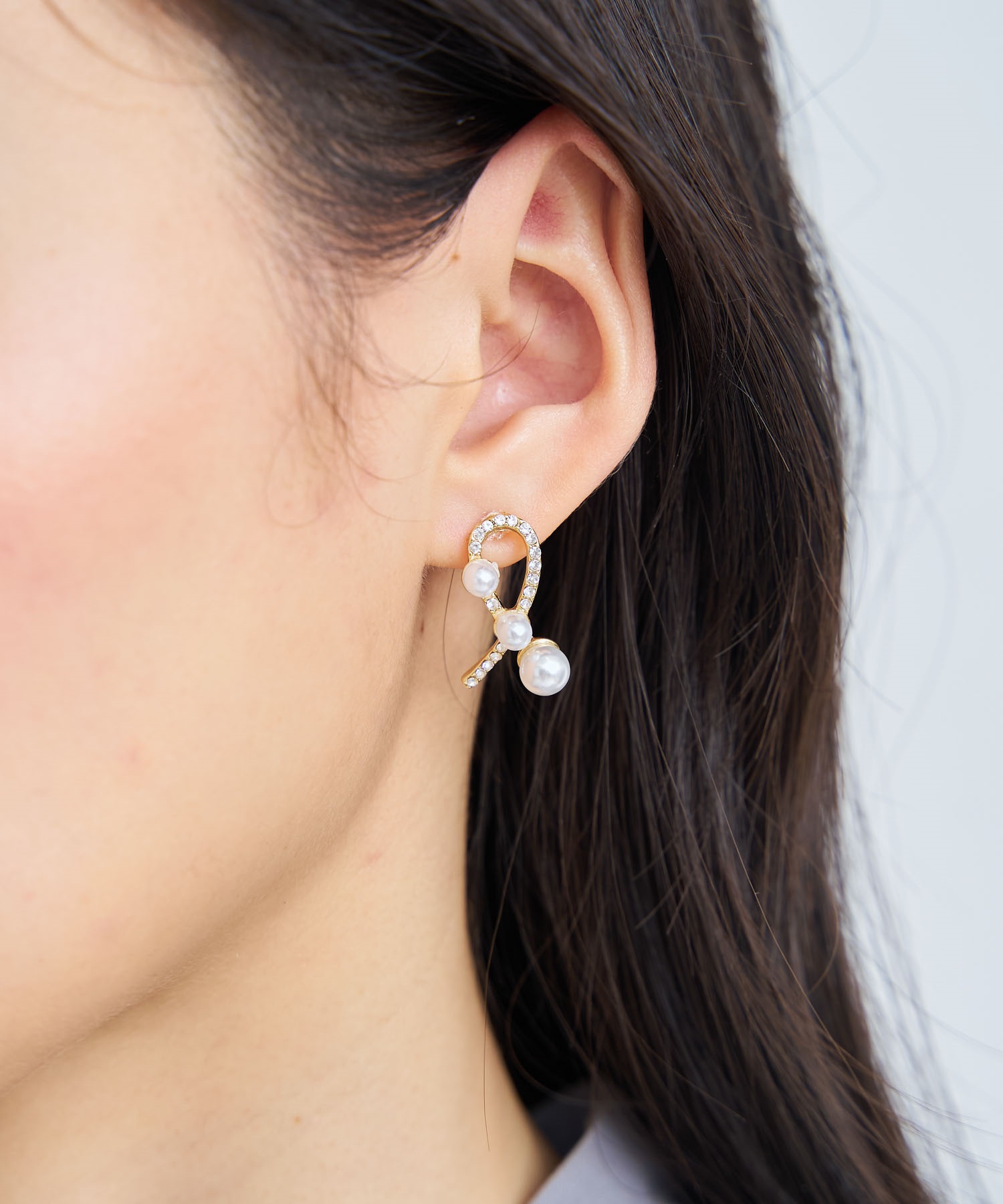 • ツイストデザインパールピアス(50ゴールド-フリー)