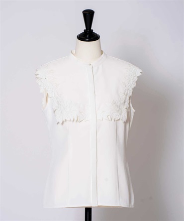 目を惹く大きめなセーラーカラーに、オリジナルの花柄刺繍を施したブラウス。