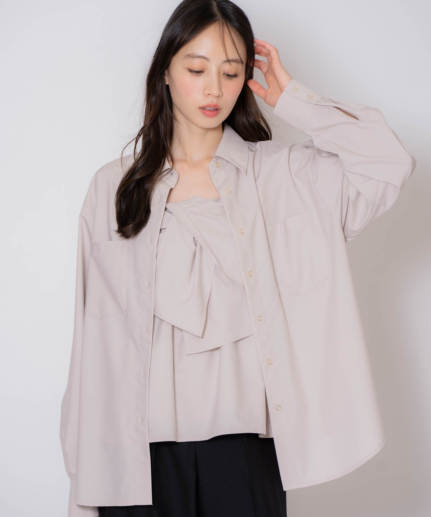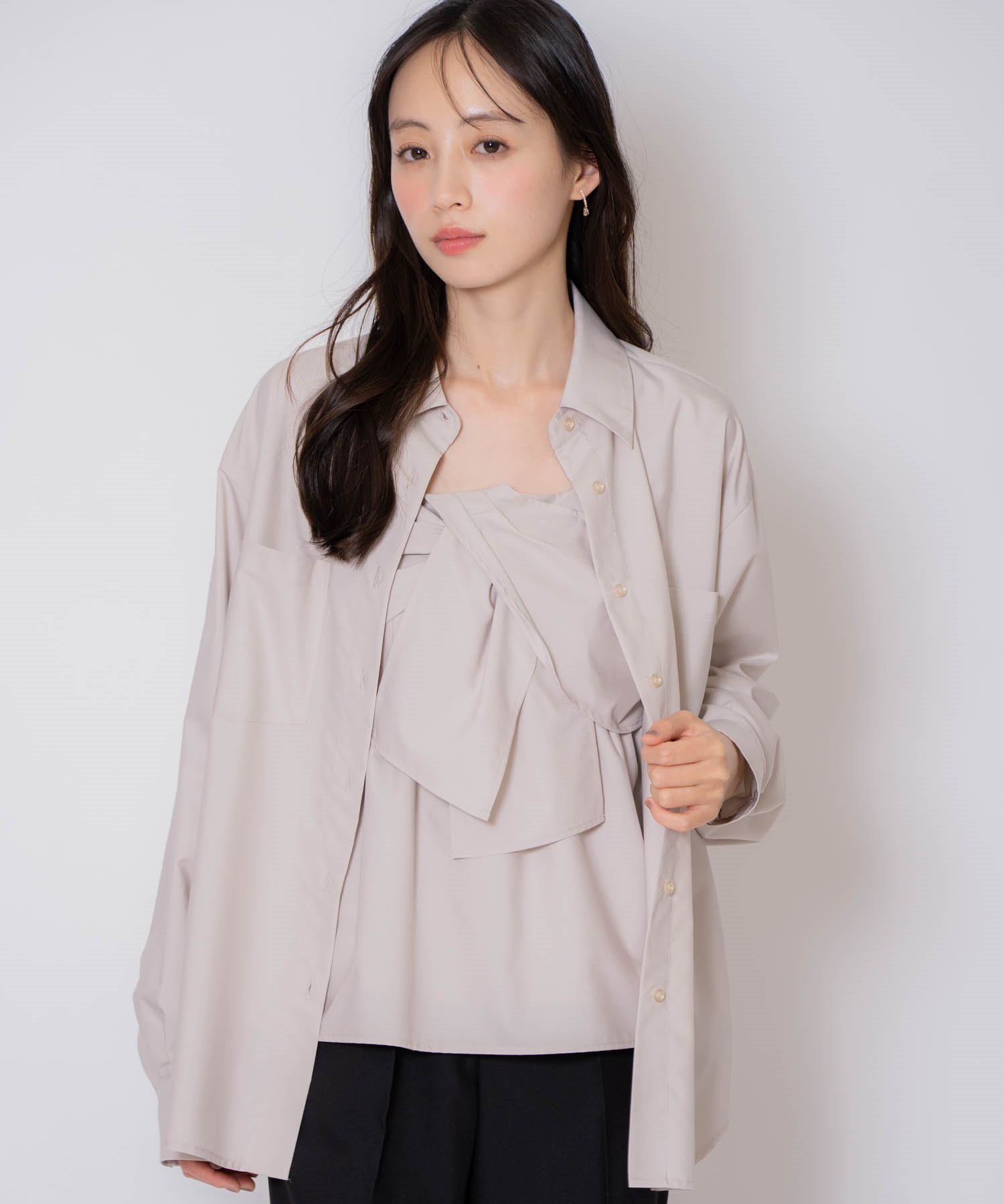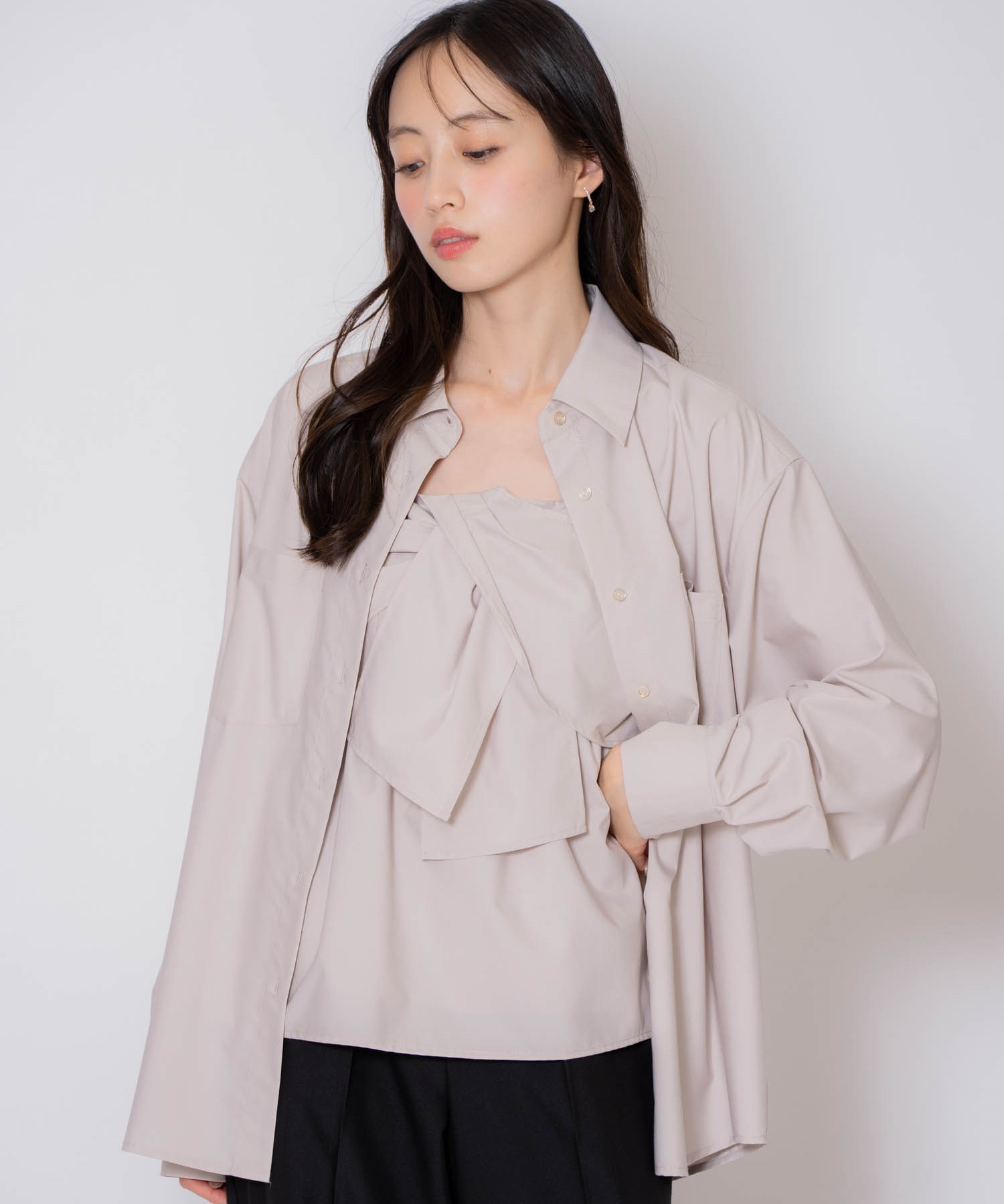 アソートビスチェキャミ(品番:5551183)と同素材の生地のシャツ。