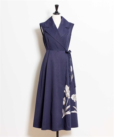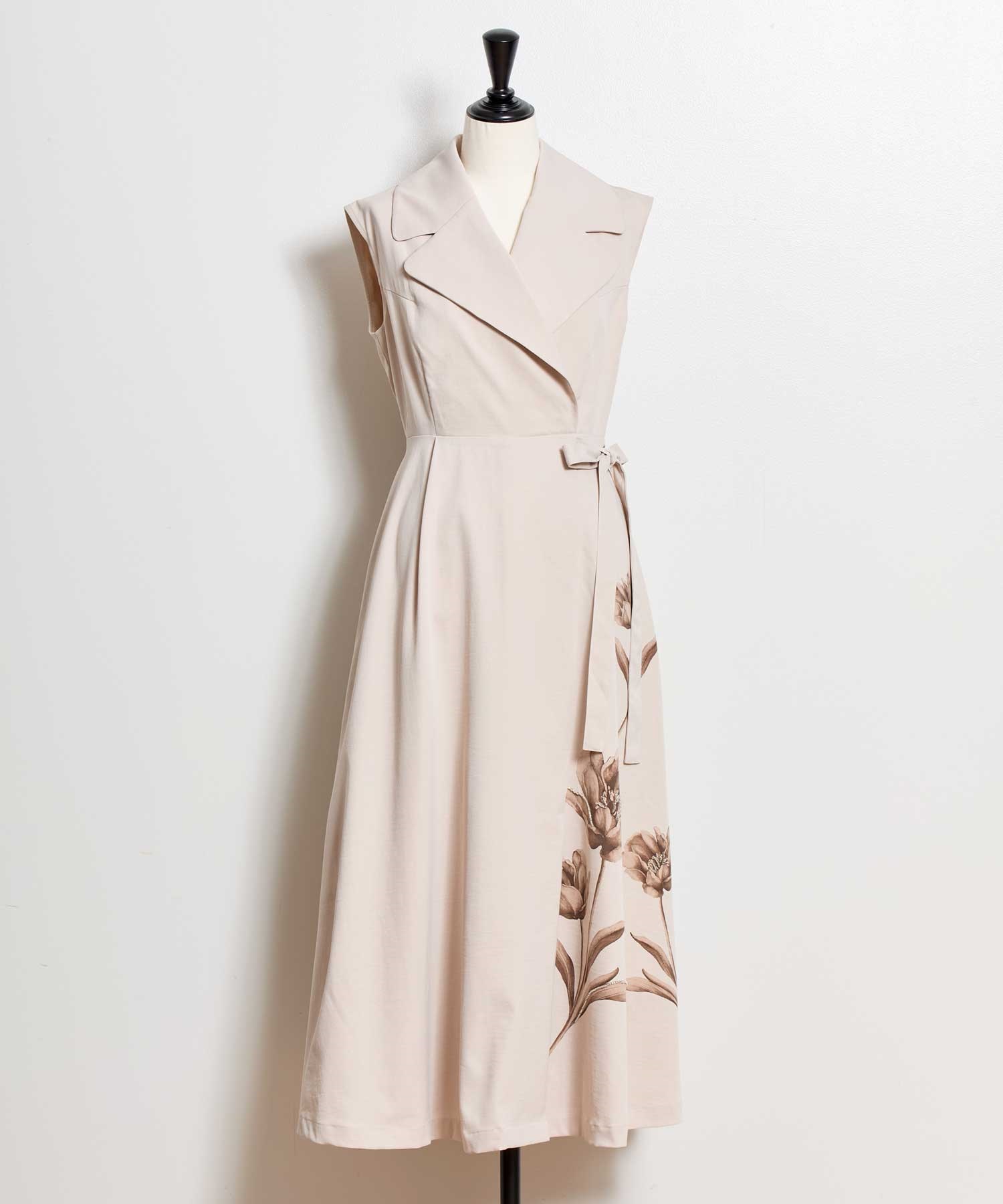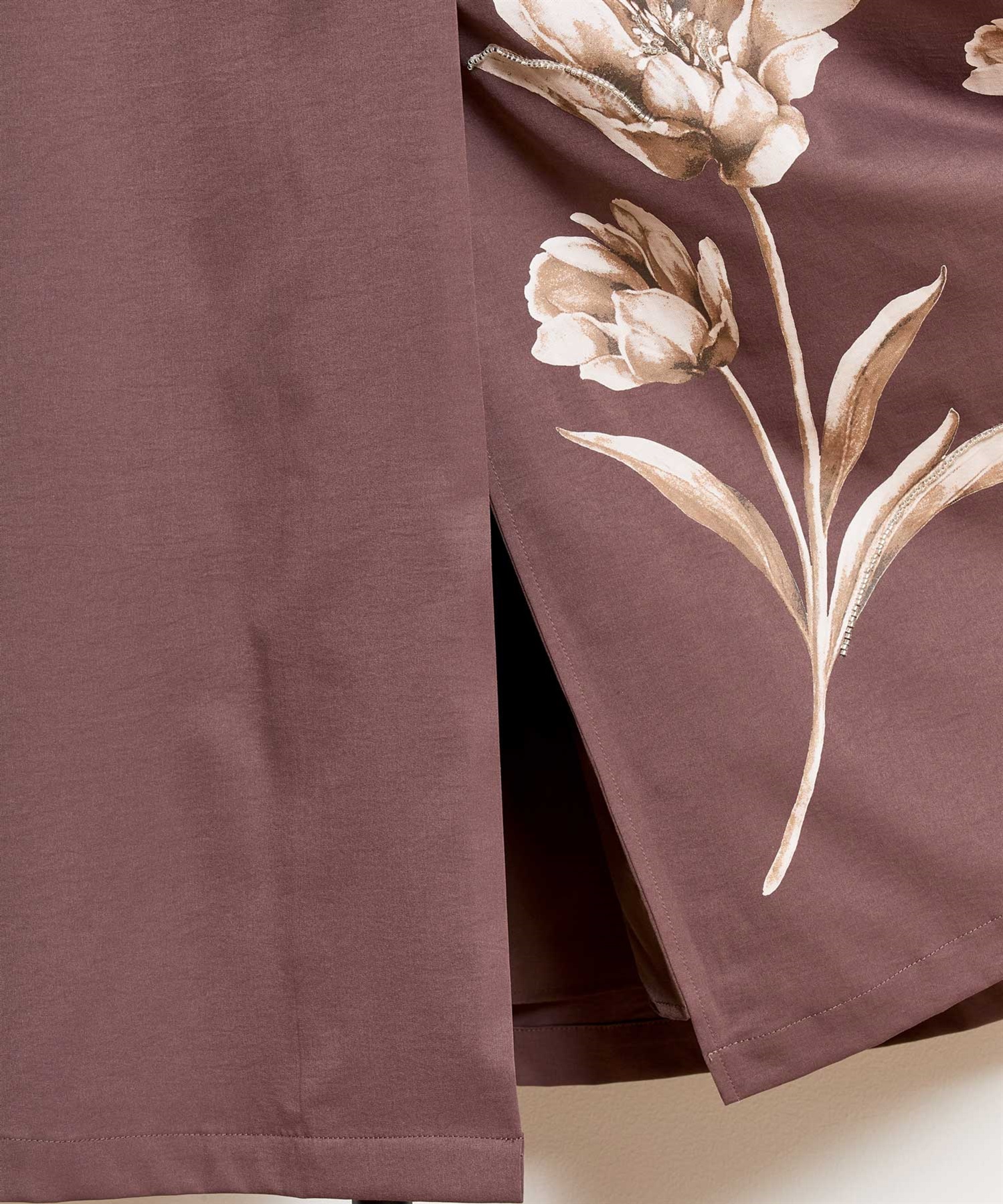 ラップデザインから歩くたび見え隠れするようにオリジナルの花柄プリントとビーズ刺繍を施したリッチな印象の一着です。