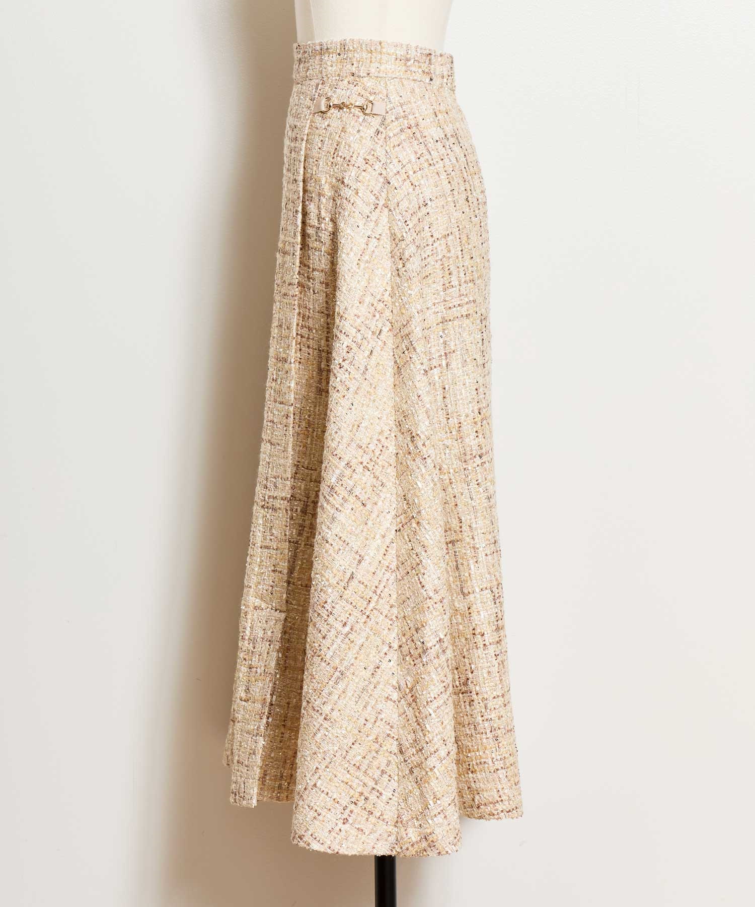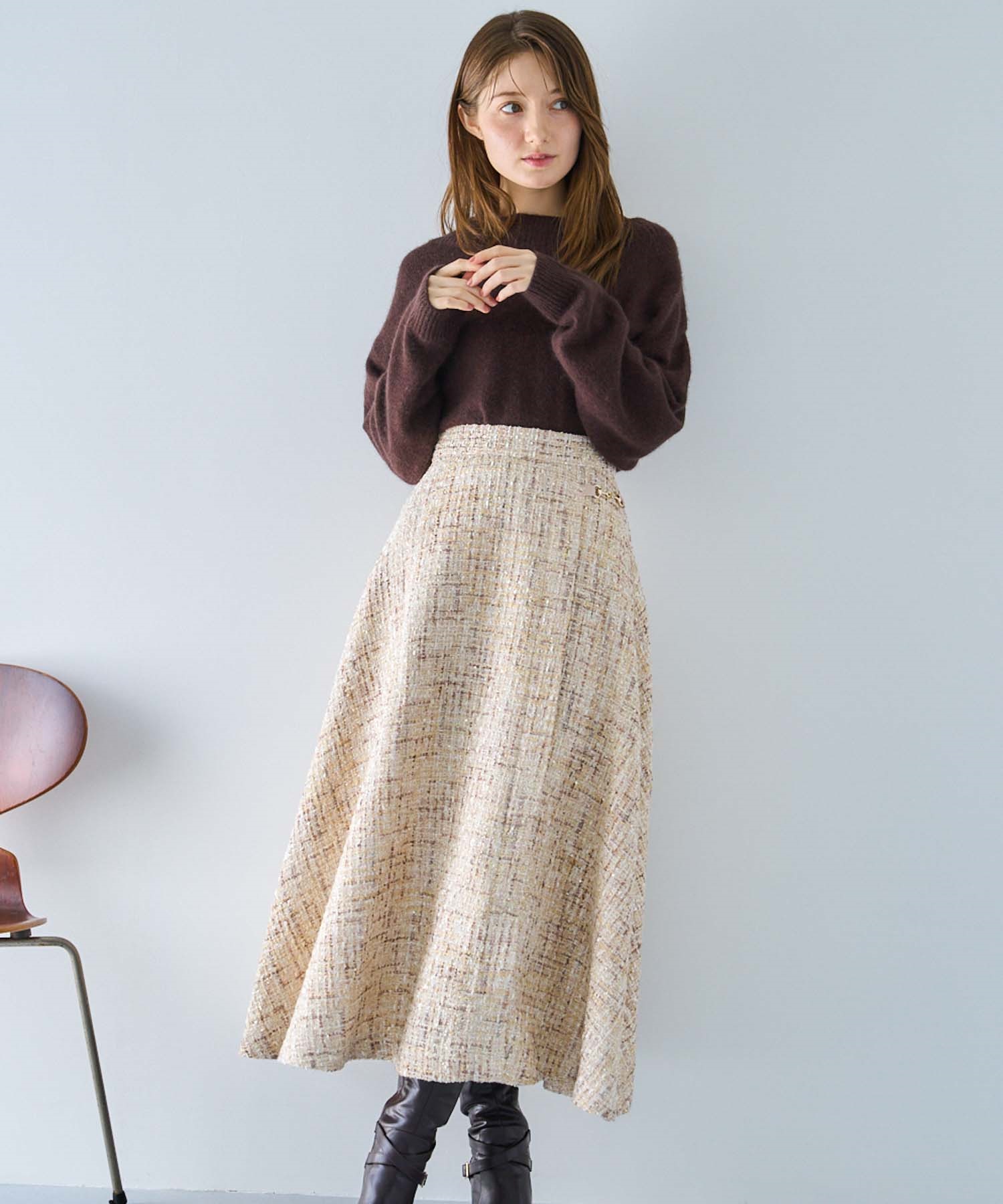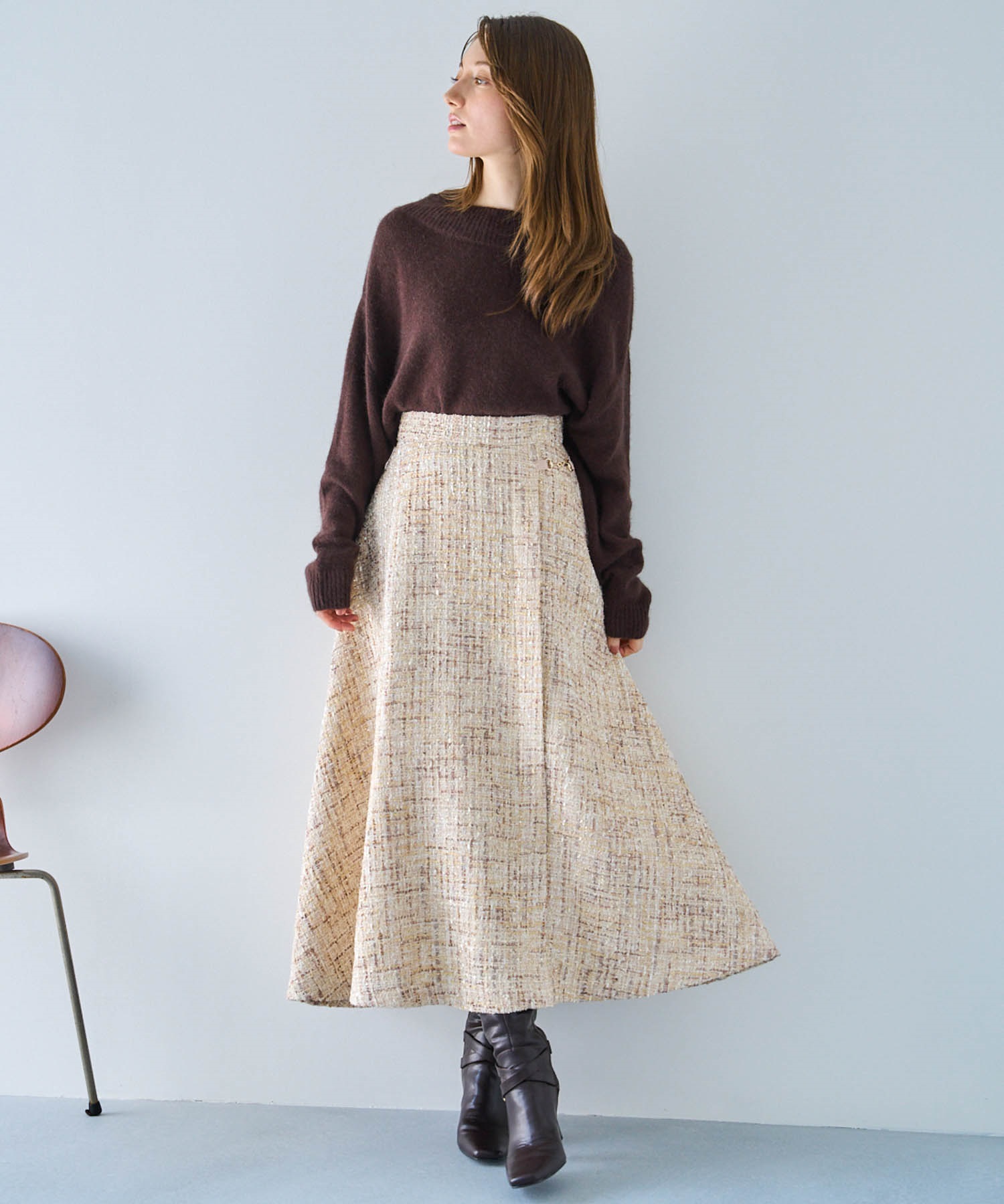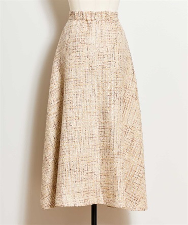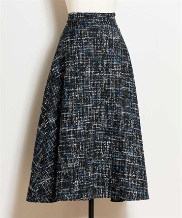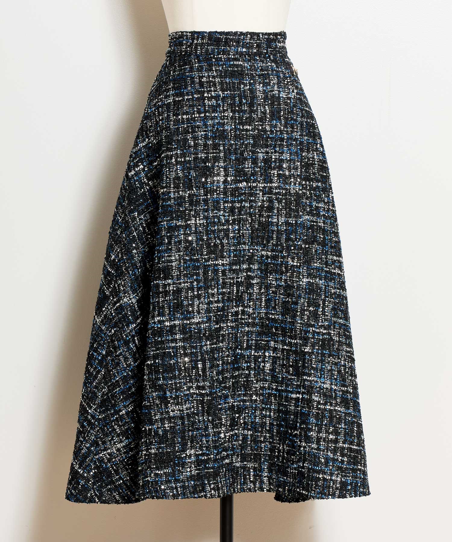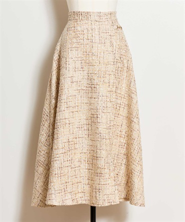 ファンシーツイードを使用した、華やかさのあるフレアスカート。