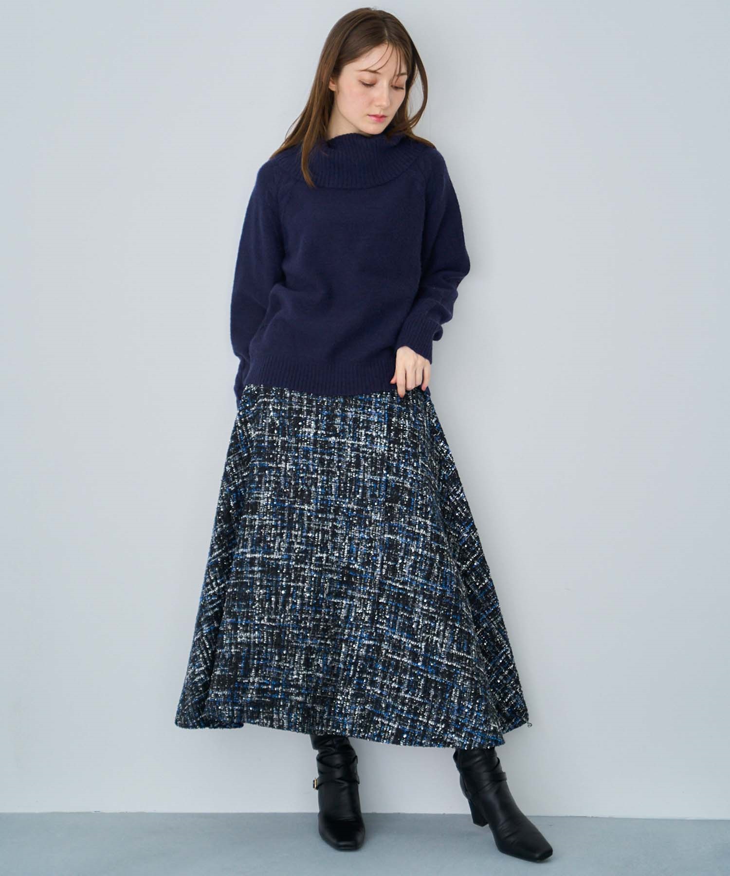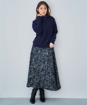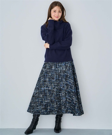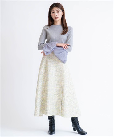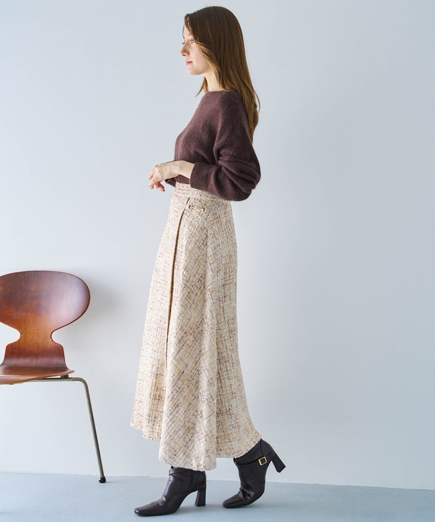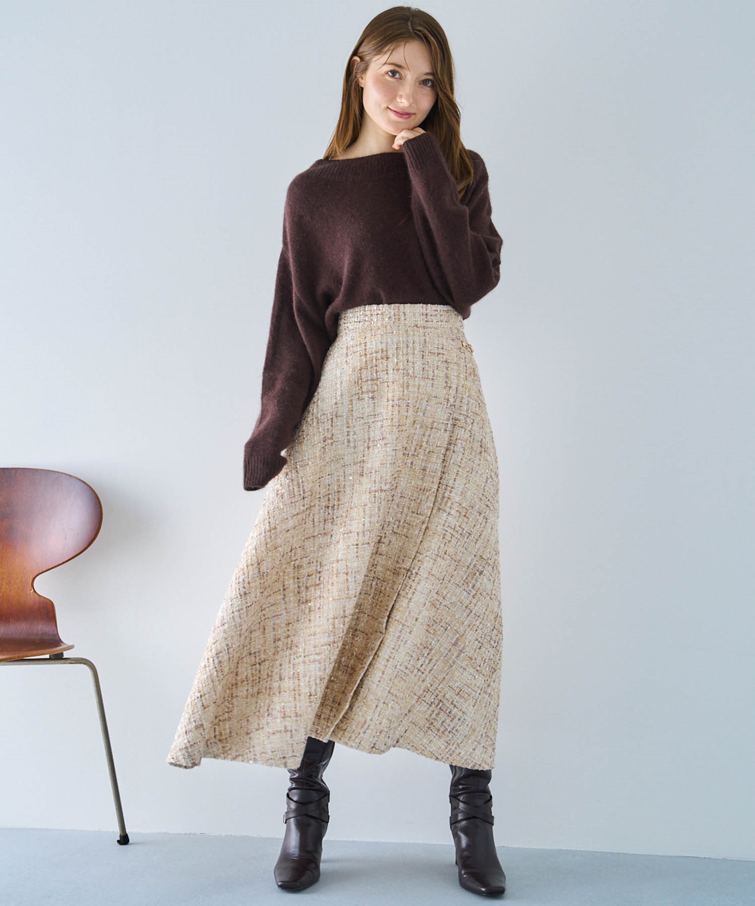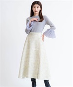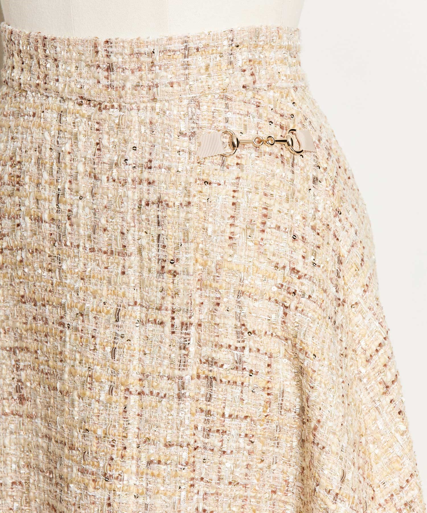 ファンシーツイードを使用した、華やかさのあるフレアスカート。