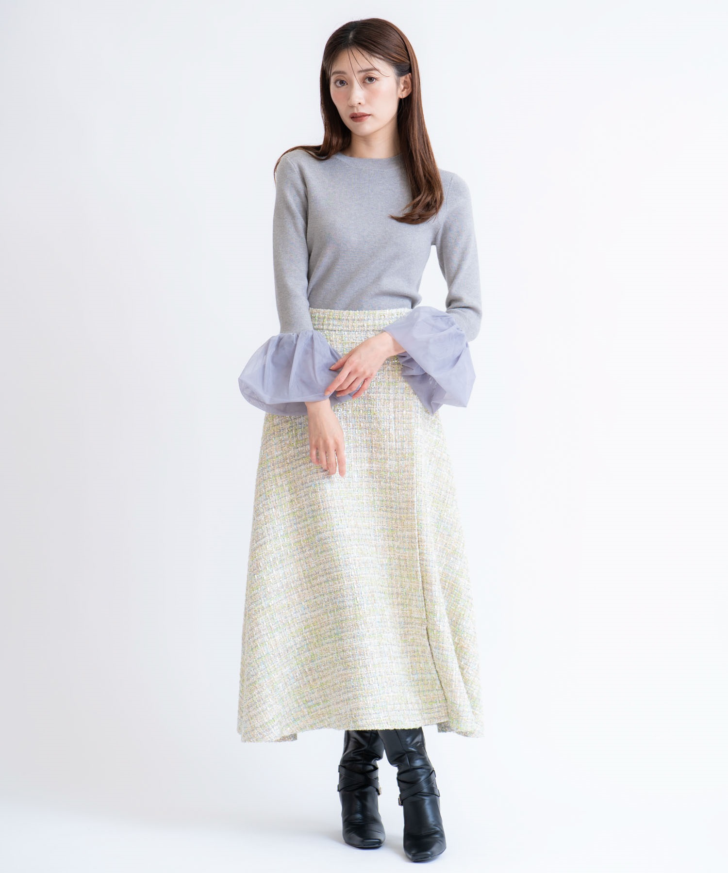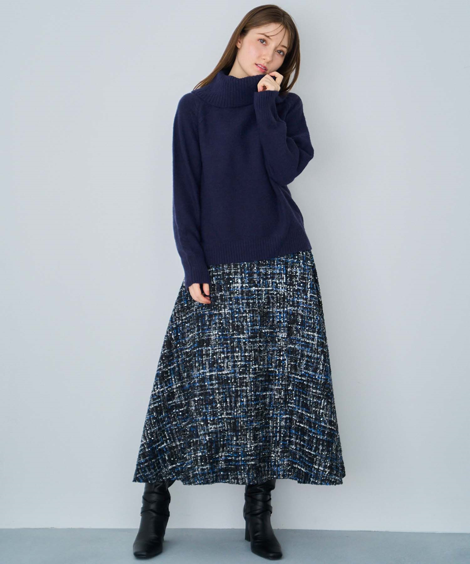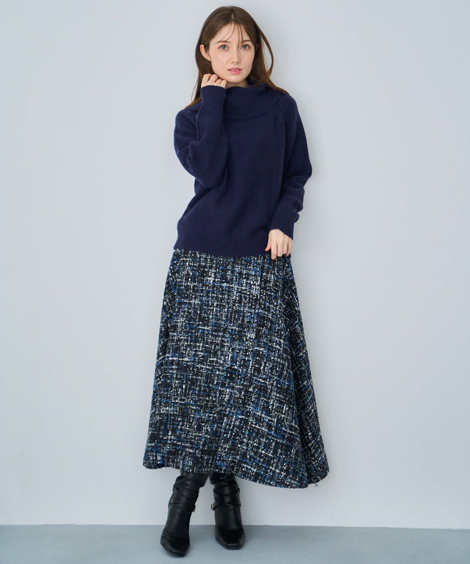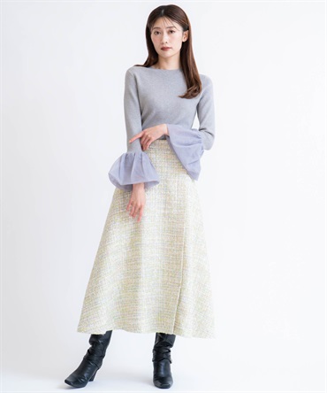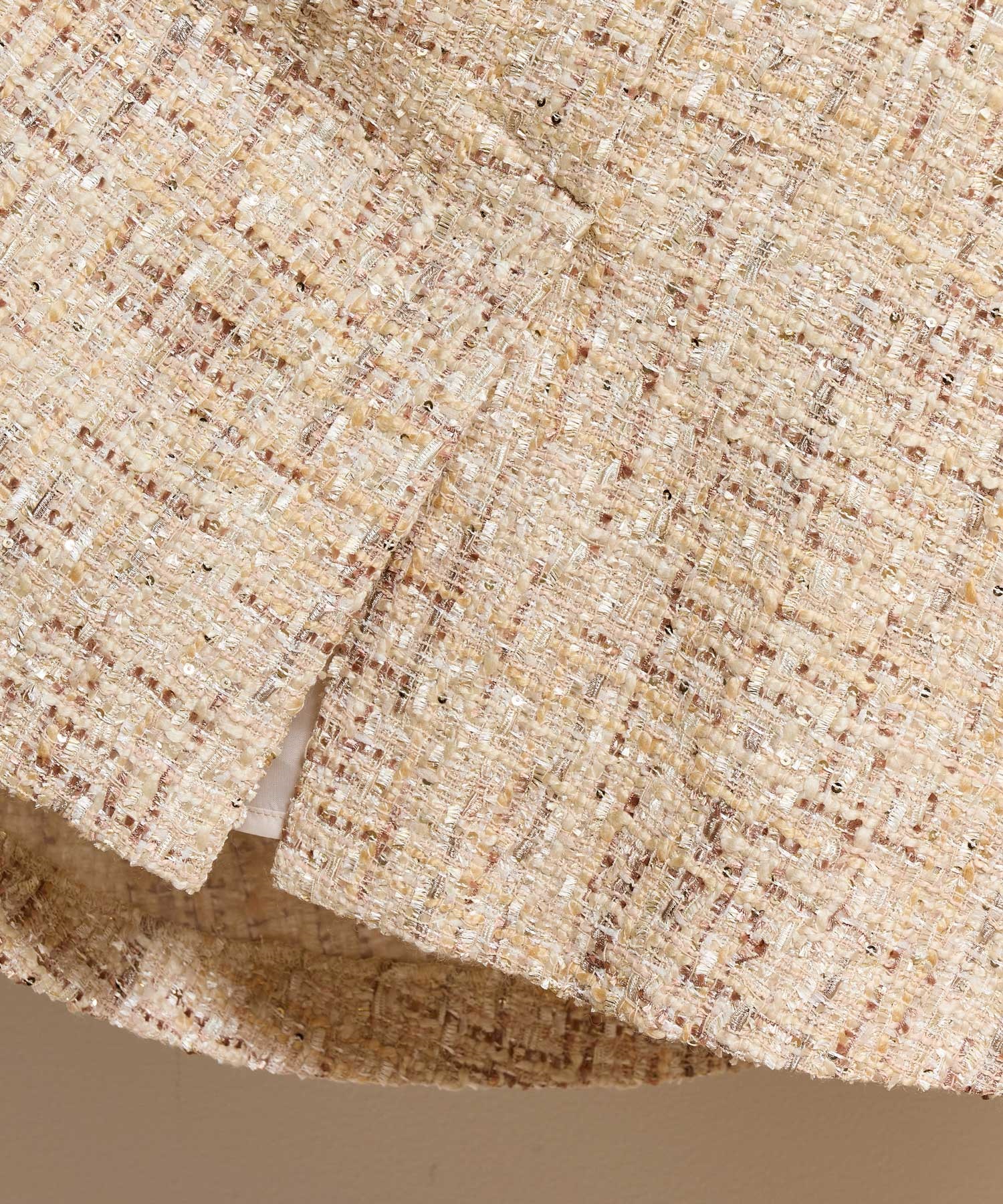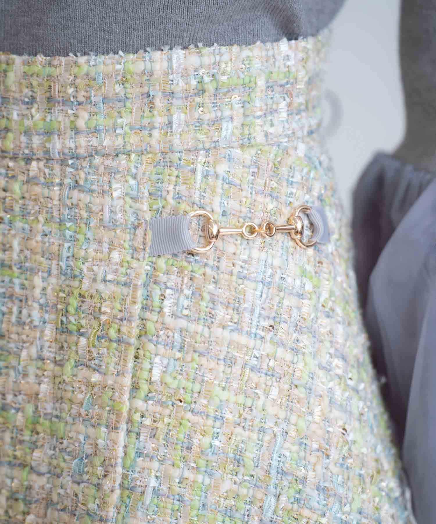 ファンシーツイードを使用した、華やかさのあるフレアスカート。
