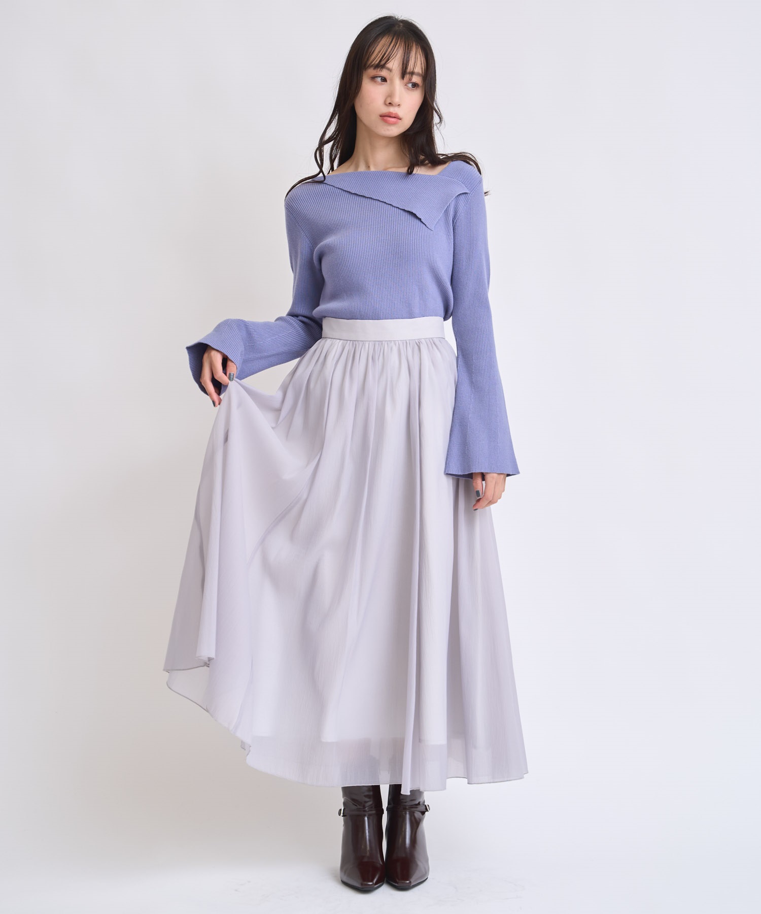 ほんのりとしぼ感があり、表面感のある素材を使用したギャザーフレアスカート。