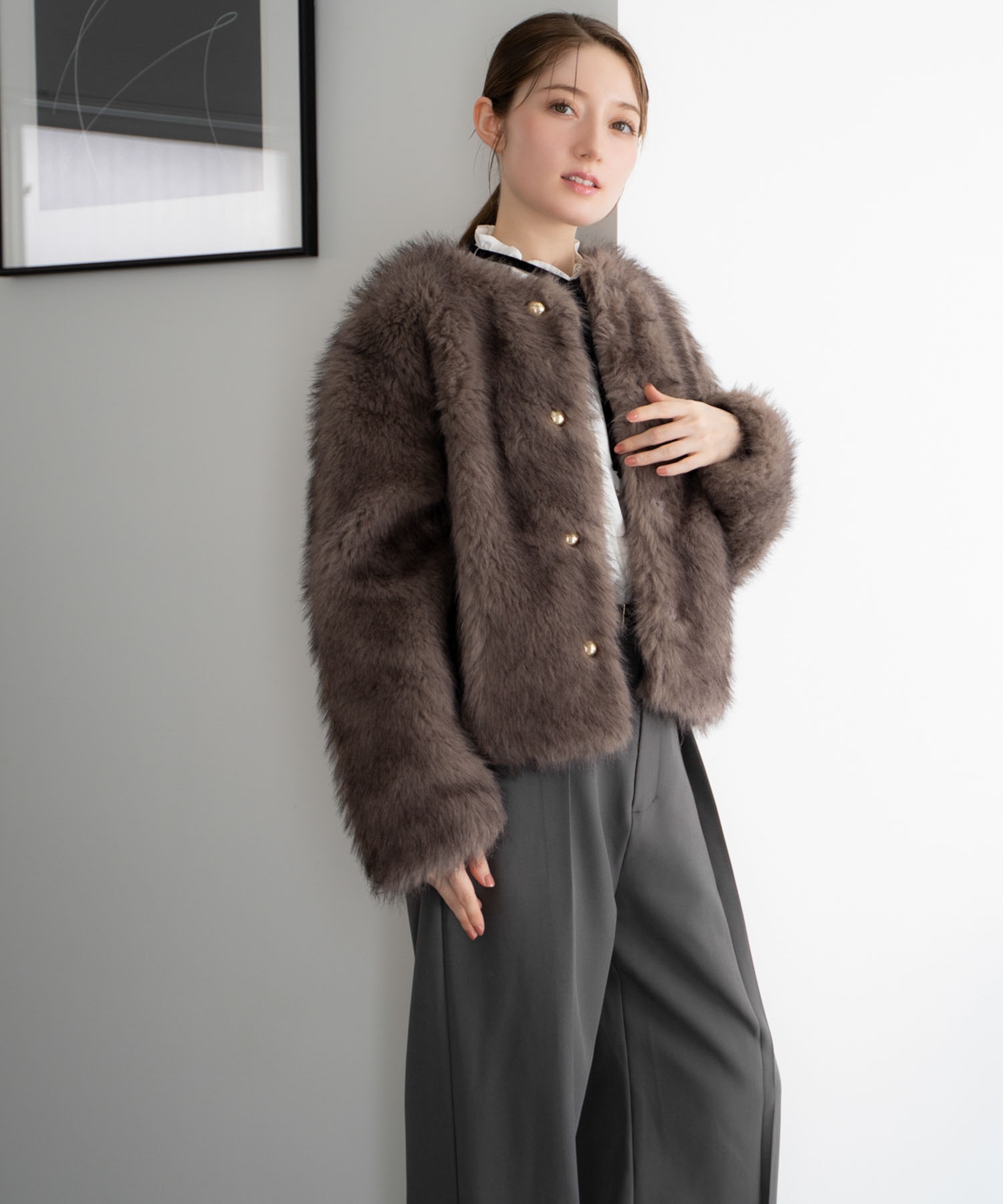毛並みの美しいエコファーを使用した、肌触りなめらかなファーブルゾン。