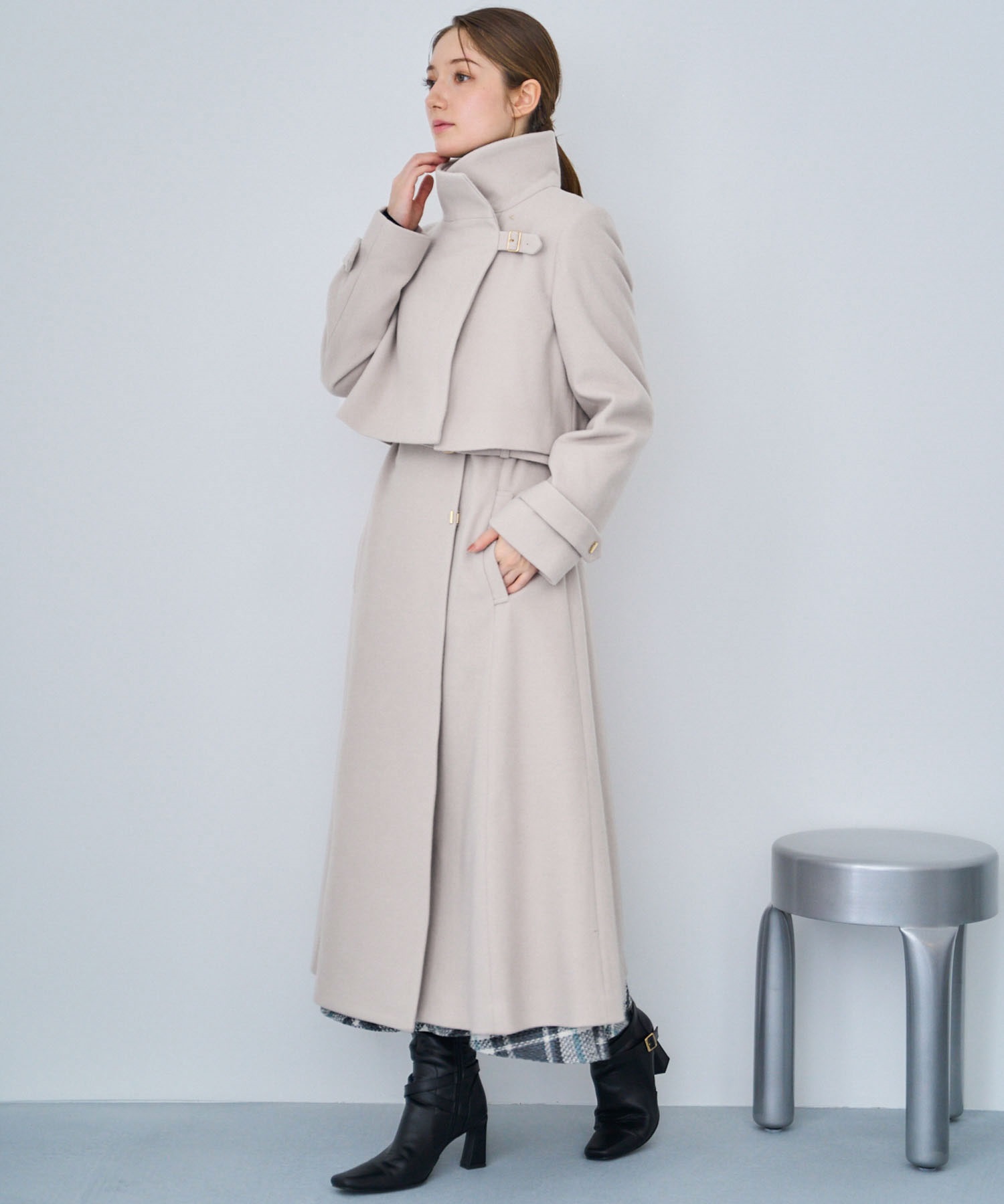 • 【SSサイズあり】2WAYスタンドカラーウールコート