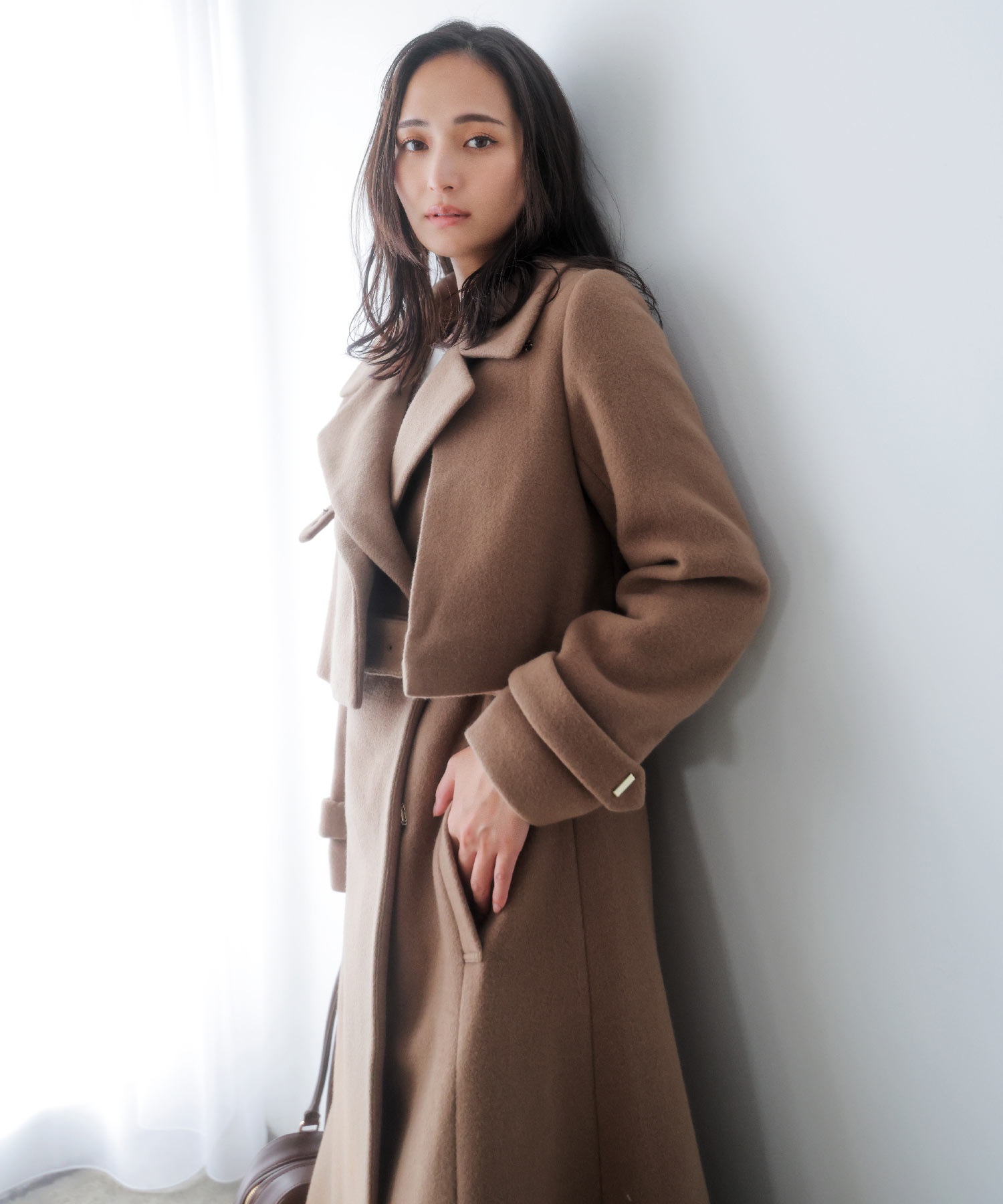 • 【SSサイズあり】2WAYスタンドカラーウールコート(83キャメル-SS-【販路限定サイズ】)