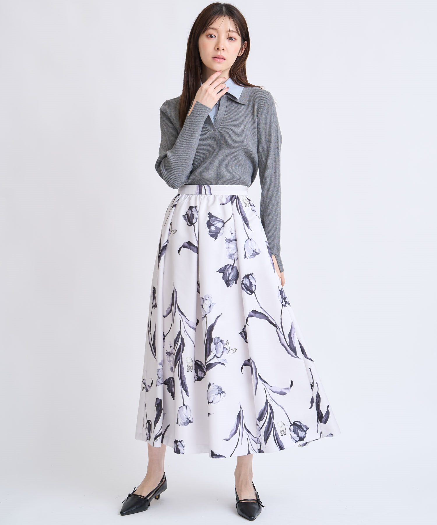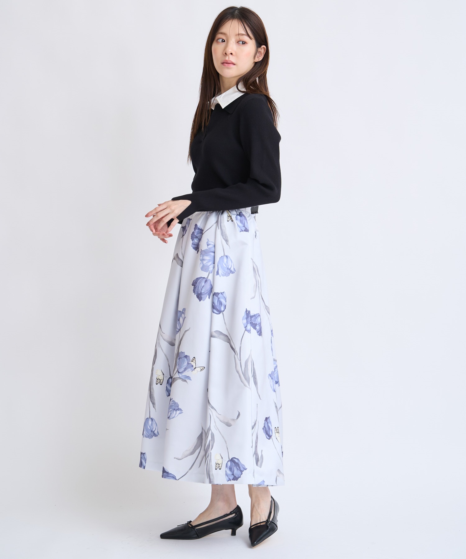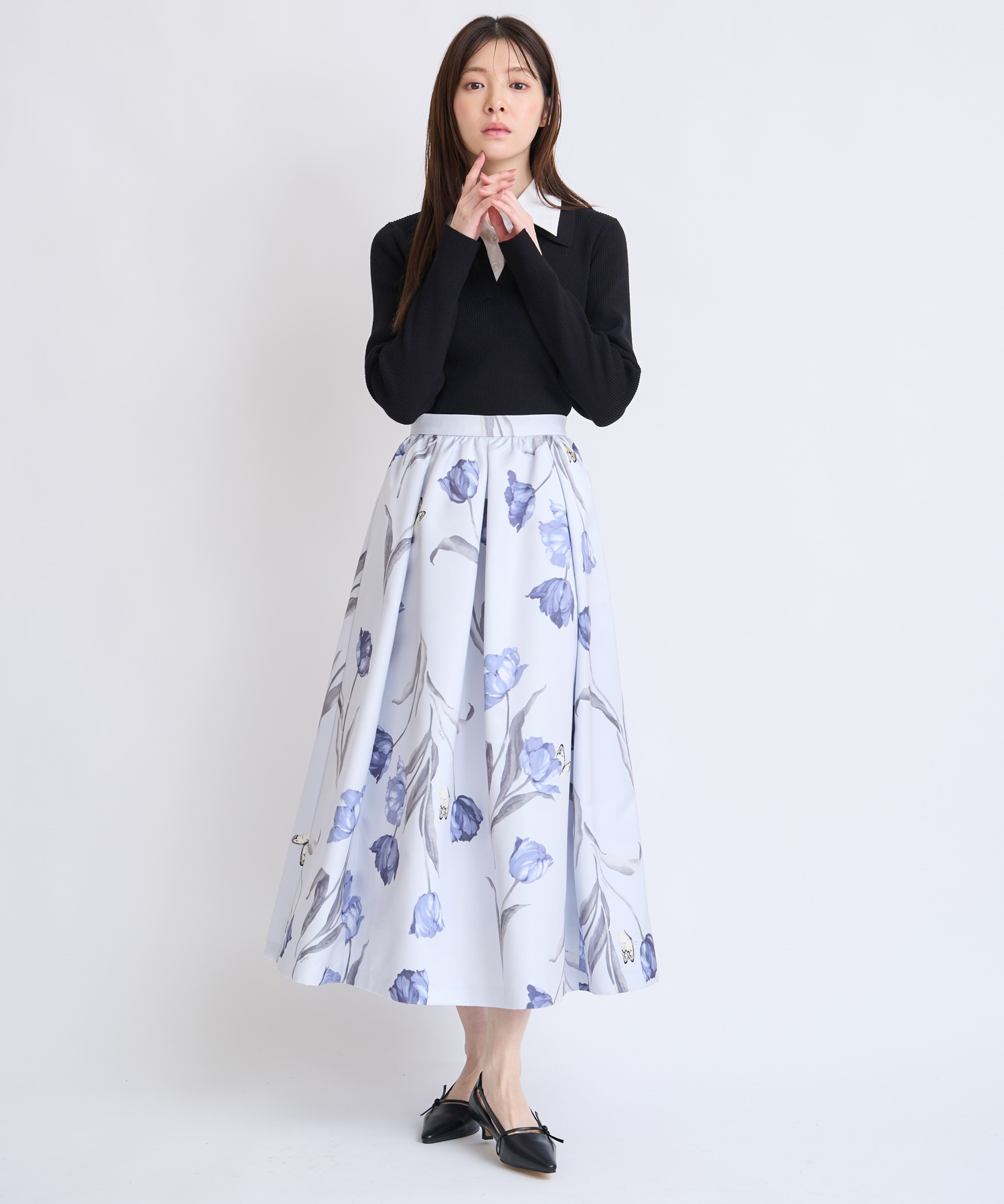 • 【予約】チューリッププリントフレアスカート(71ブルー-S-1月中旬ごろのお届け)