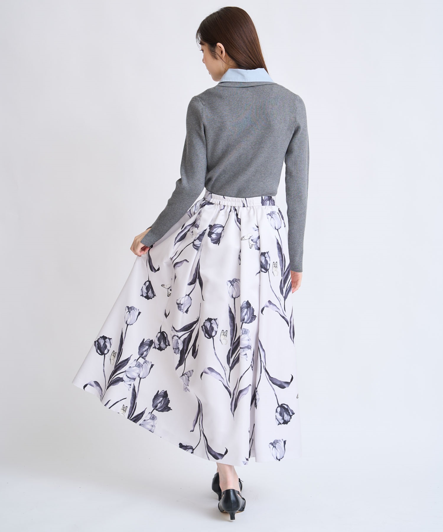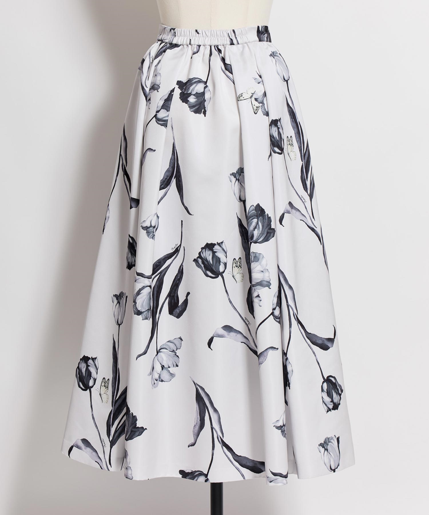 • 【予約】チューリッププリントフレアスカート(00ブラック-S-1月中旬ごろのお届け)
